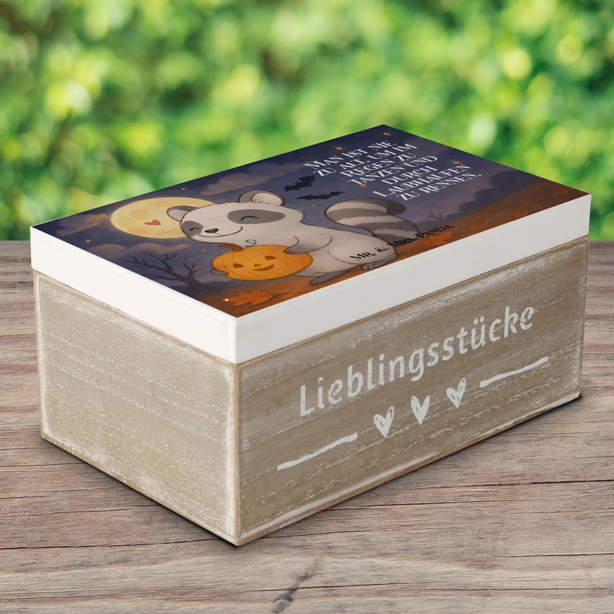 Holzkiste Waschbär Kürbis Design – Mr. & Mrs. Panda