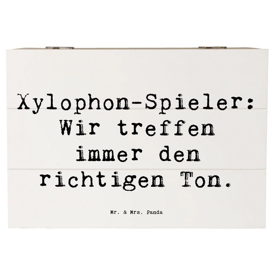 Die perfekte Holzkiste für kleine Musikliebhaber! Die wunderschöne Holzkiste von Mr. & Mrs. Panda ist das ideale Geschenk für alle, die das Xylophon entdecken möchten. Mit ihrem bezaubernden Motiv und dem Spruch "Xylophon-Spieler: Wir treffen immer den richtigen Ton." schafft diese Kiste eine liebevolle Atmosphäre und bietet Platz für all die besonderen Schätze, die du im Laufe der Zeit sammelst.