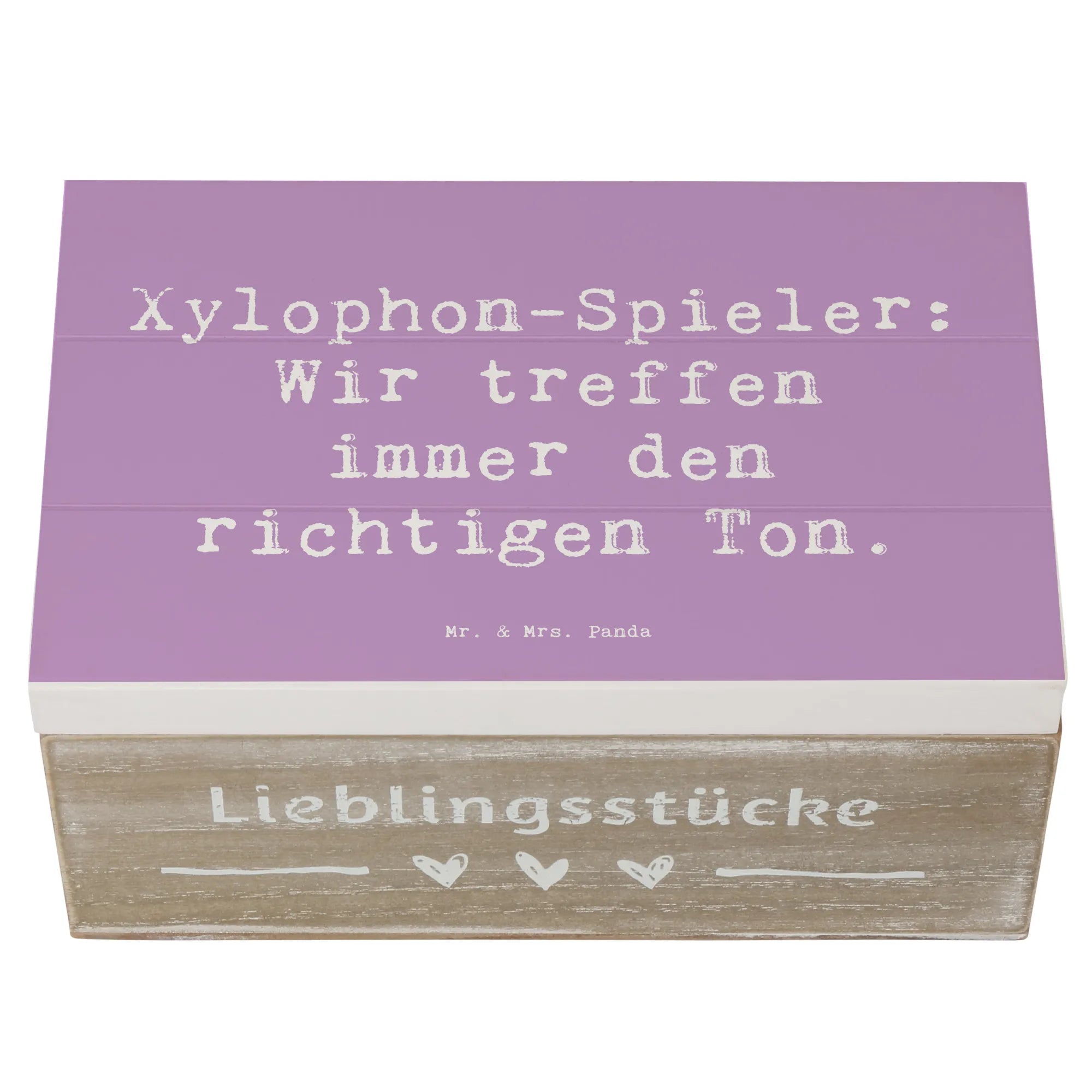 Überrasche einen Musiker oder Musikbegeisterten mit dieser liebevollen Holzkiste. Der Slogan "Xylophon-Spieler: Wir treffen immer den richtigen Ton" bringt ein Lächeln auf die Gesichter und macht das Geschenk besonders.