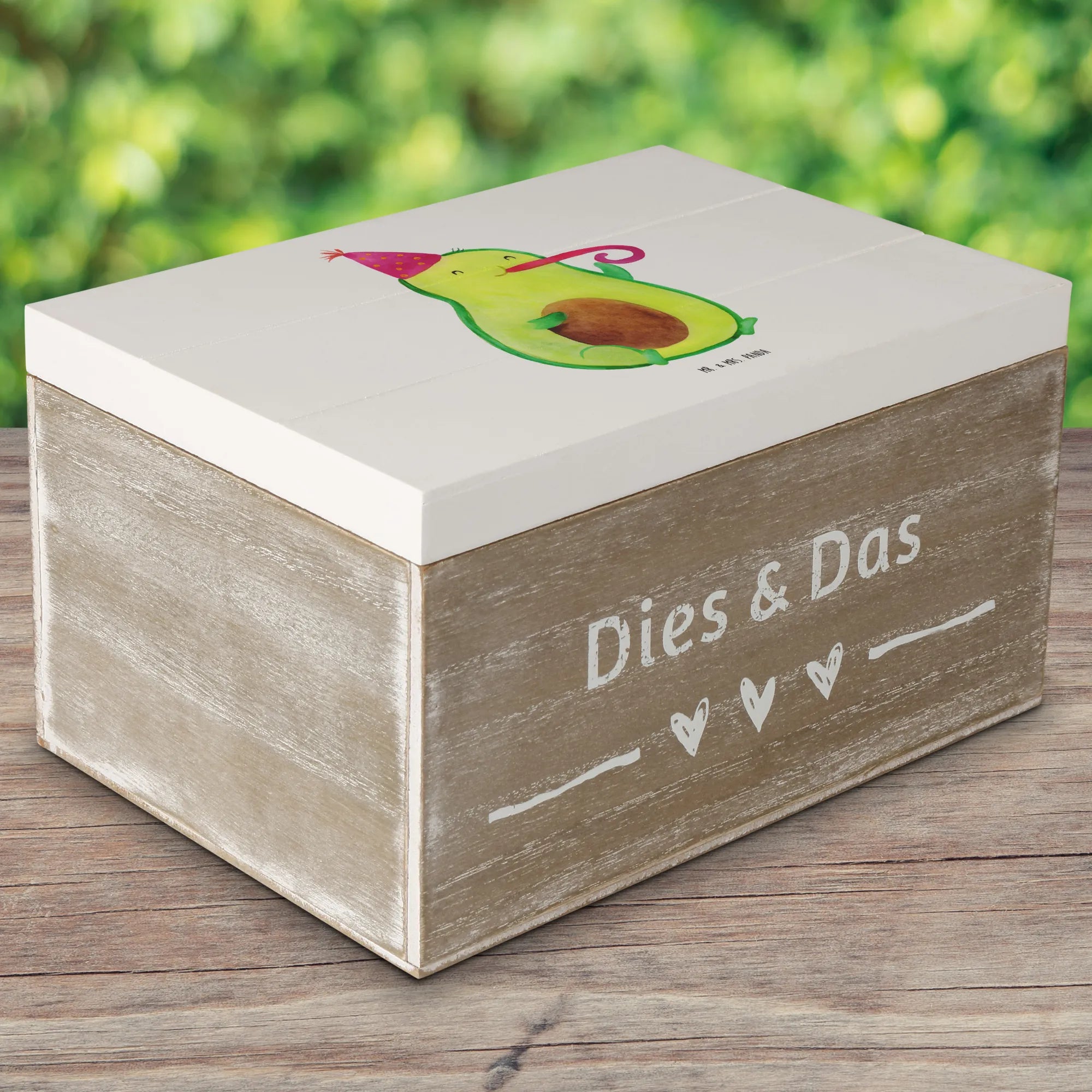 Skrzynia drewniana Awokado impreza - 22 x 15 cm - z napisem - biały
