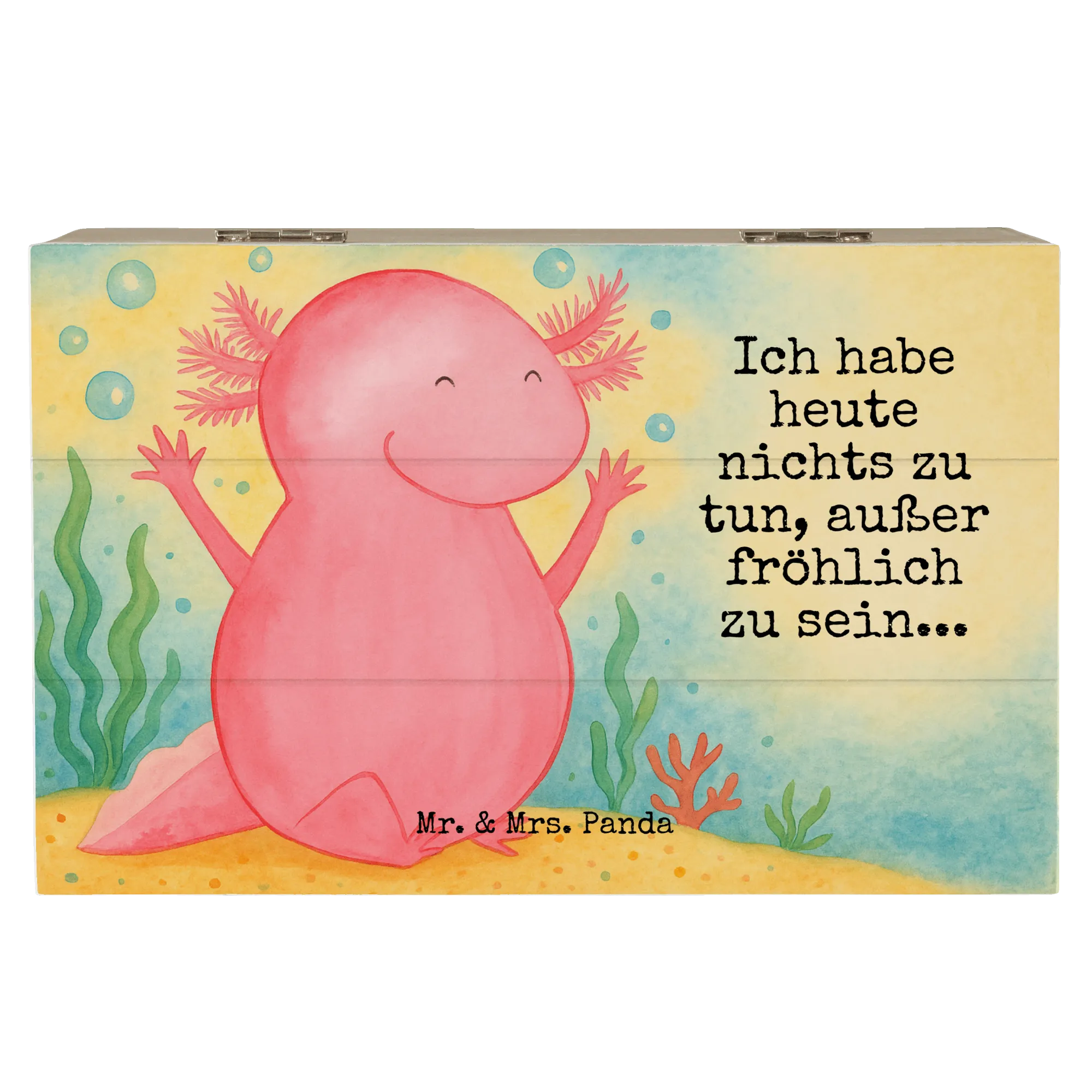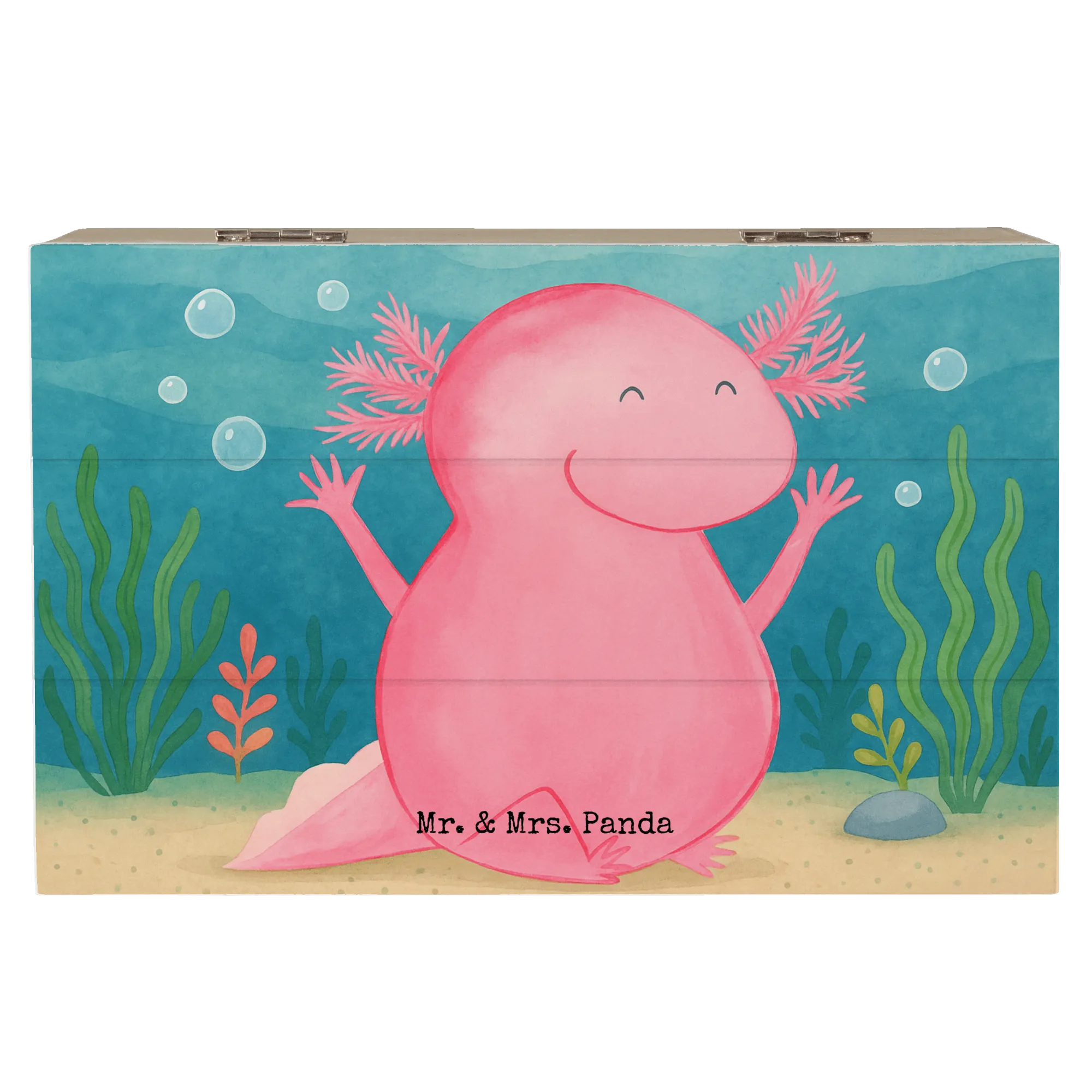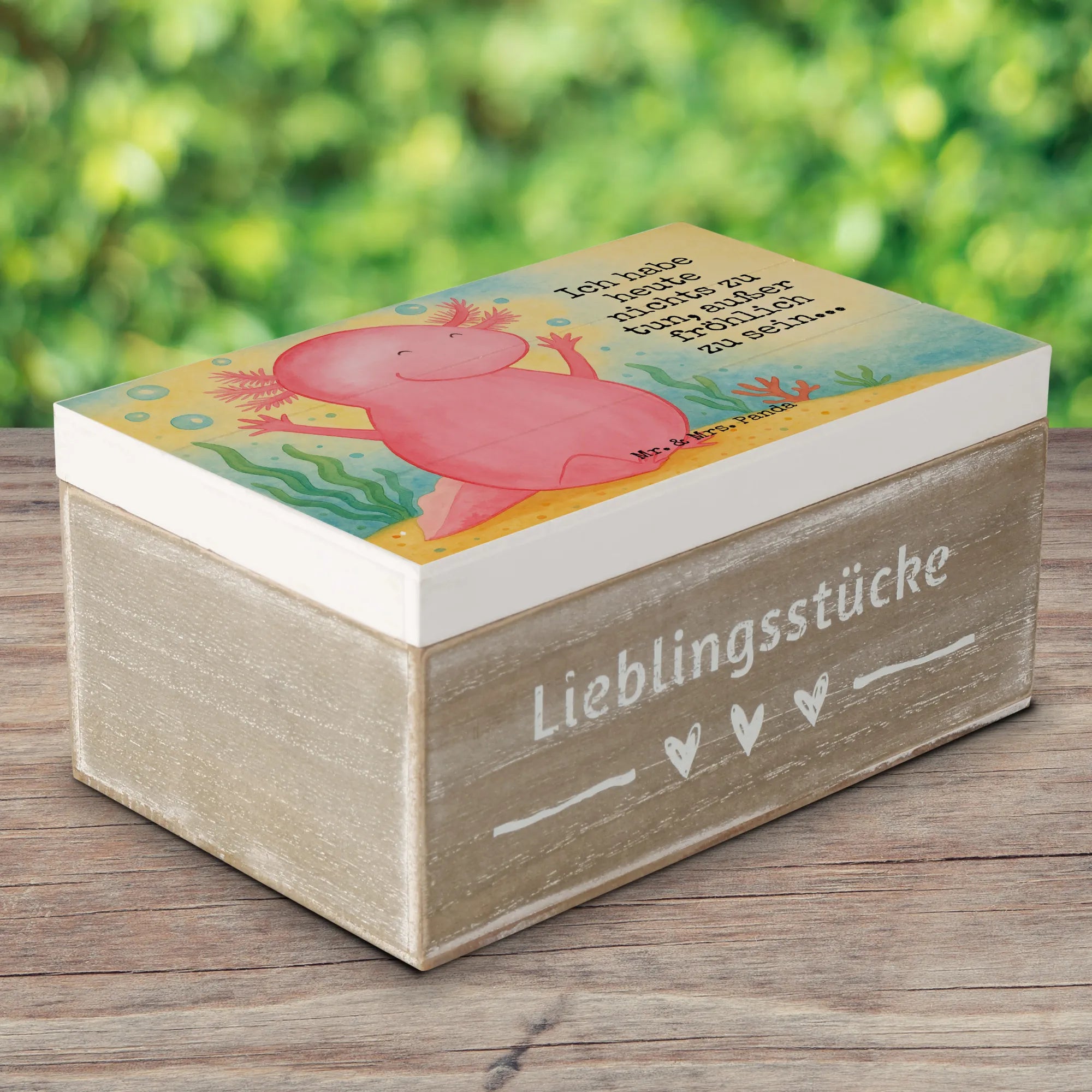 Skrzynia drewniana Axolotl Hurra Design - 19 x 12 cm - z napisem