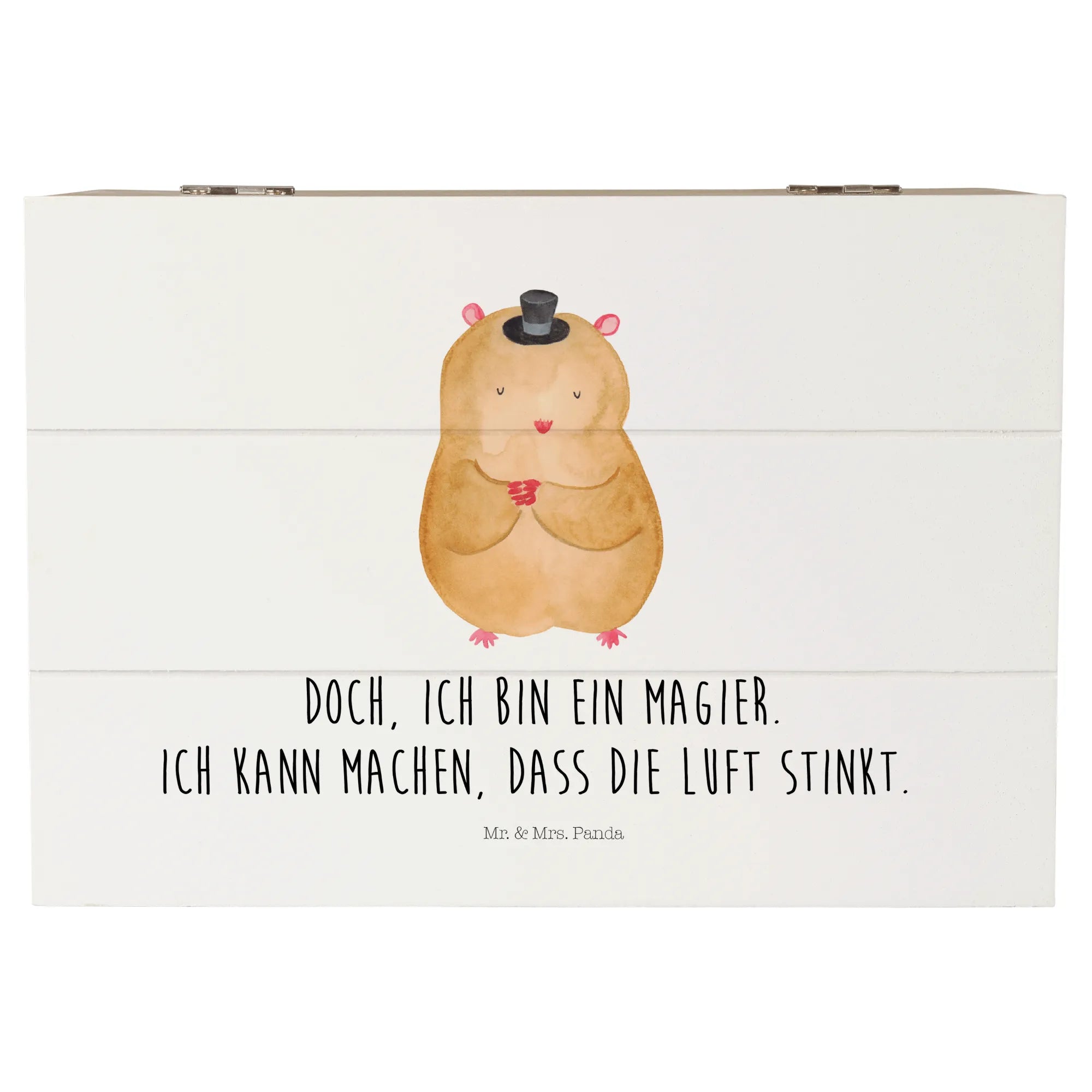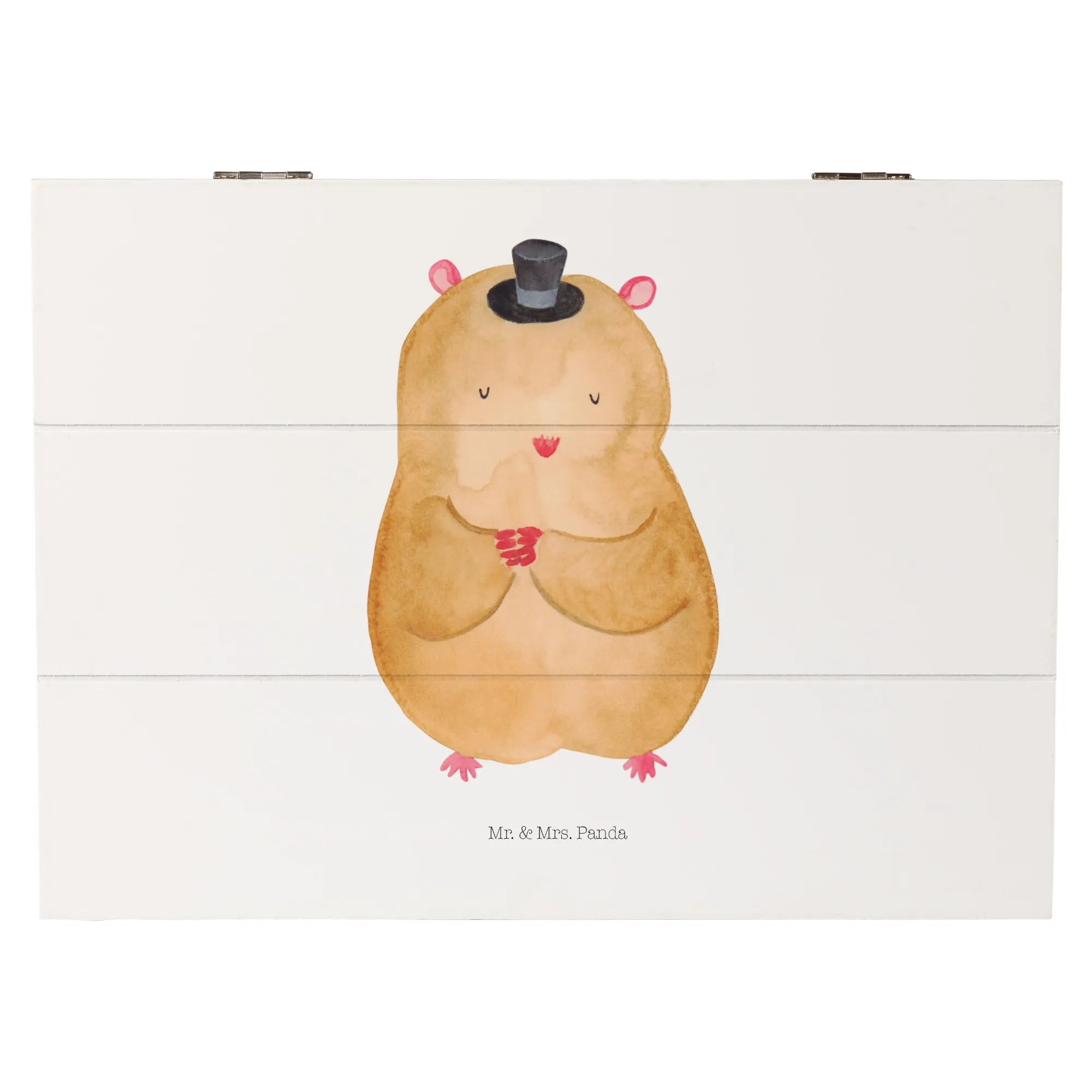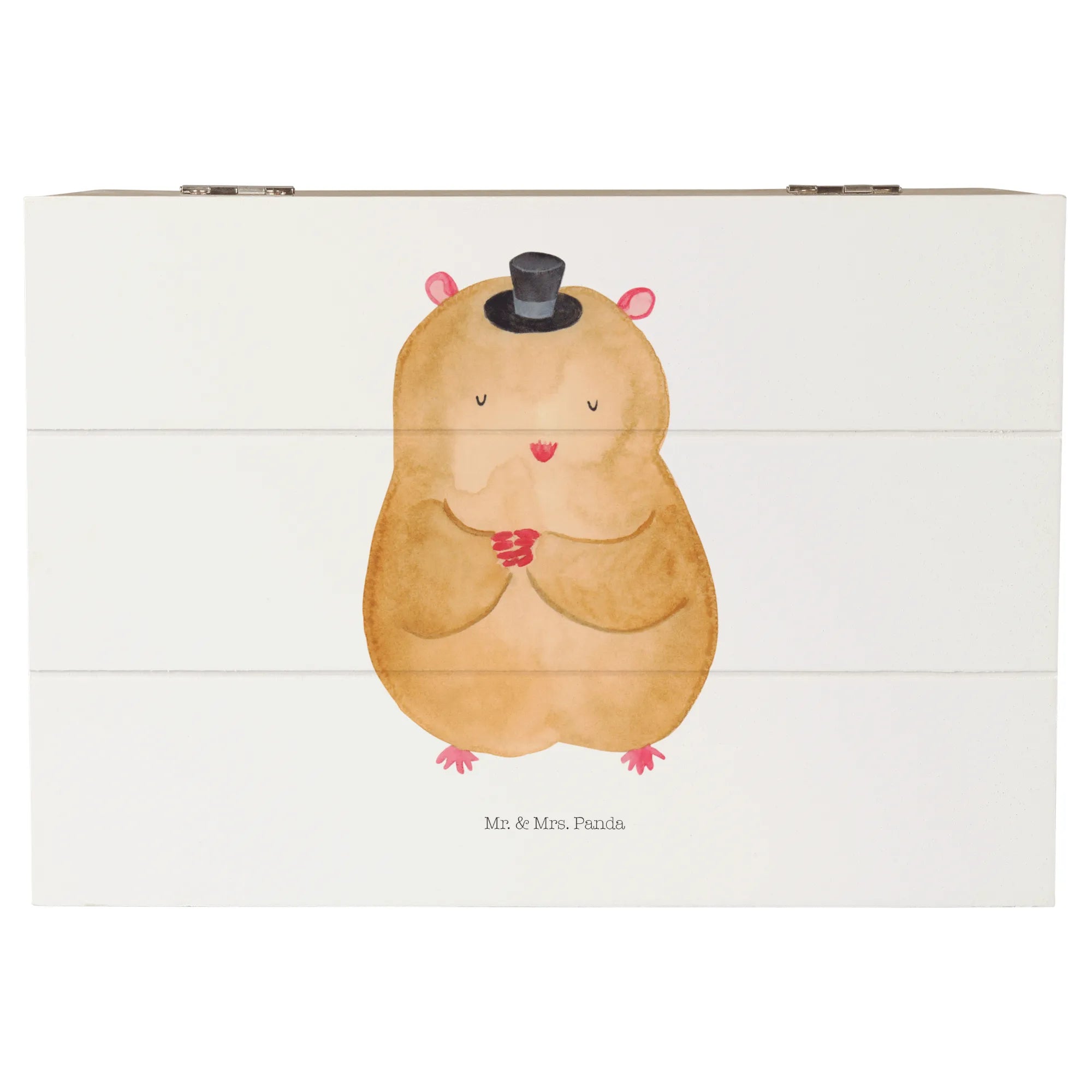 Skrzynia drewniana Chomik kapelusz - 22 x 15 cm - z napisem - biały