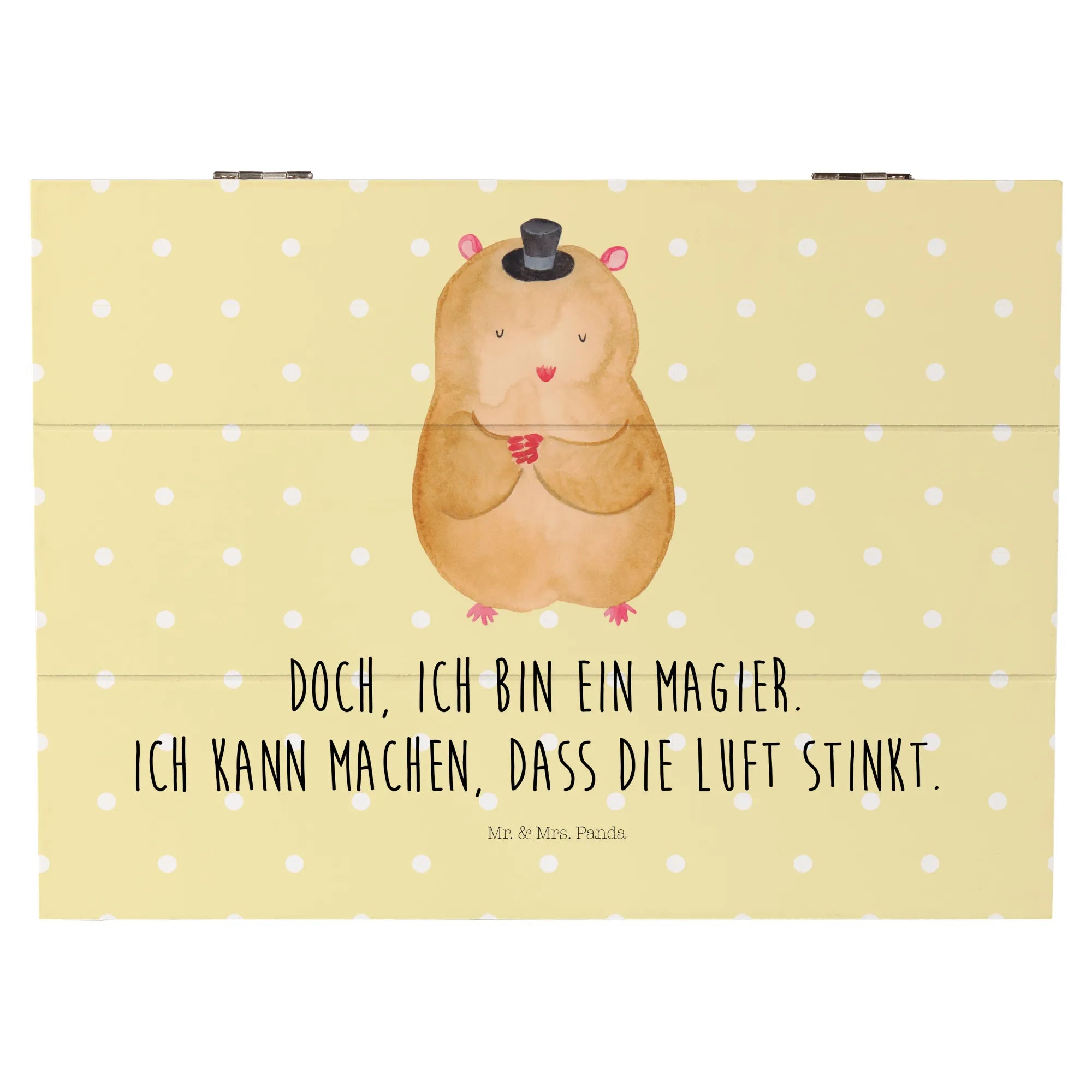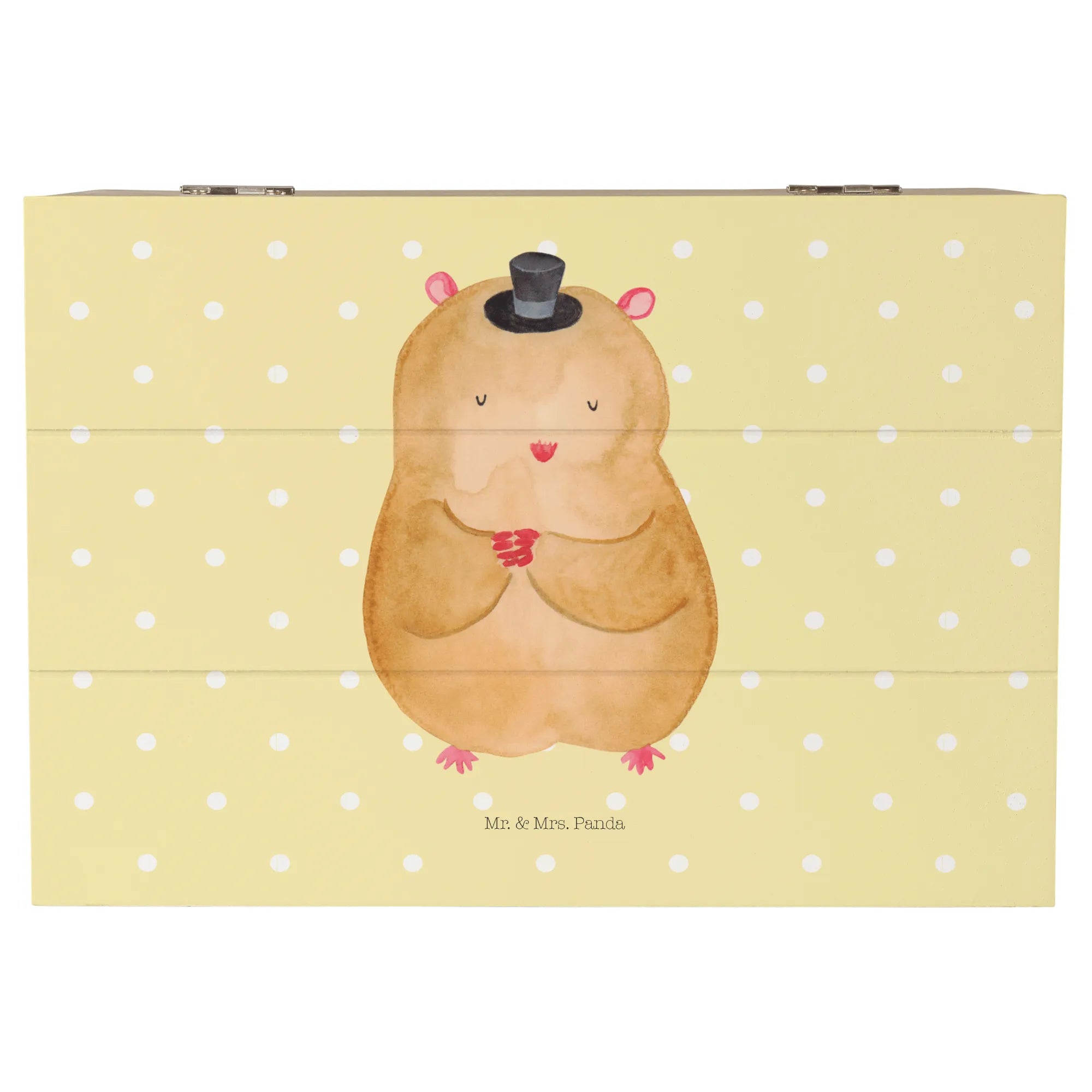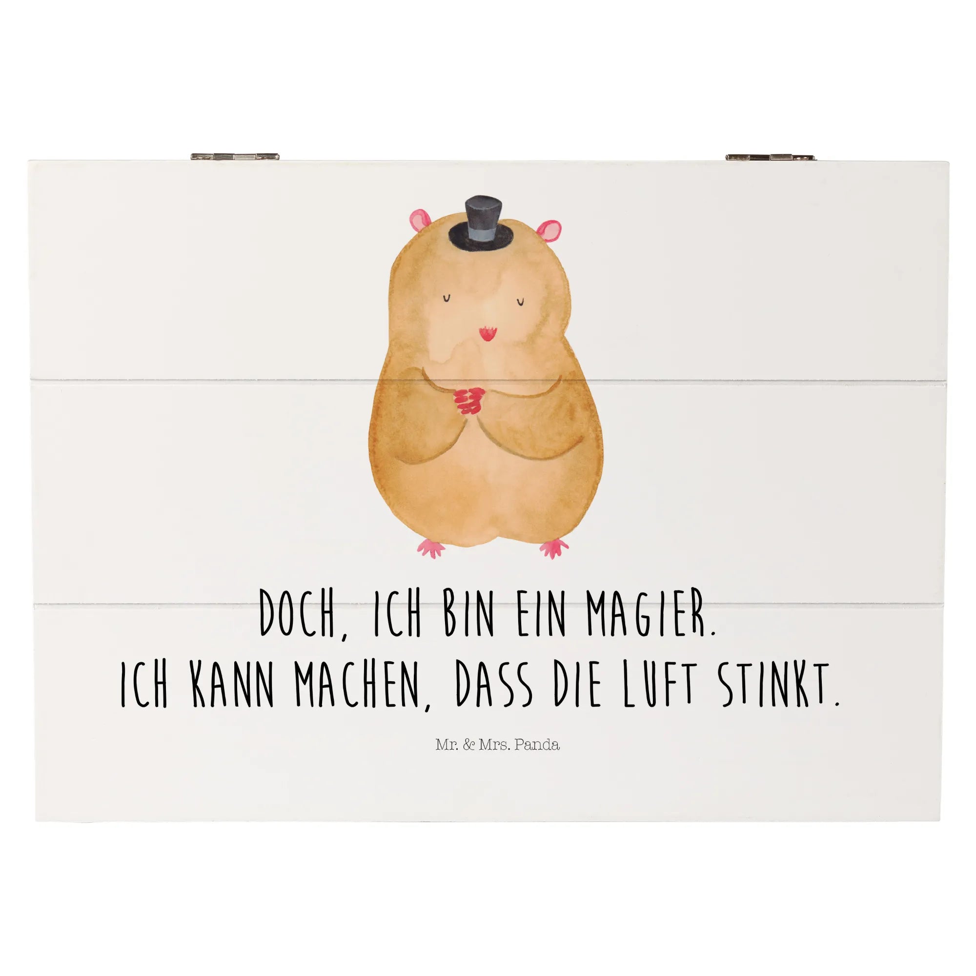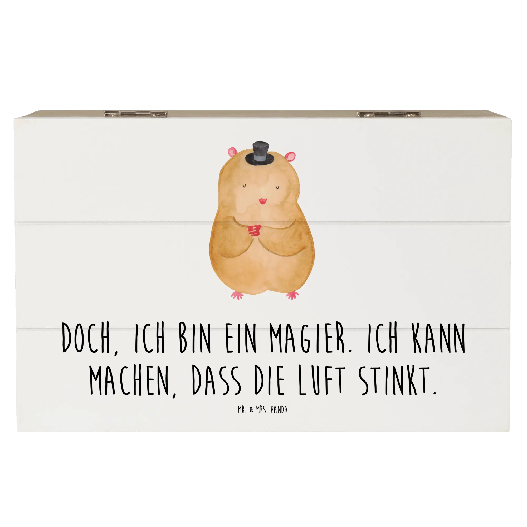 Skrzynia drewniana Chomik kapelusz - 22 x 15 cm - z napisem - biały