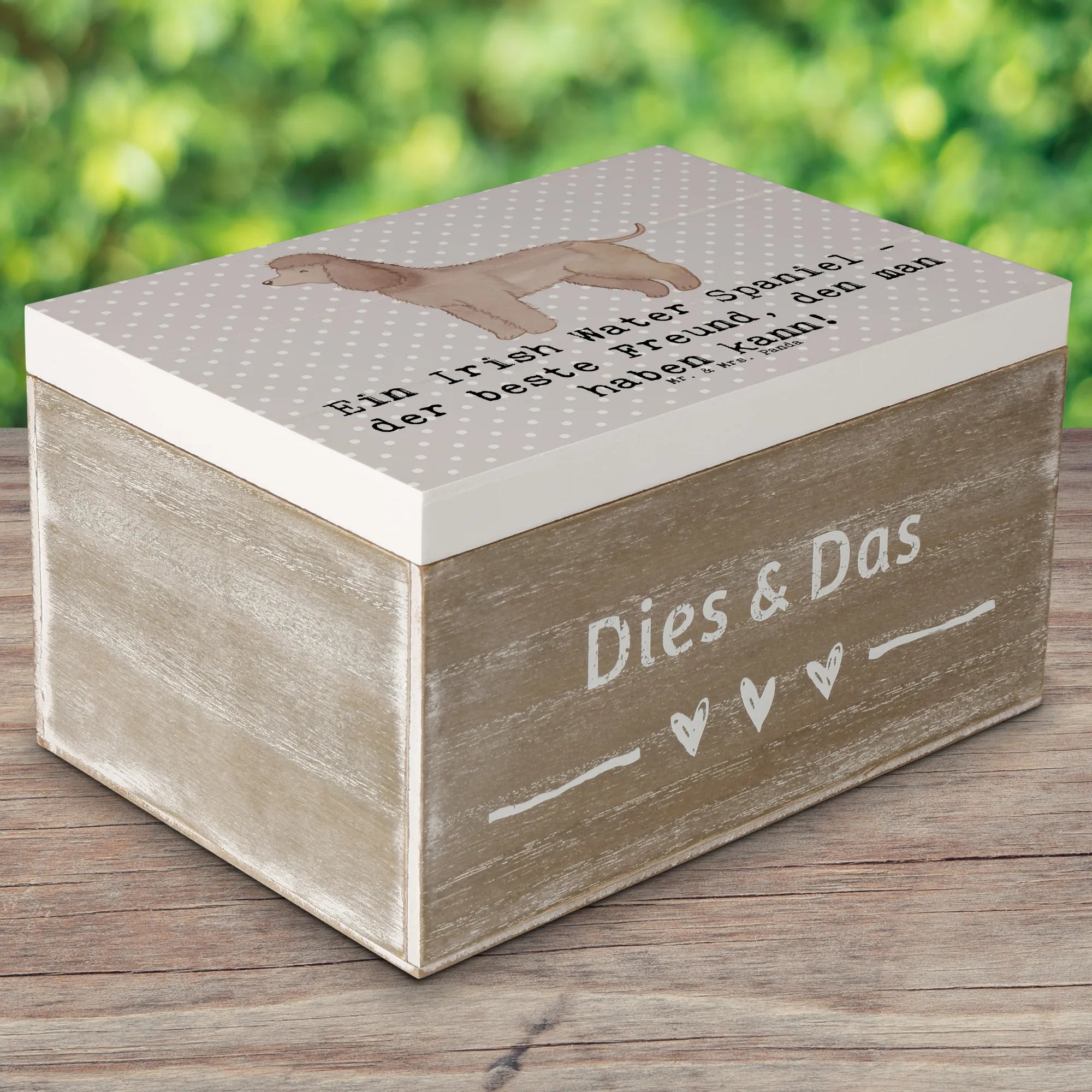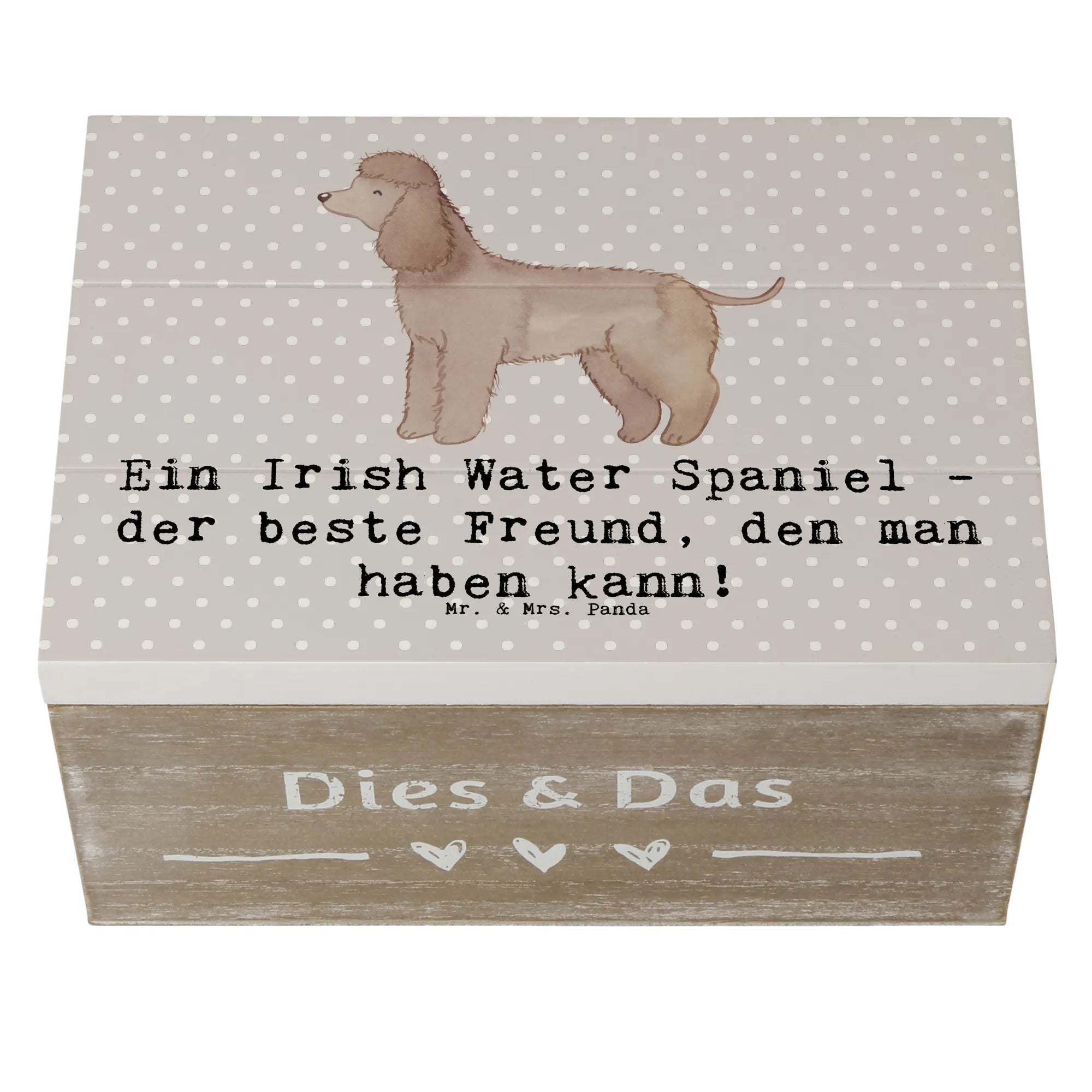 Skrzynia drewniana Ein Irish Water Spaniel - der beste Freund, den man haben kann! - 19 x 12 cm - Pastelowy szary
