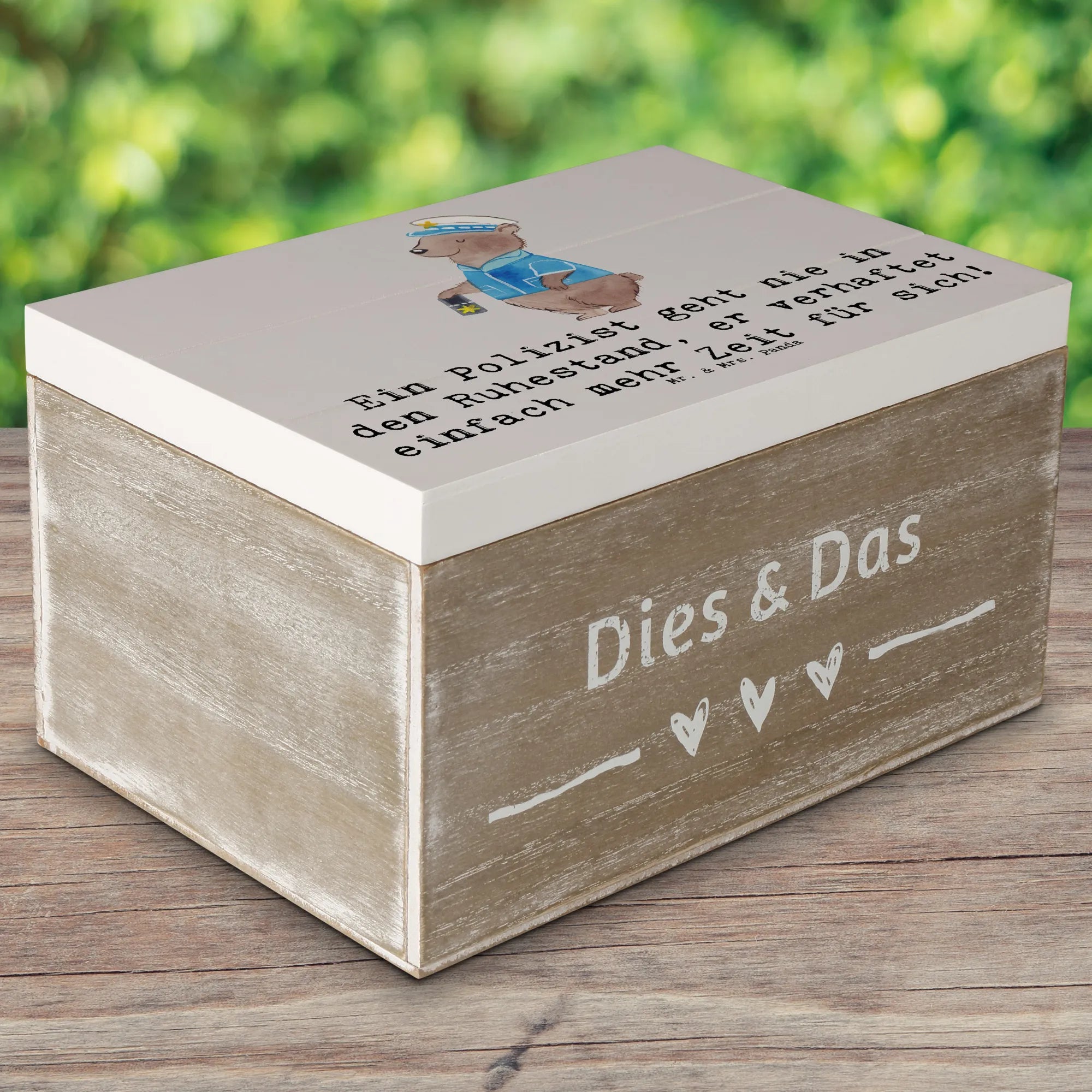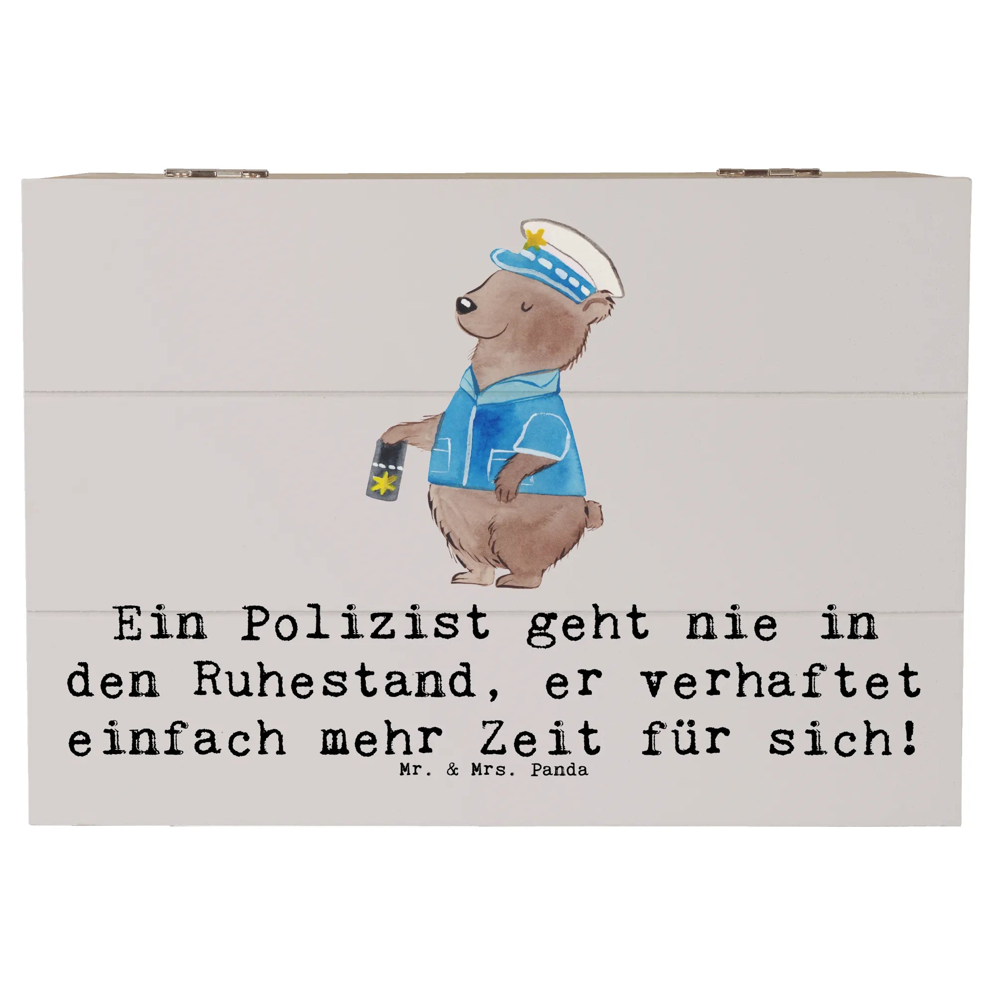 Skrzynia drewniana Ein Polizist geht nie in den Ruhestand, er verhaftet einfach mehr Zeit für sich! - 22 x 15 cm - Pastelowy szary