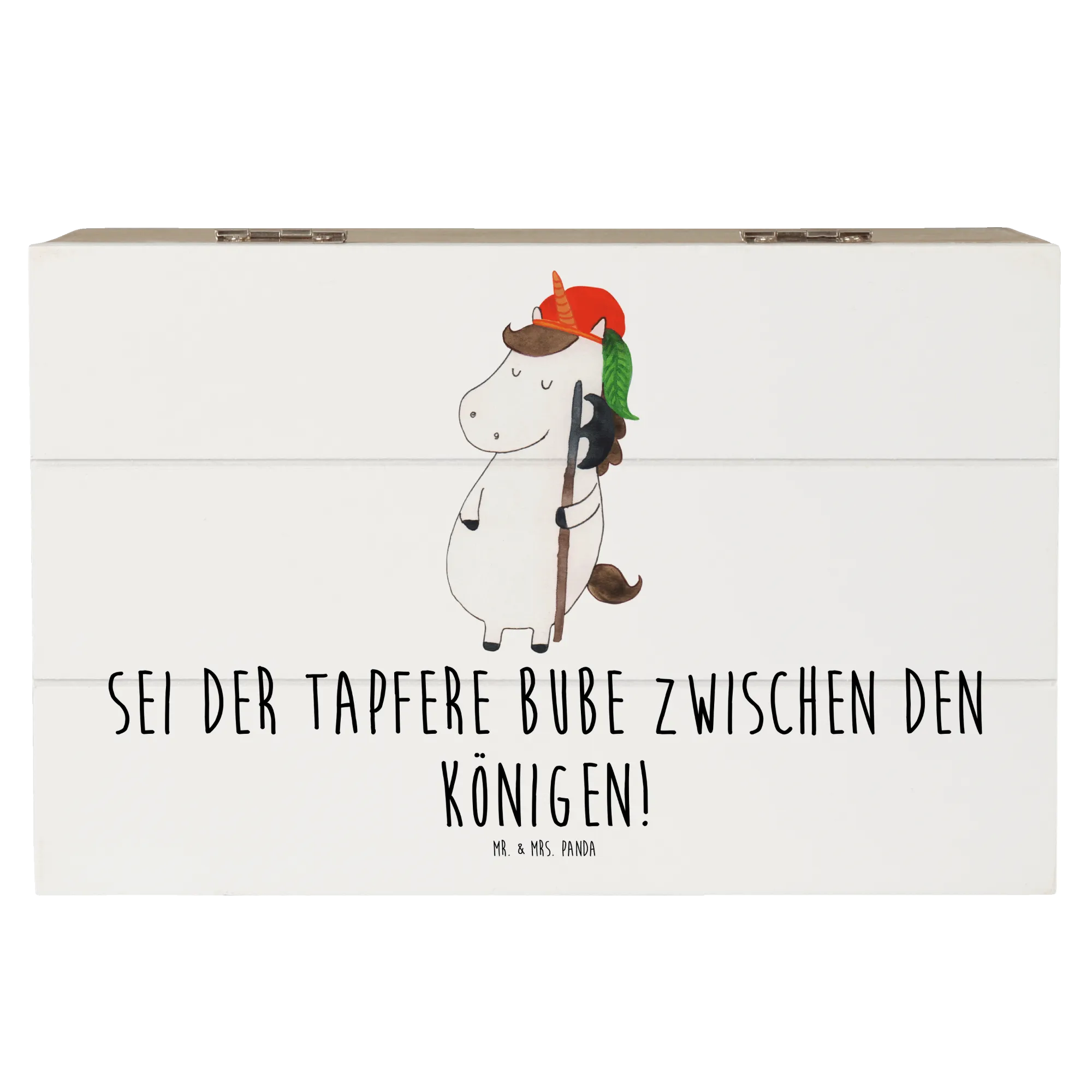Skrzynia drewniana Jednorożec Chłopiec - 22 x 15 cm - z napisem - biały