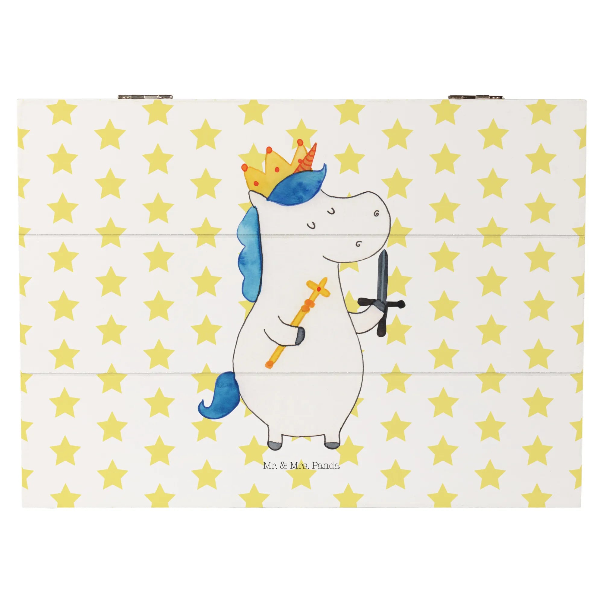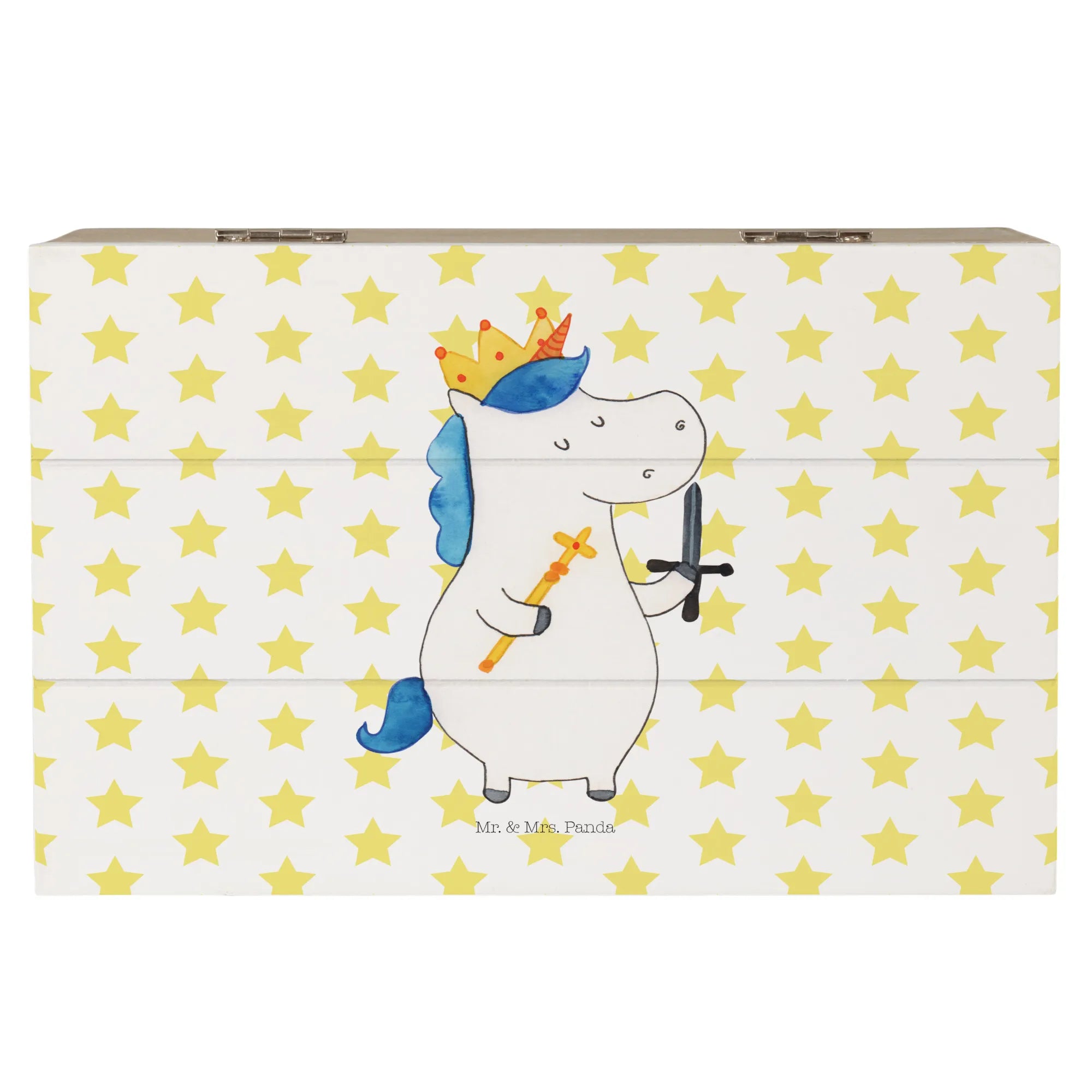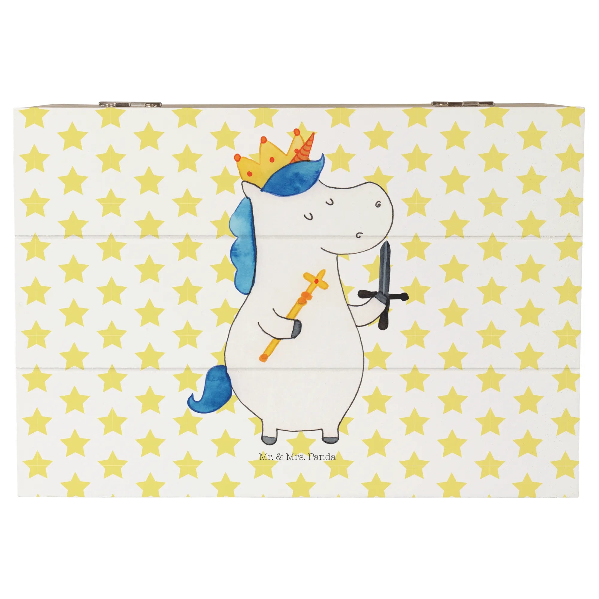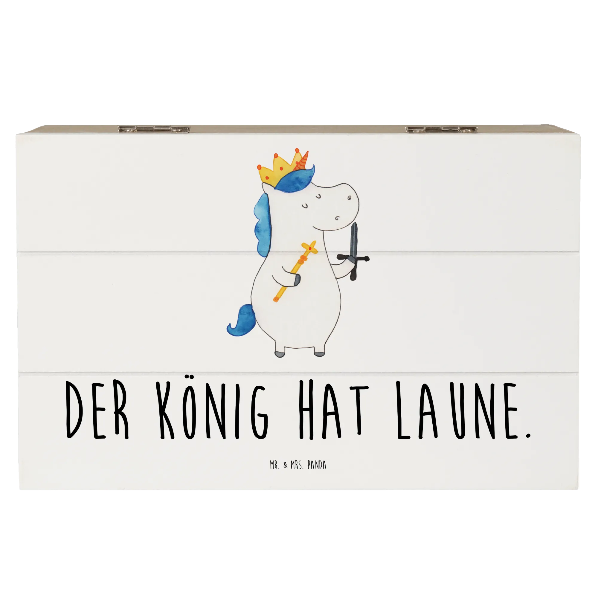Skrzynia drewniana jednorożec Król z mieczem - 22 x 15 cm - z napisem - Biały