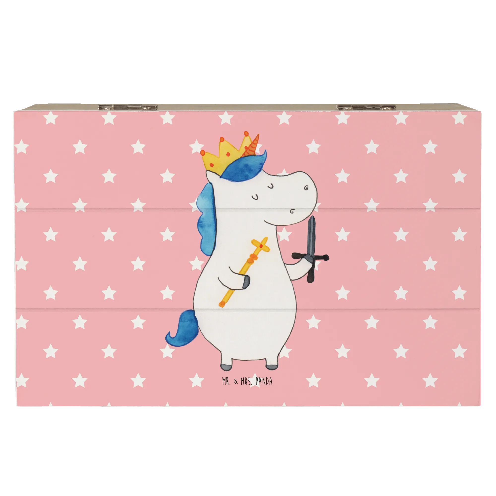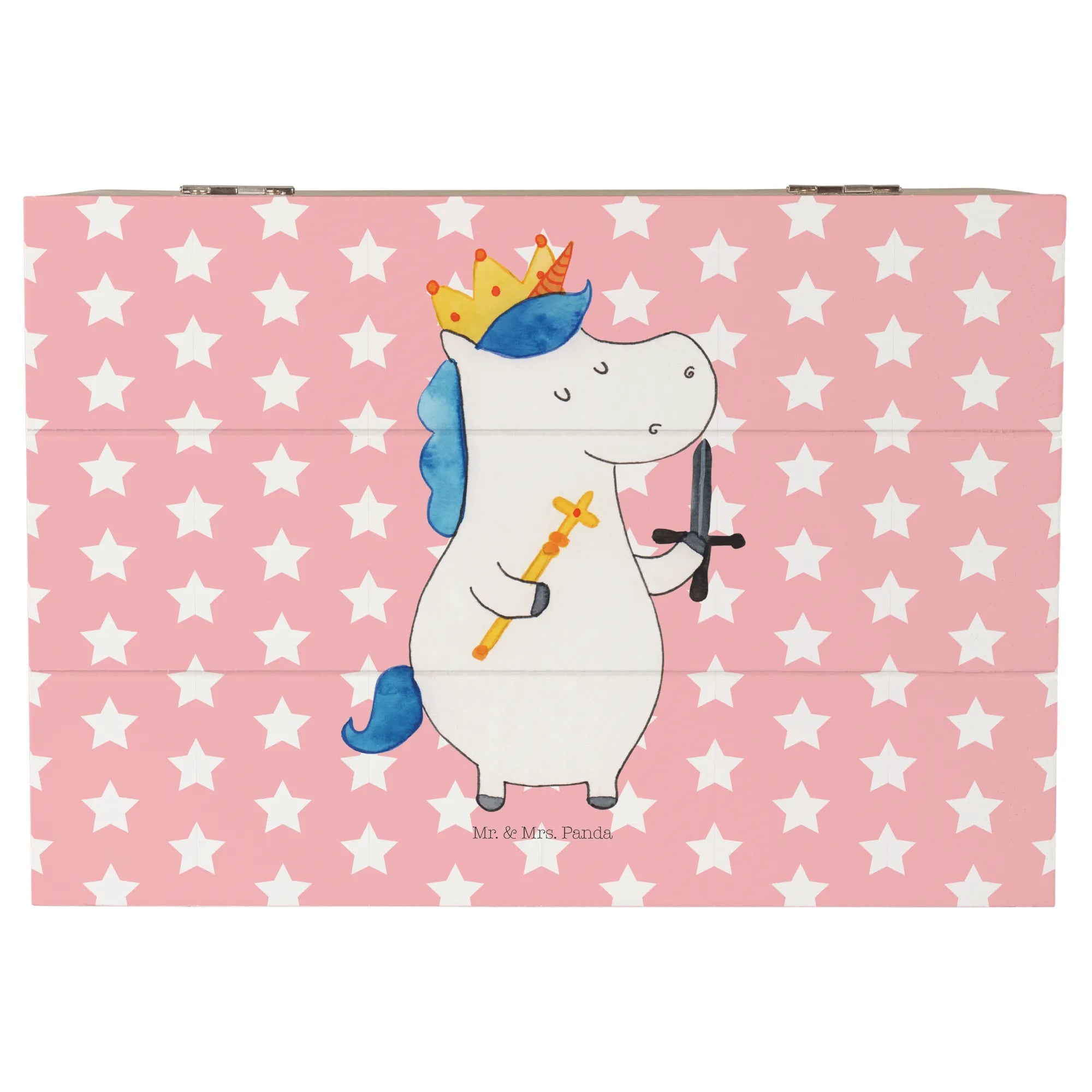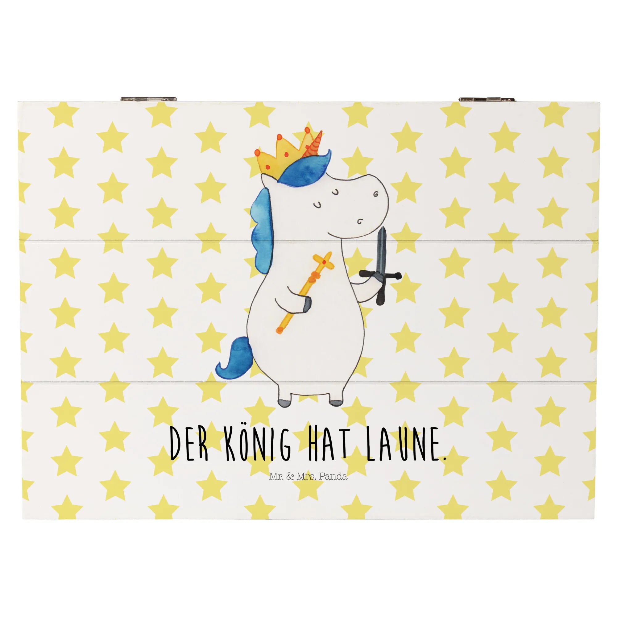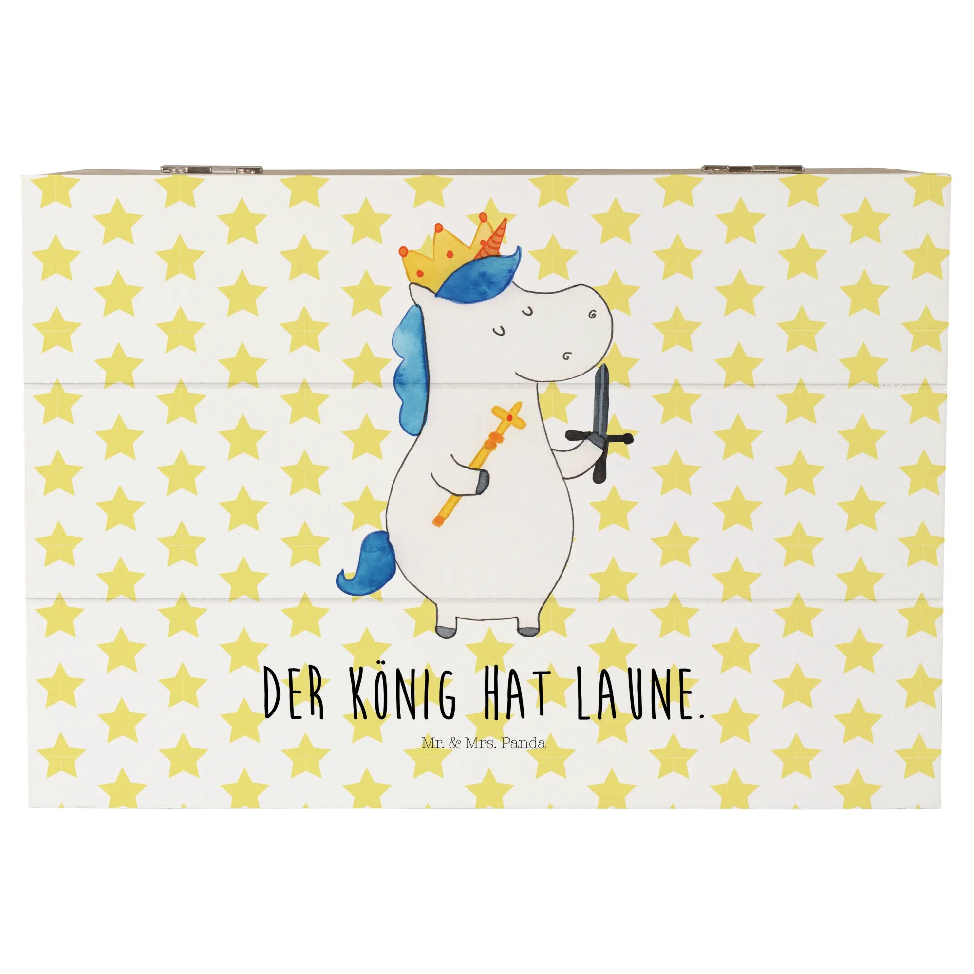 Skrzynia drewniana jednorożec Król z mieczem - 22 x 15 cm - z napisem - Biały