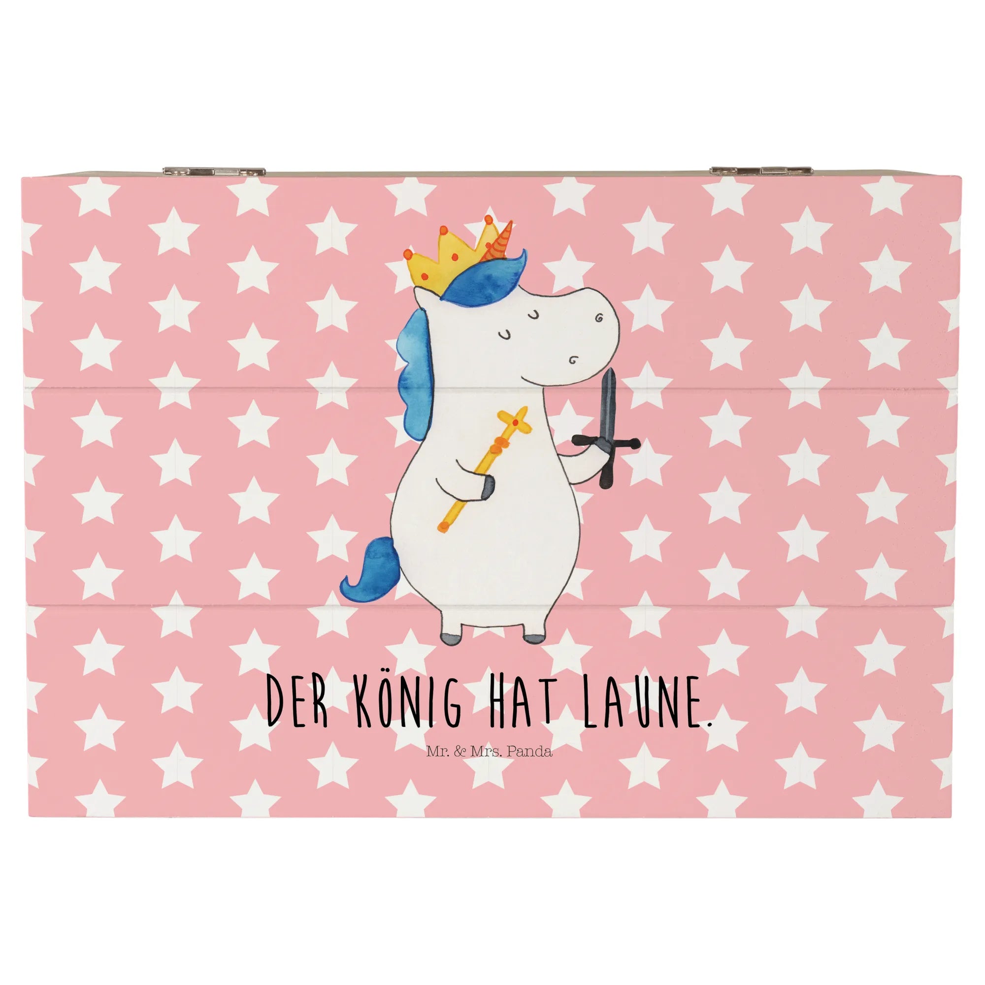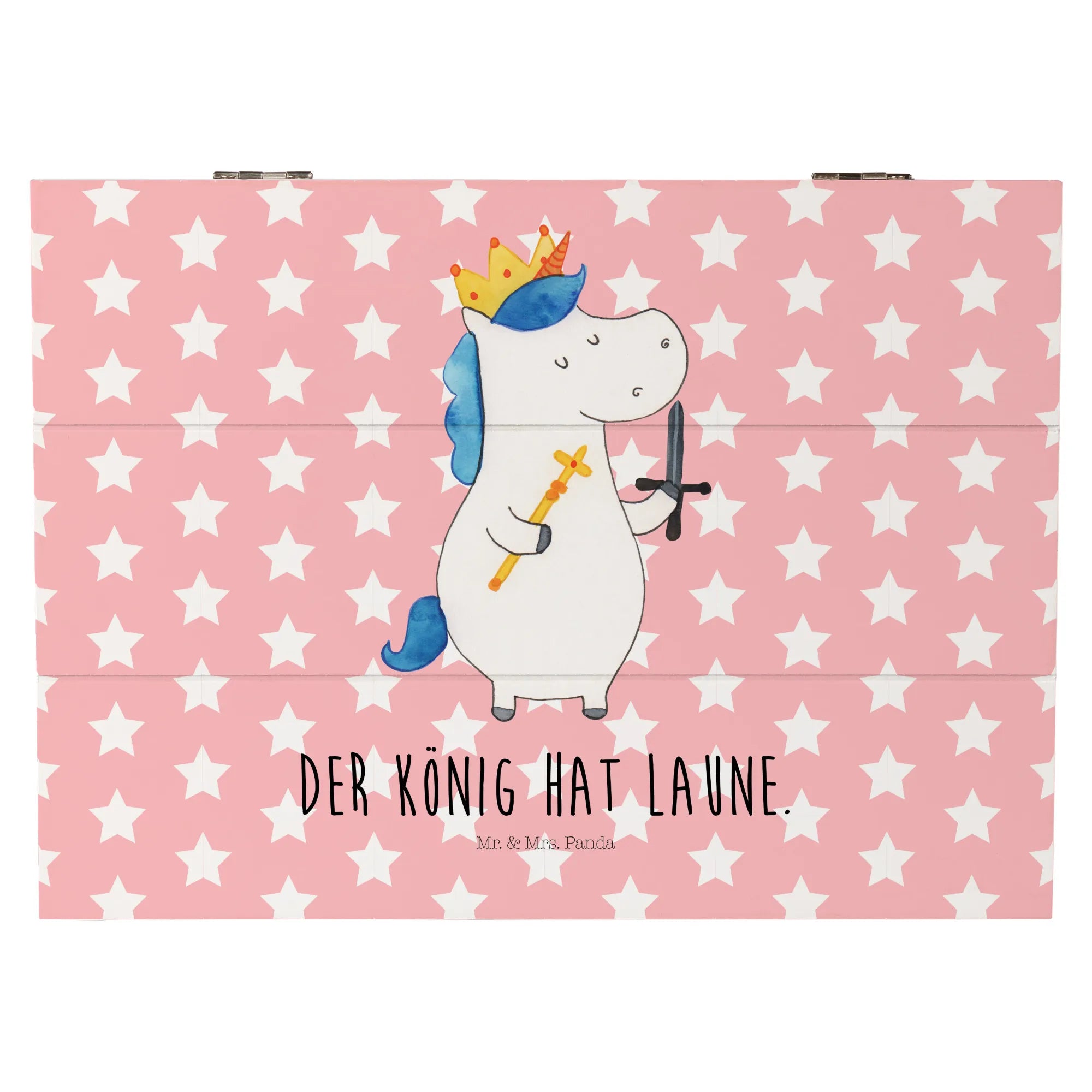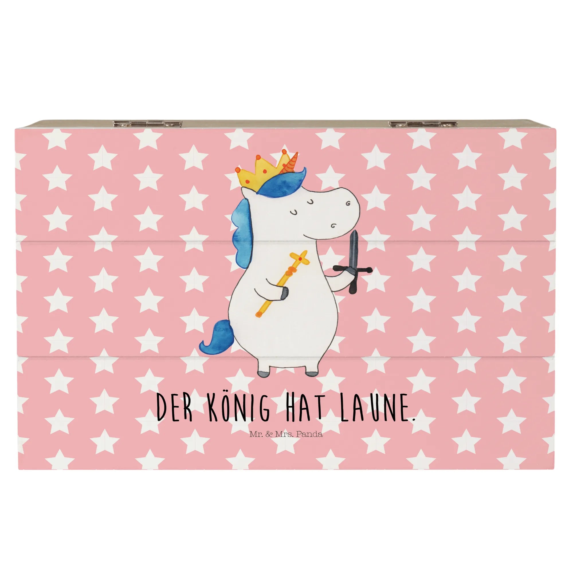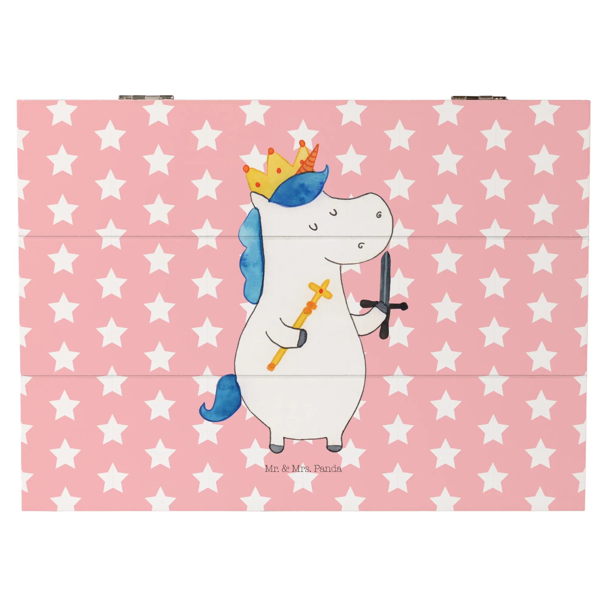 Skrzynia drewniana jednorożec Król z mieczem - 22 x 15 cm - z napisem - Biały