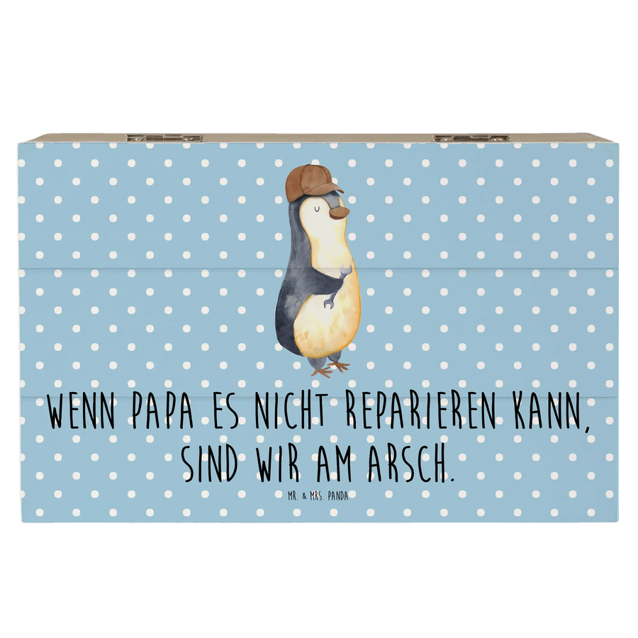 Skrzynia drewniana Jeśli tata tego nie naprawi, to jesteśmy w dupie - 19 x 12 cm - z napisem - Niebieski Pastel