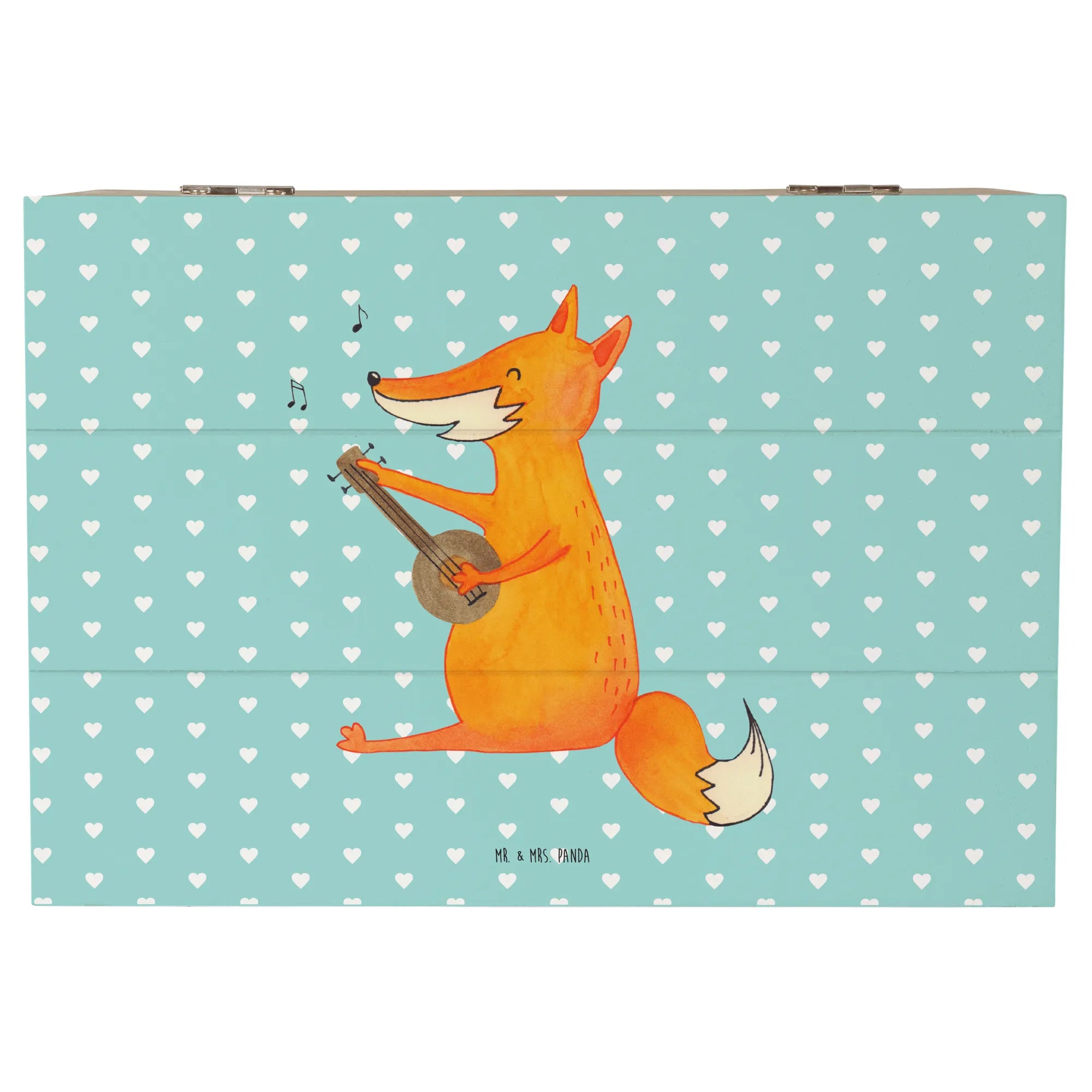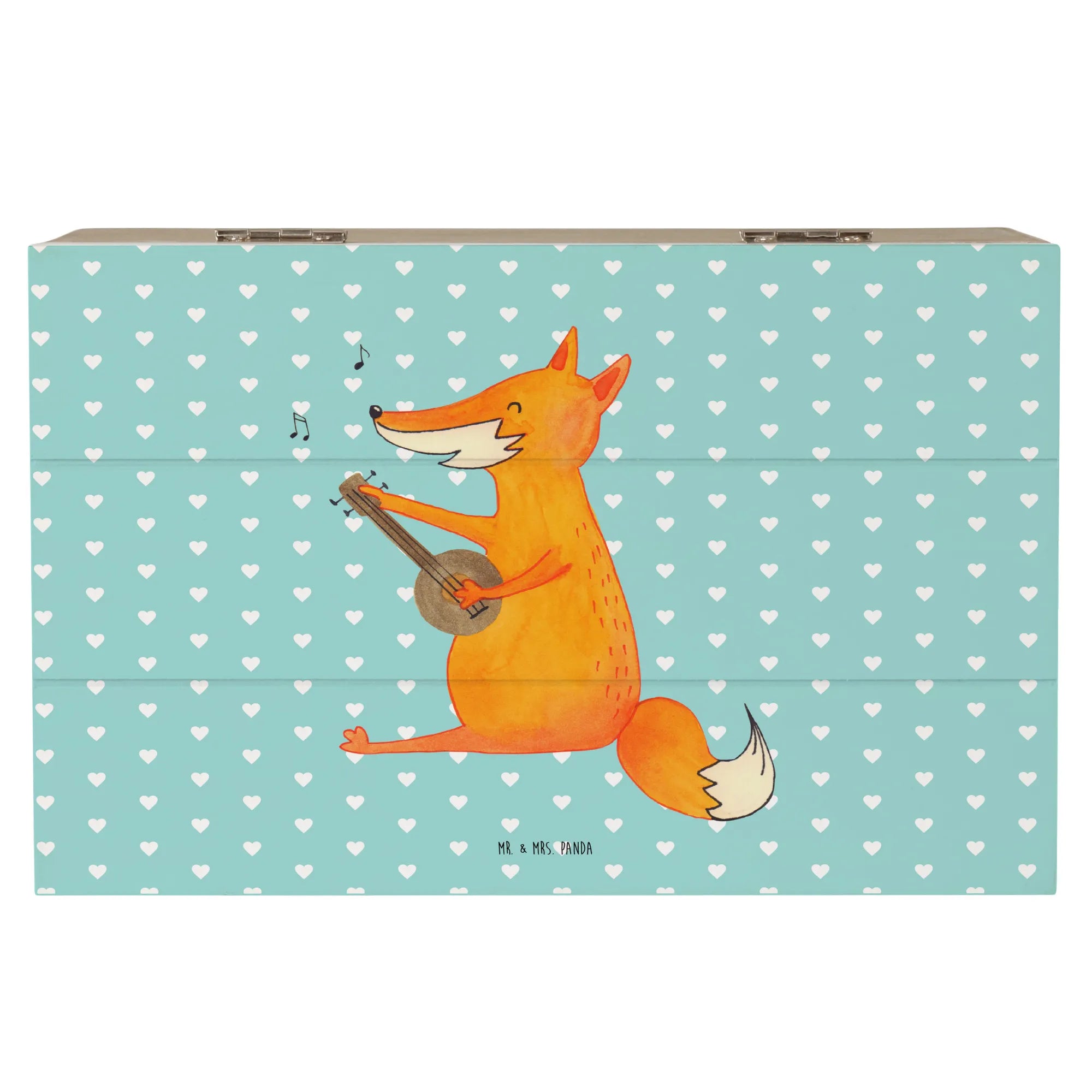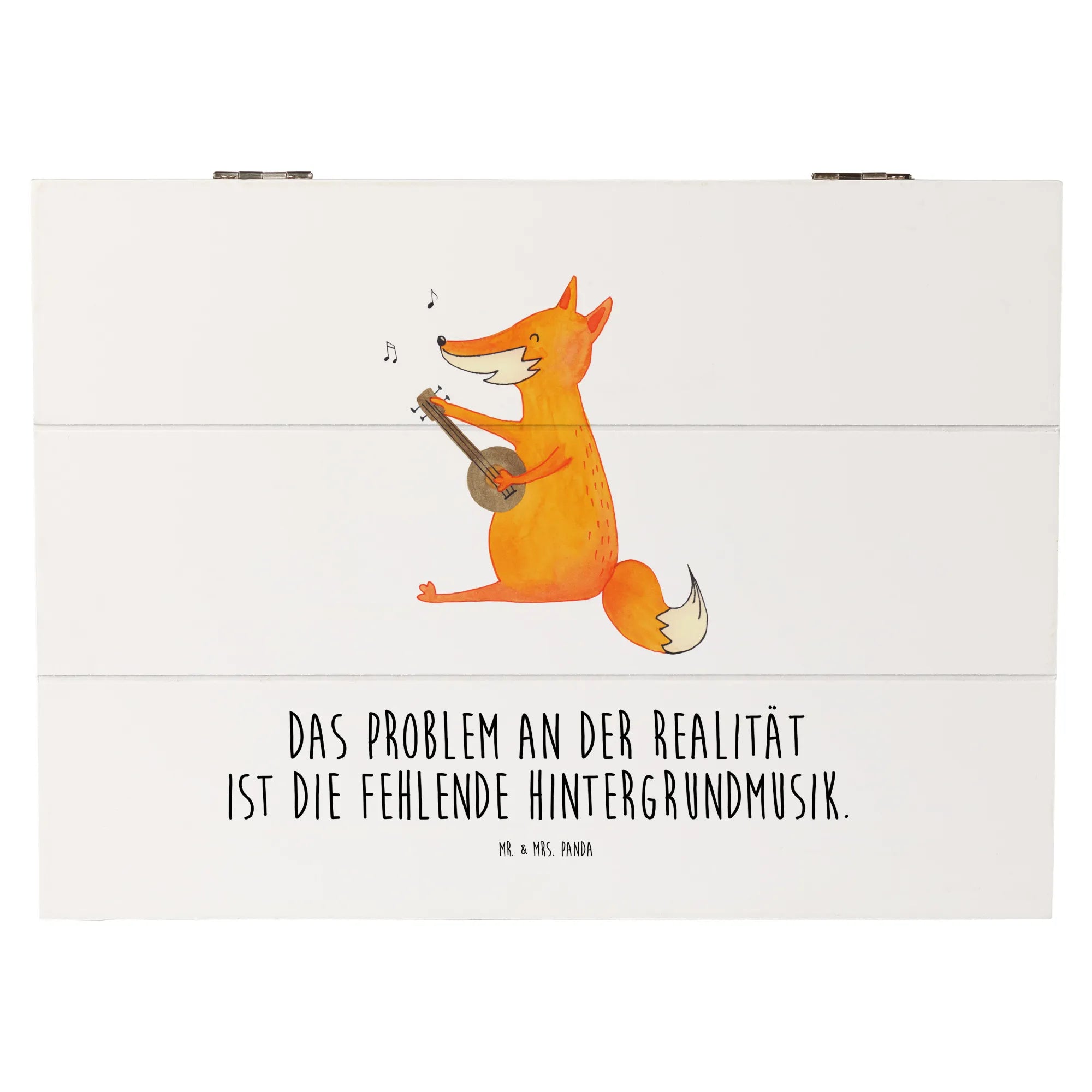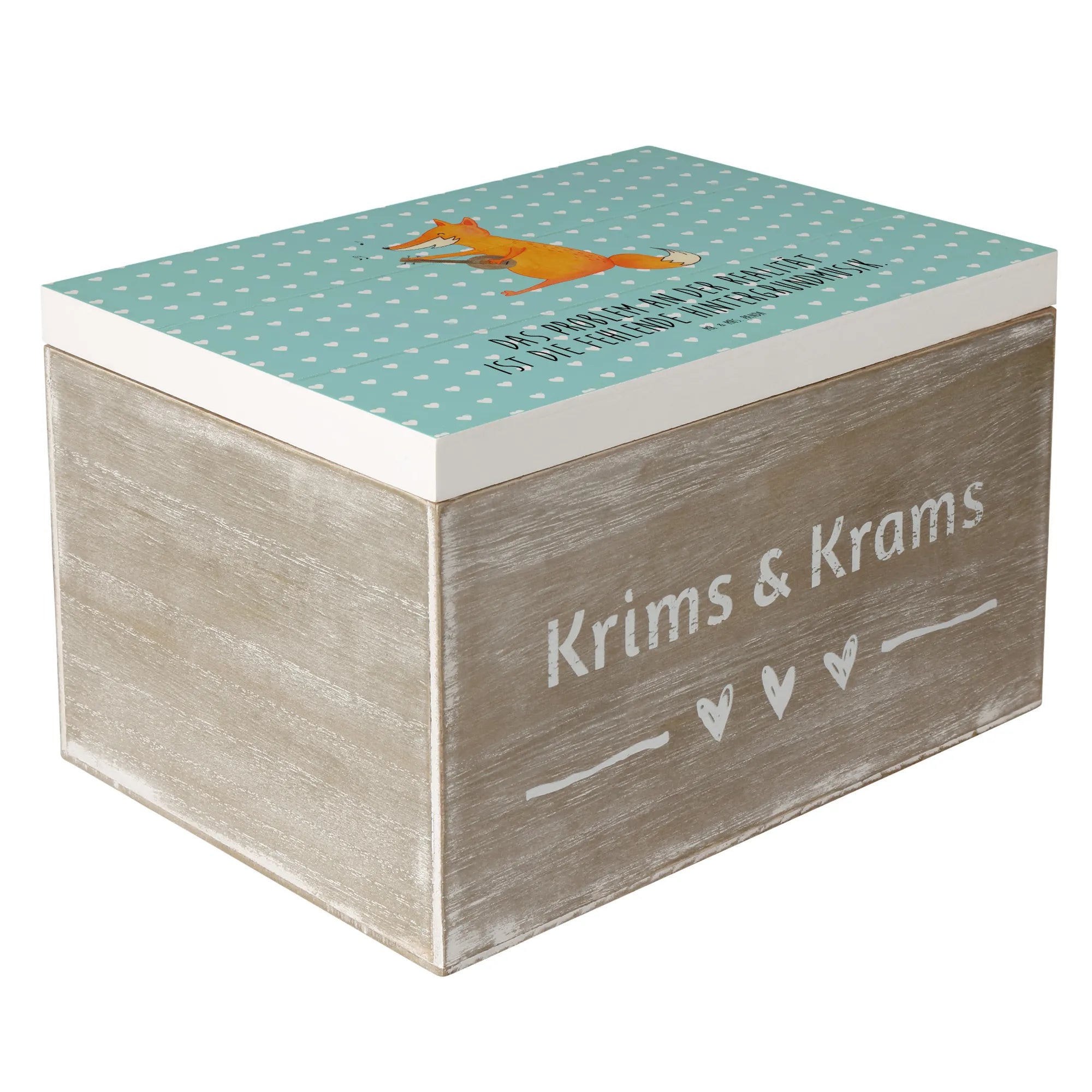Skrzynia drewniana Lis gitara - 19 x 12 cm - z napisem - biały