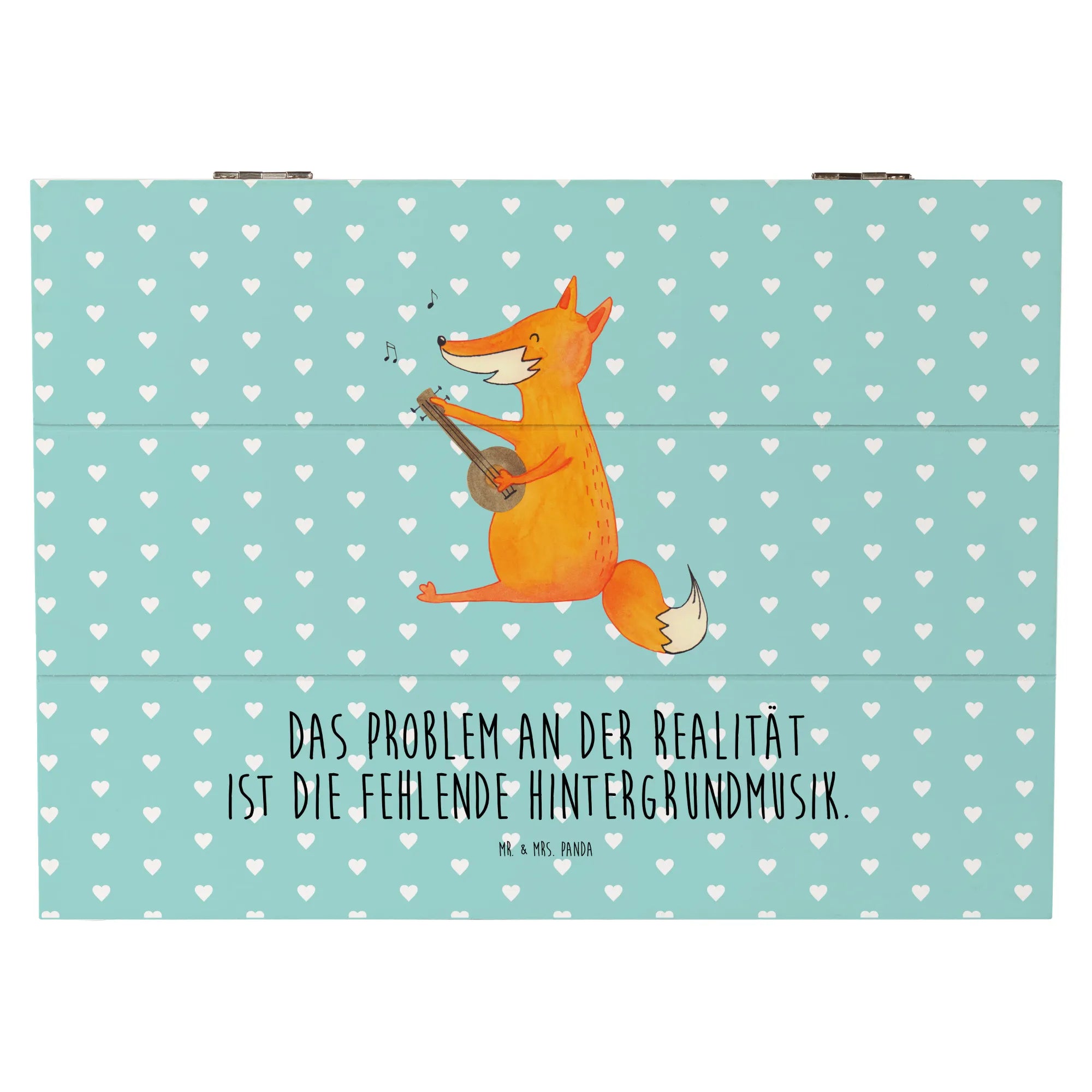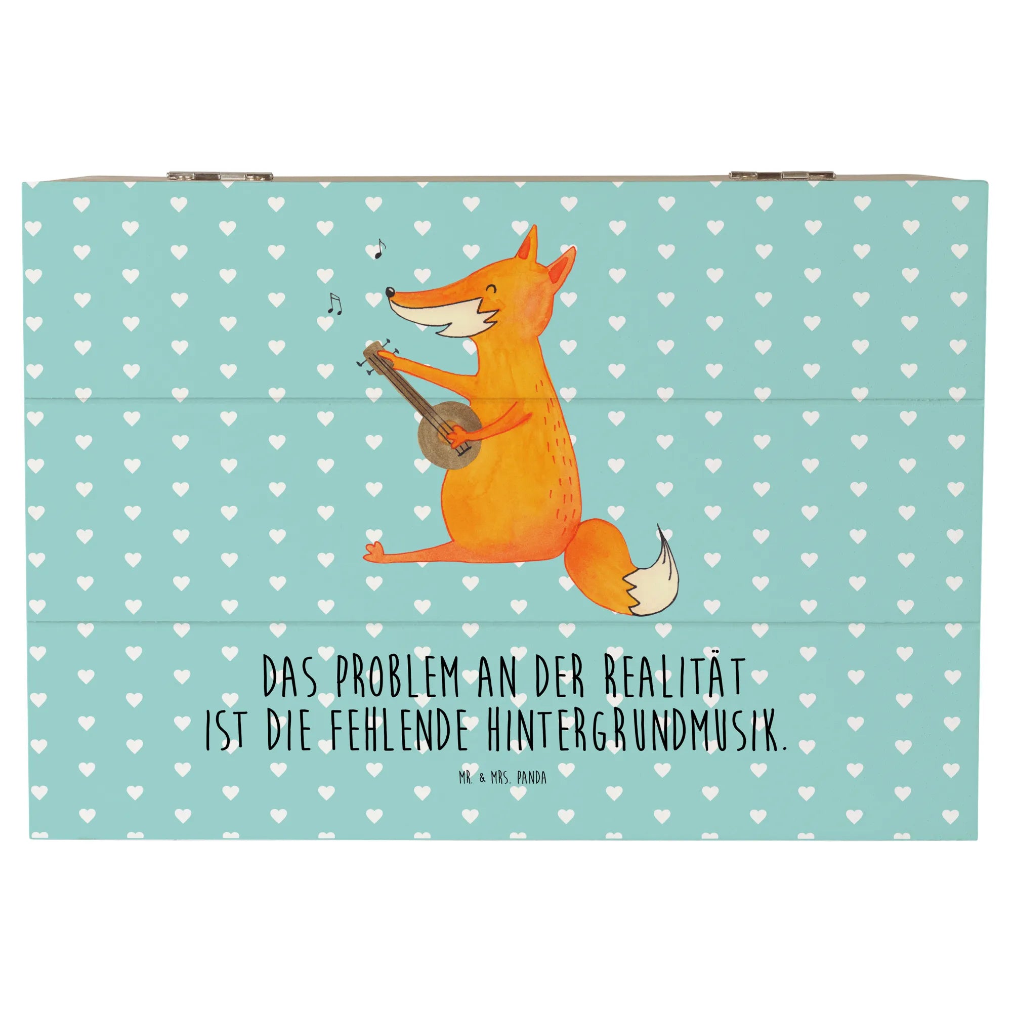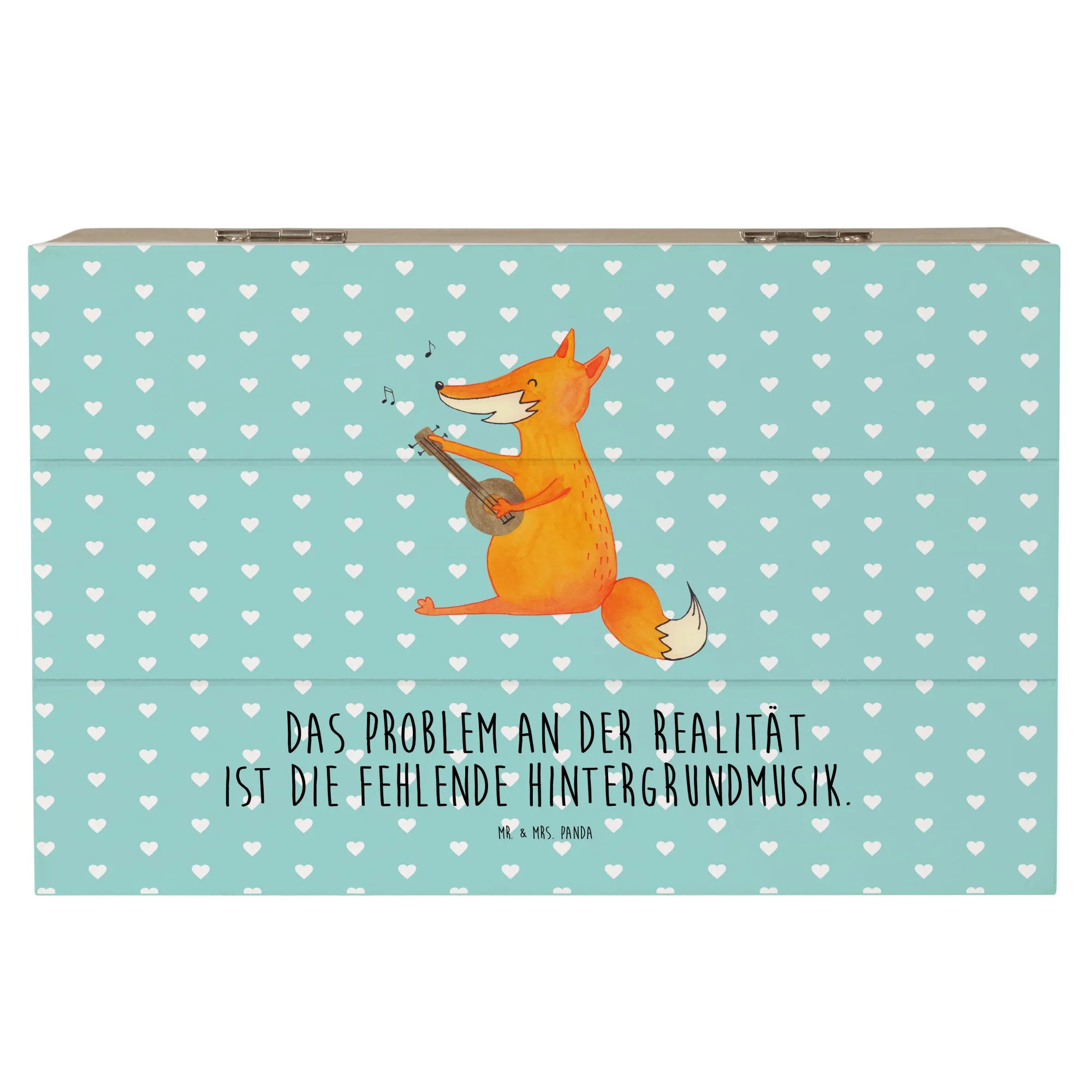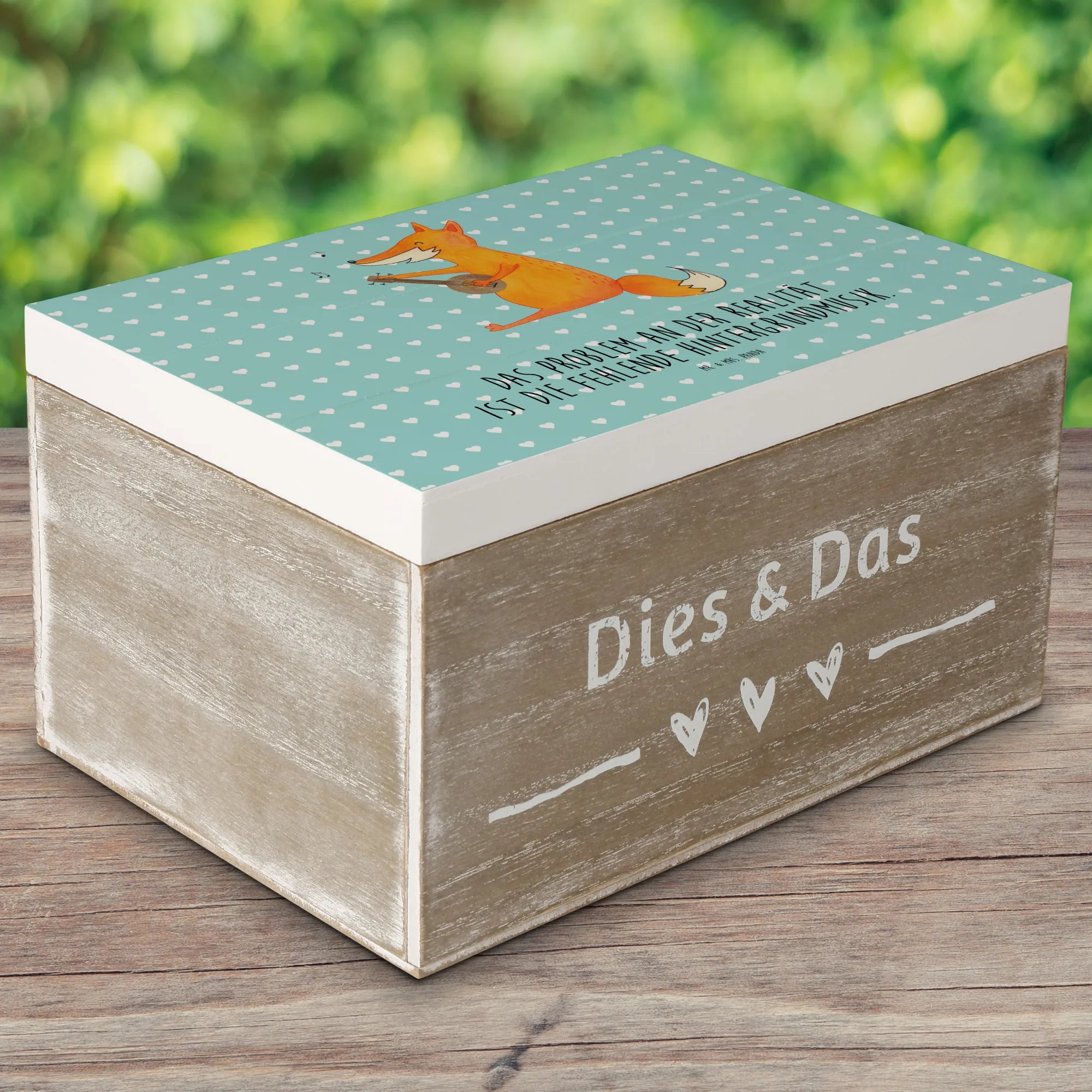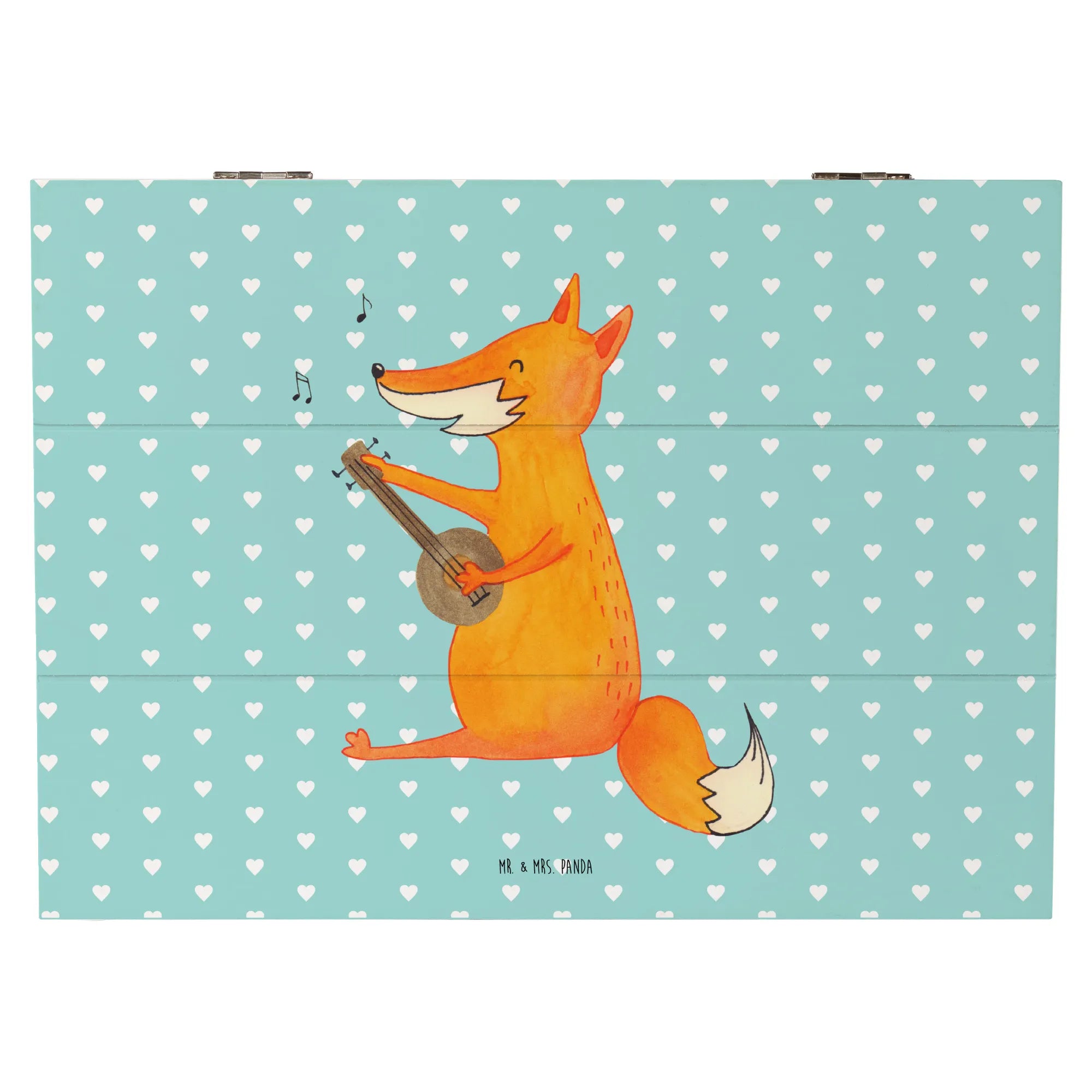 Skrzynia drewniana Lis gitara - 19 x 12 cm - z napisem - biały