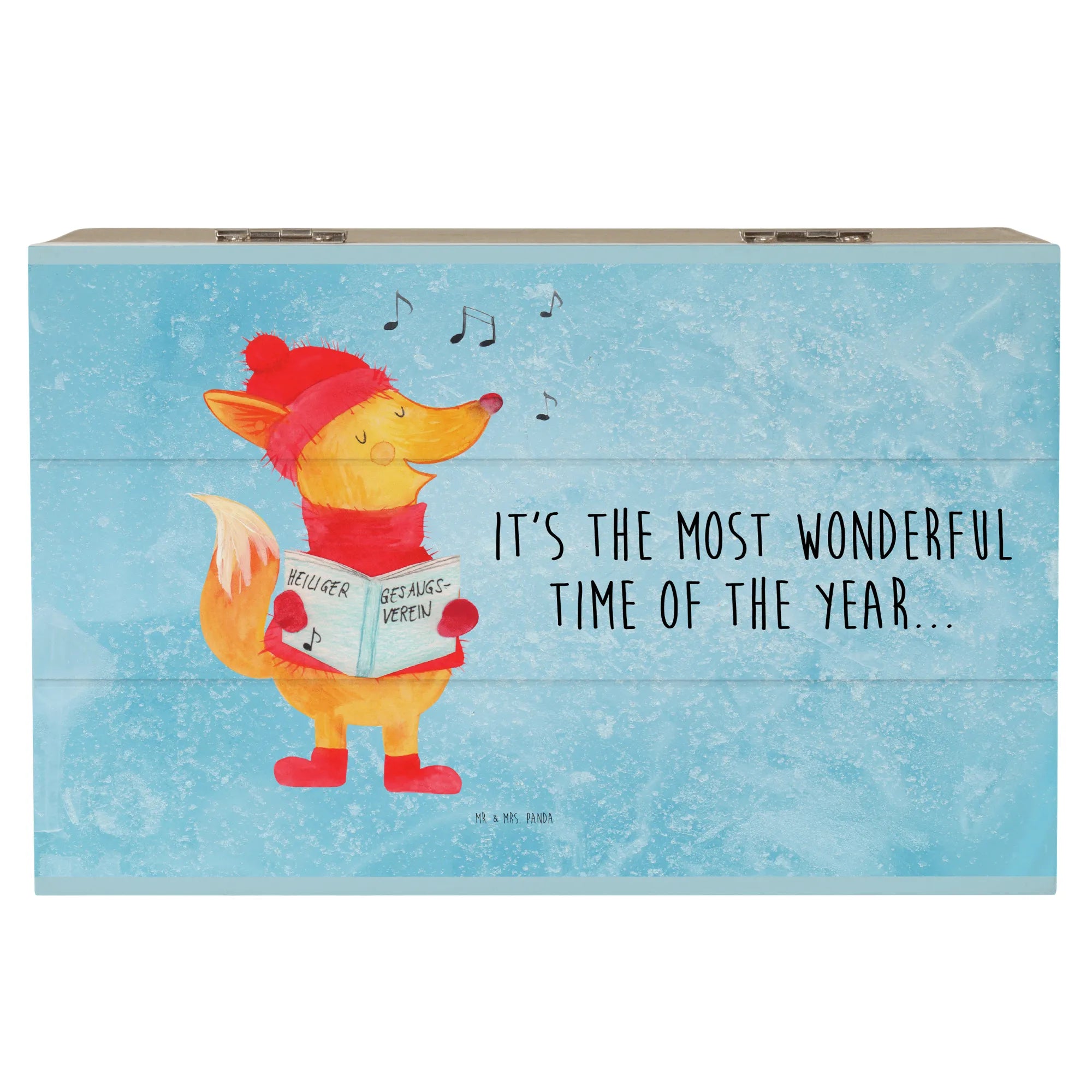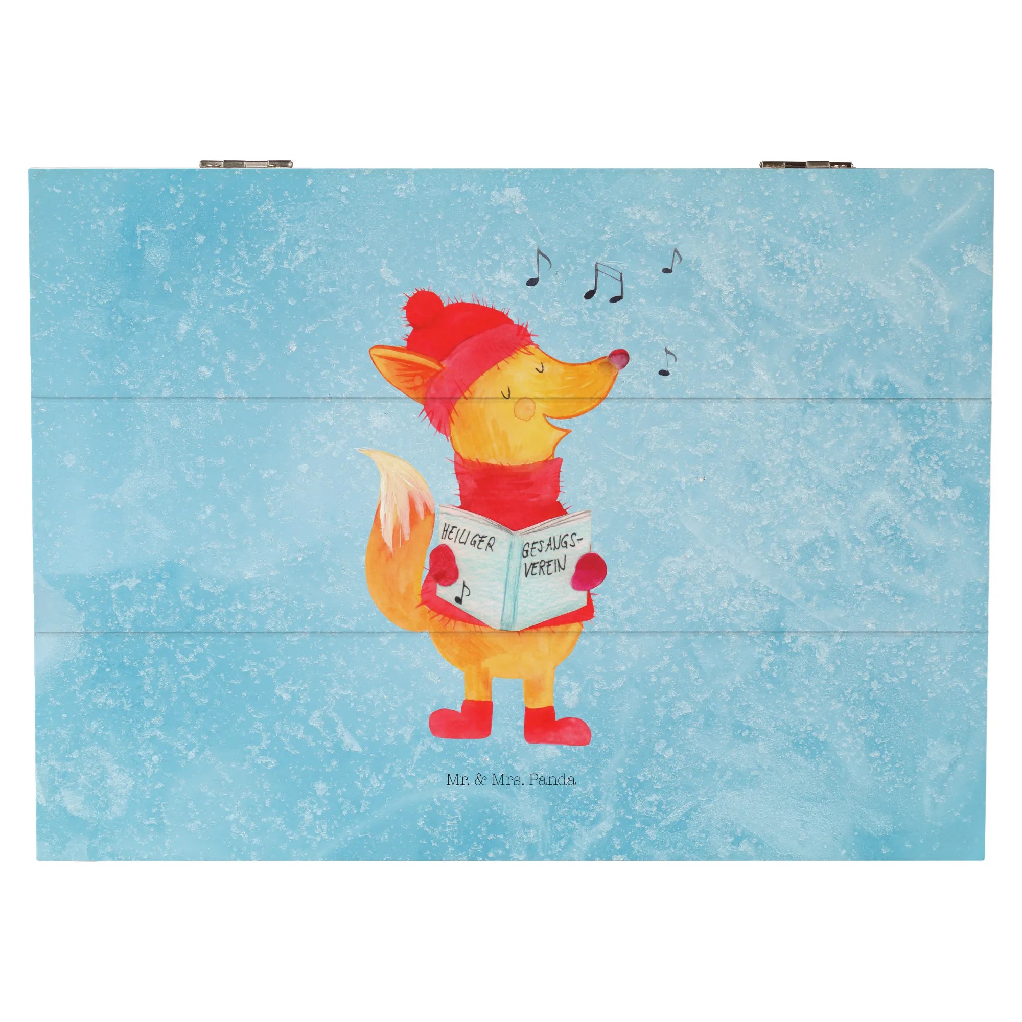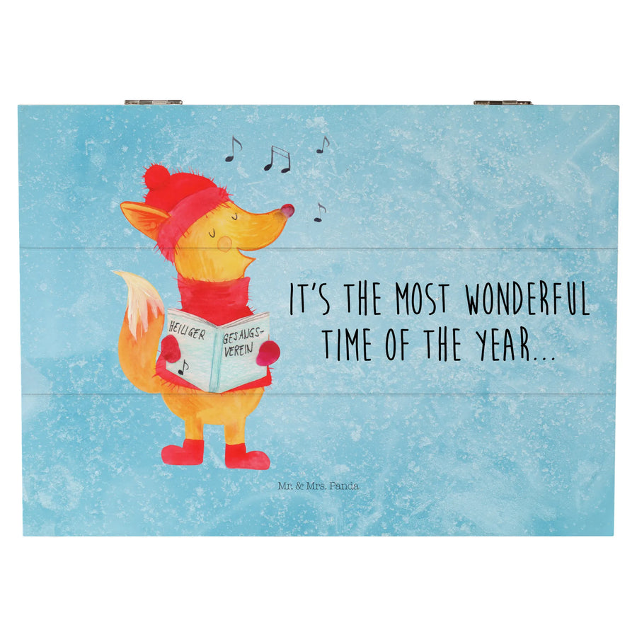 Skrzynia drewniana lis Śpiewak - 25 x 18 cm - z napisem - Eisblau