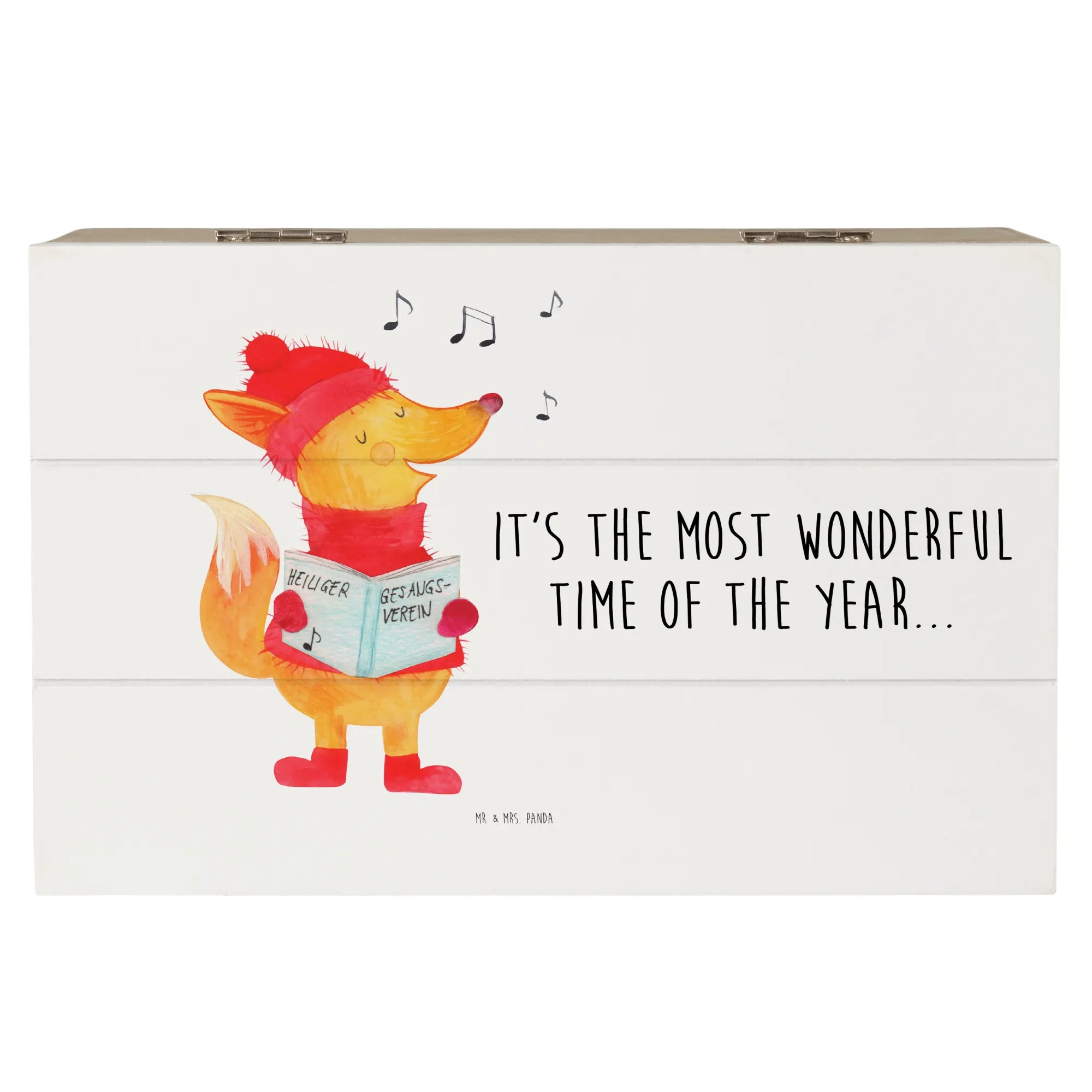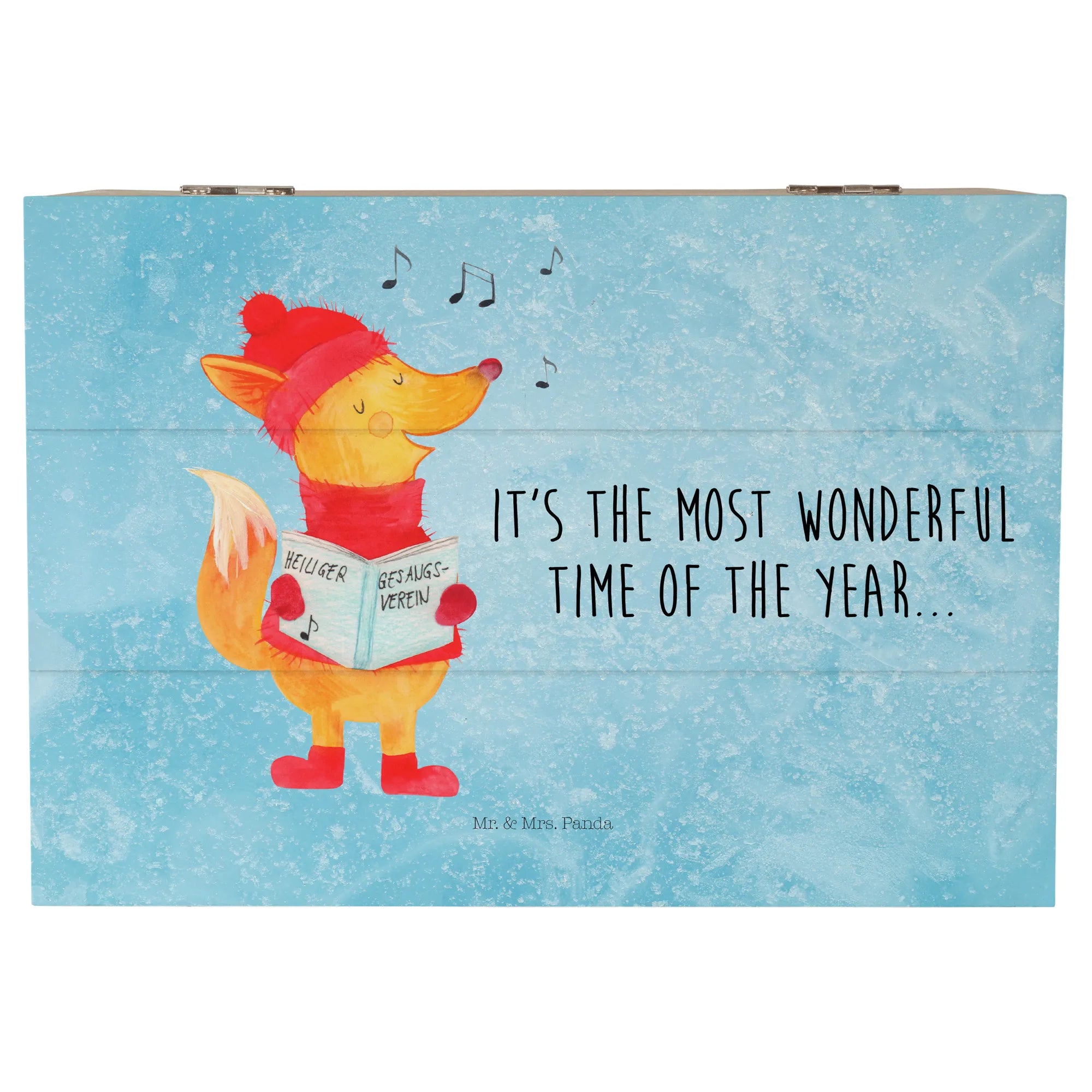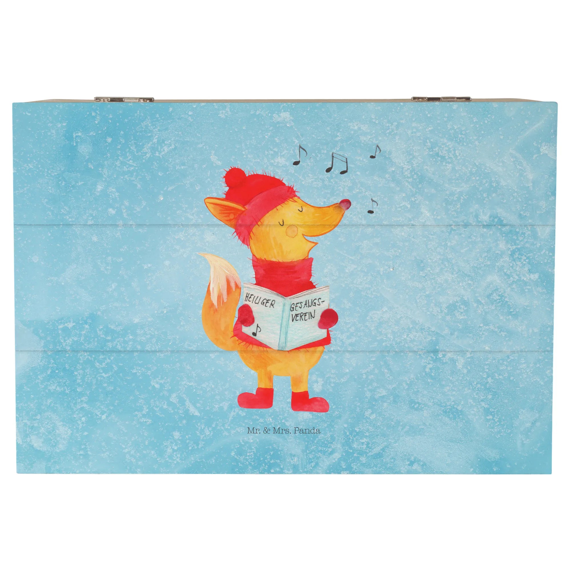 Skrzynia drewniana lis Śpiewak - 25 x 18 cm - z napisem - Eisblau