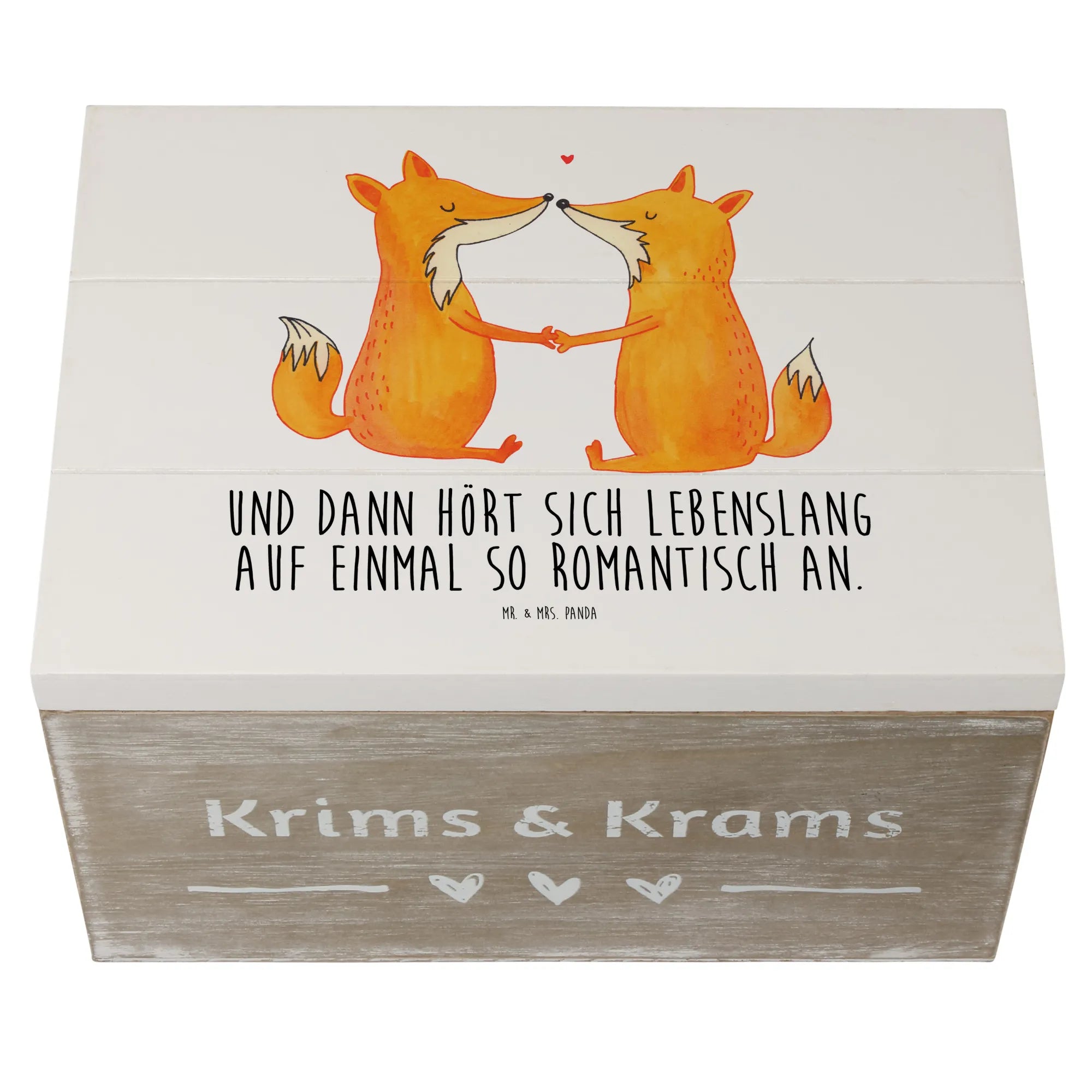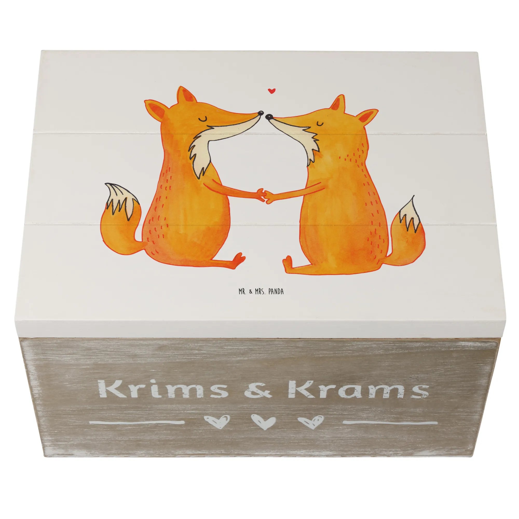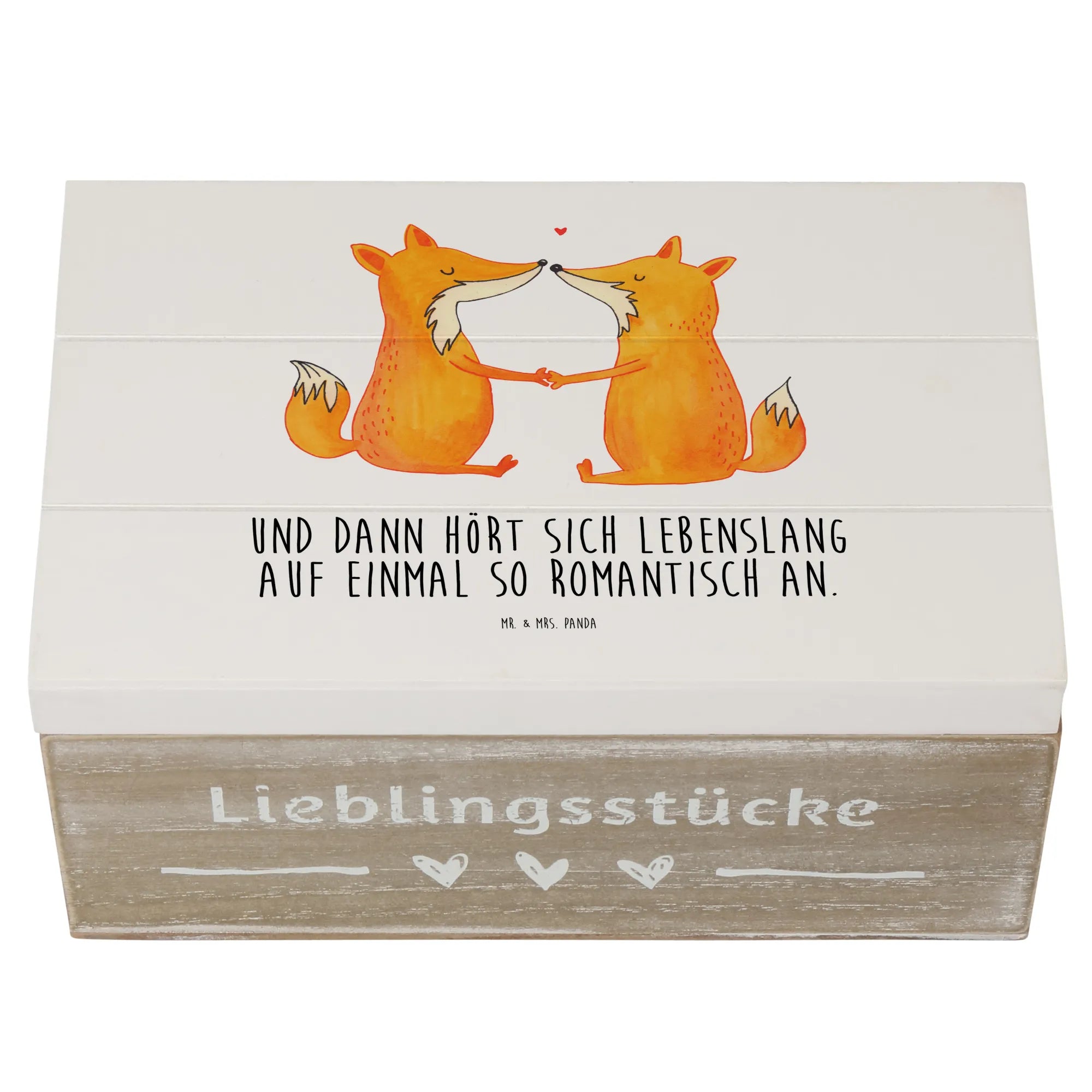 Skrzynia drewniana lisy miłość - 19 x 12 cm - z napisem - biały