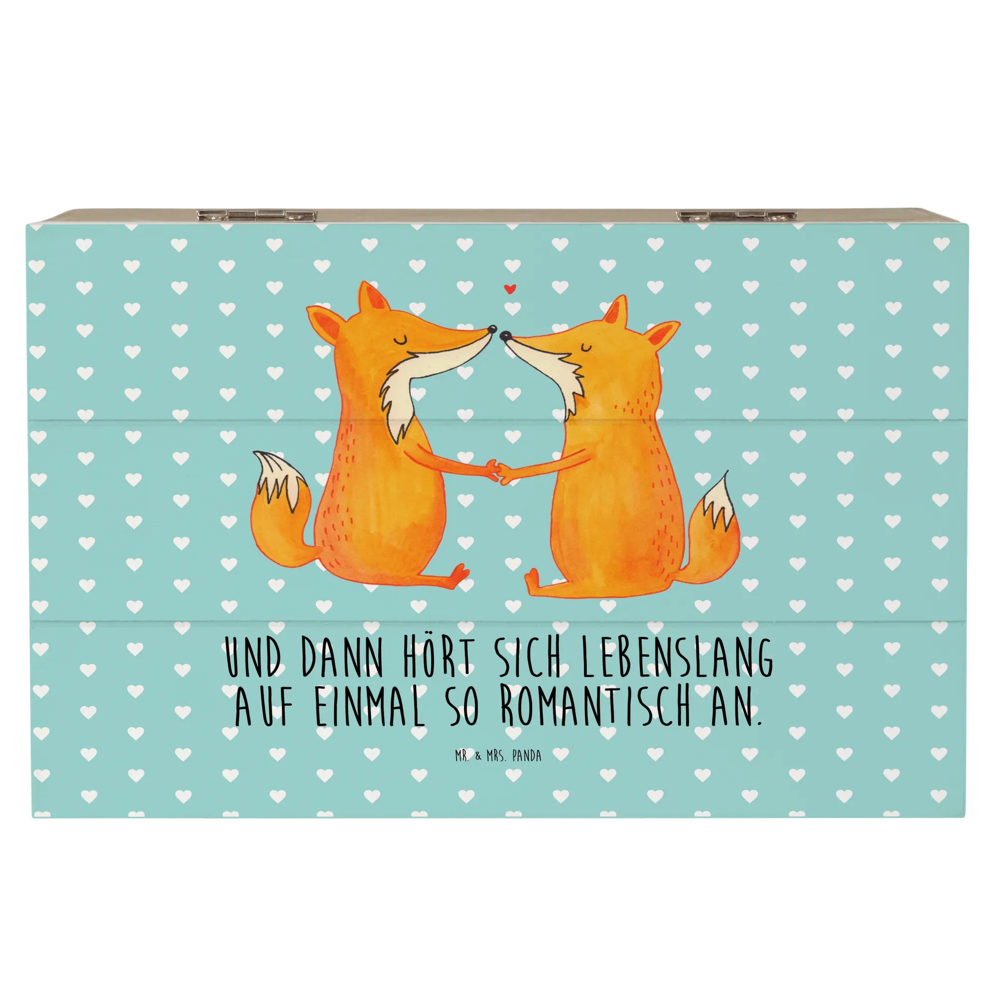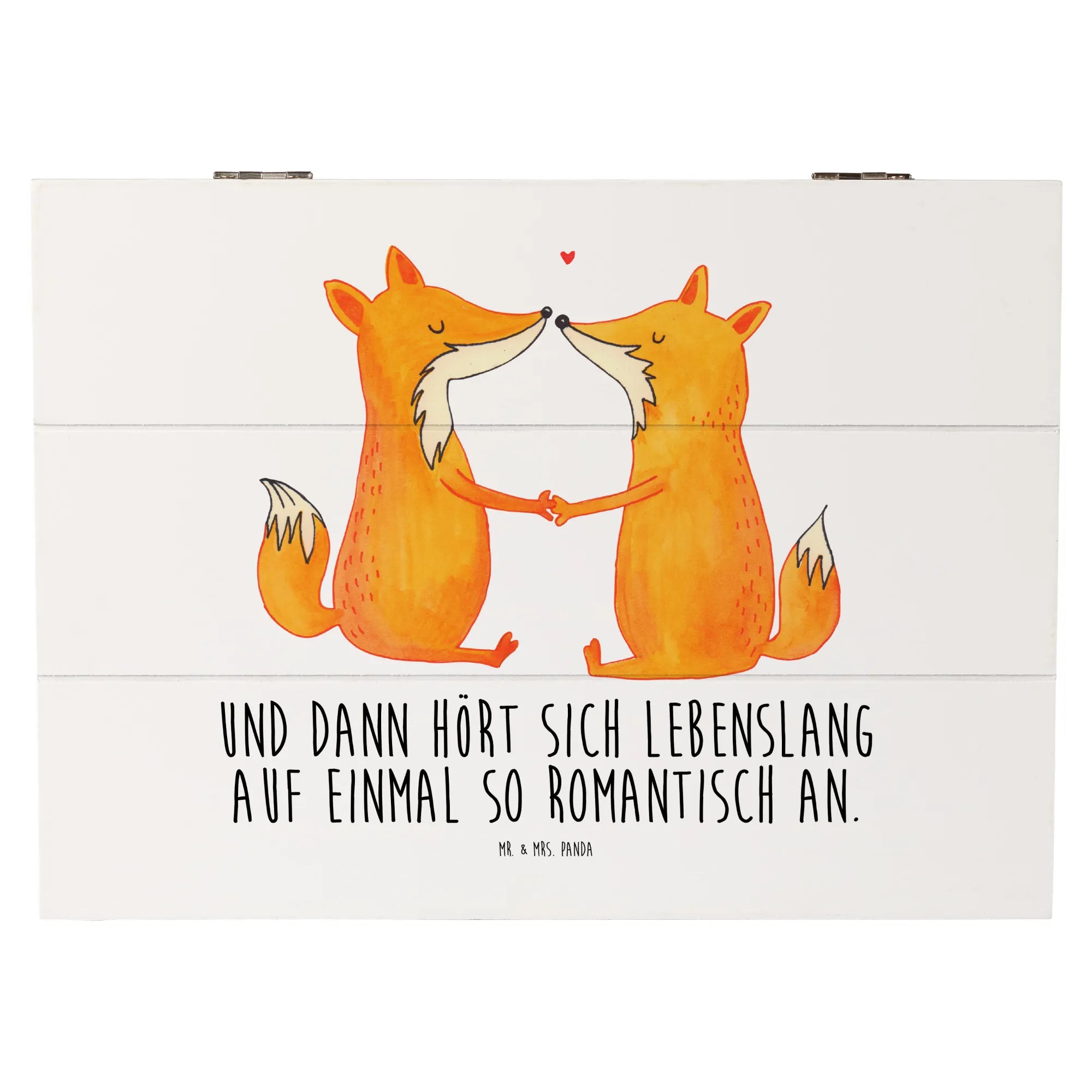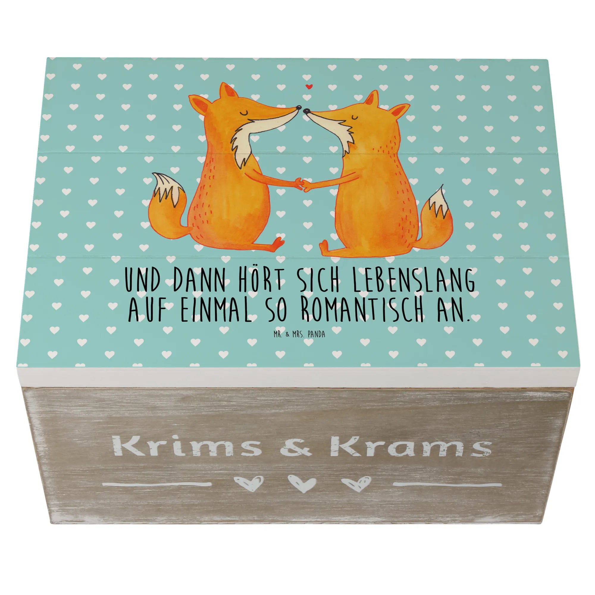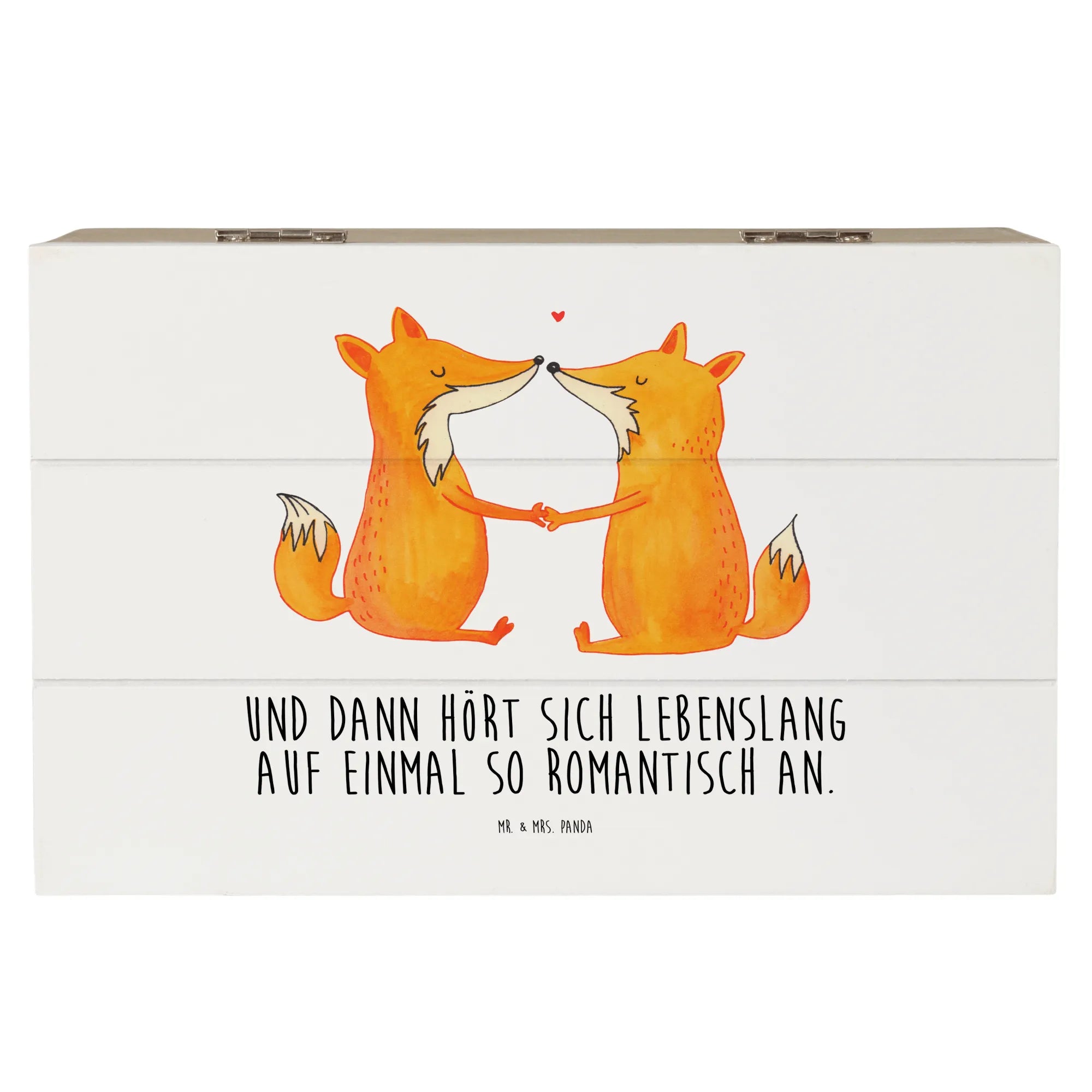 Skrzynia drewniana lisy miłość - 19 x 12 cm - z napisem - biały