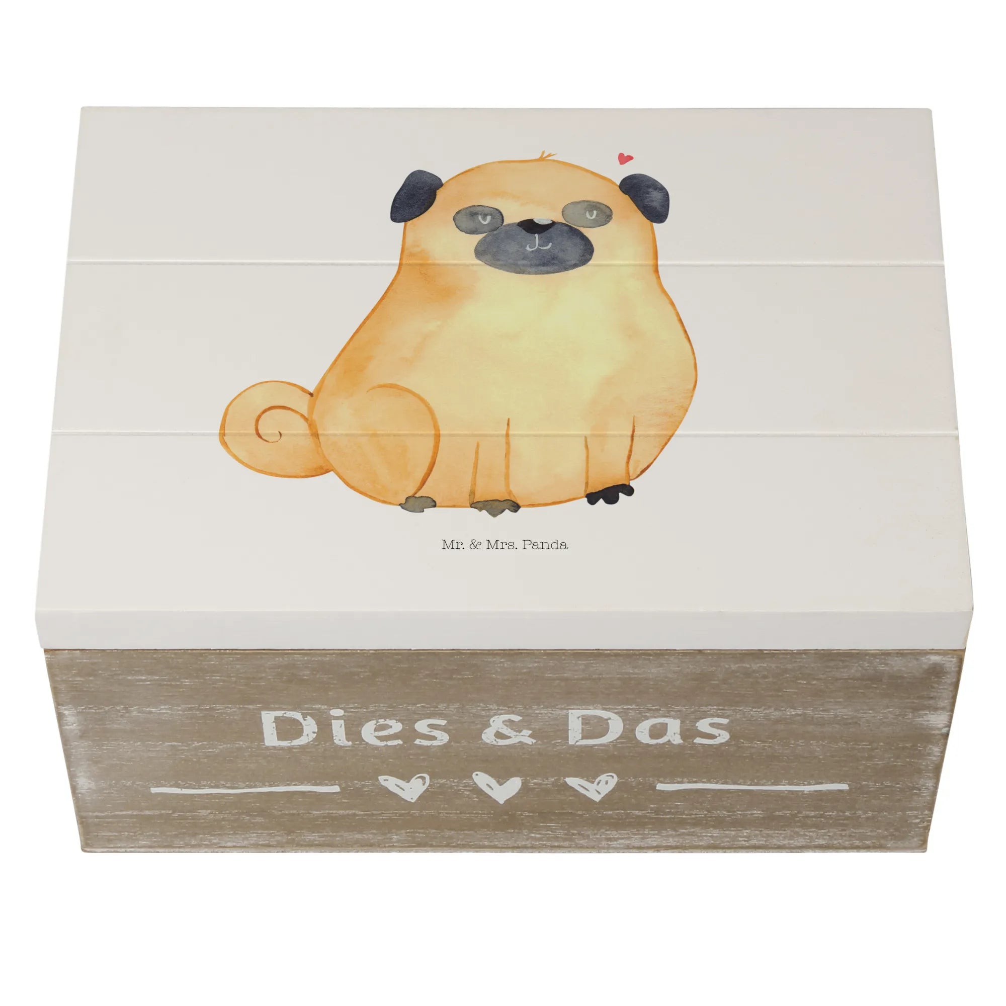 Skrzynia drewniana Mops - 25 x 18 cm - z napisem - Hundeglück