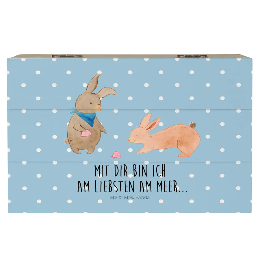 Skrzynia drewniana Muszla królików - 19 x 12 cm - z napisem - Niebieski Pastel