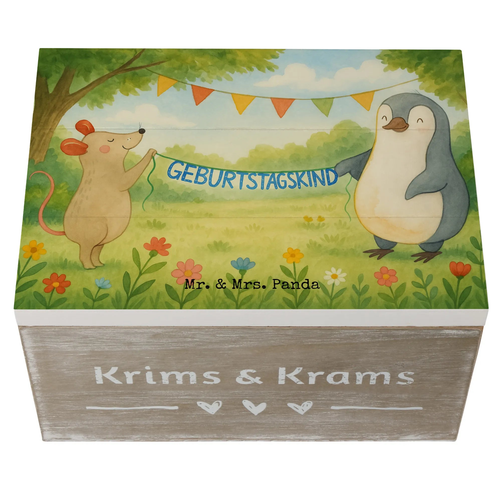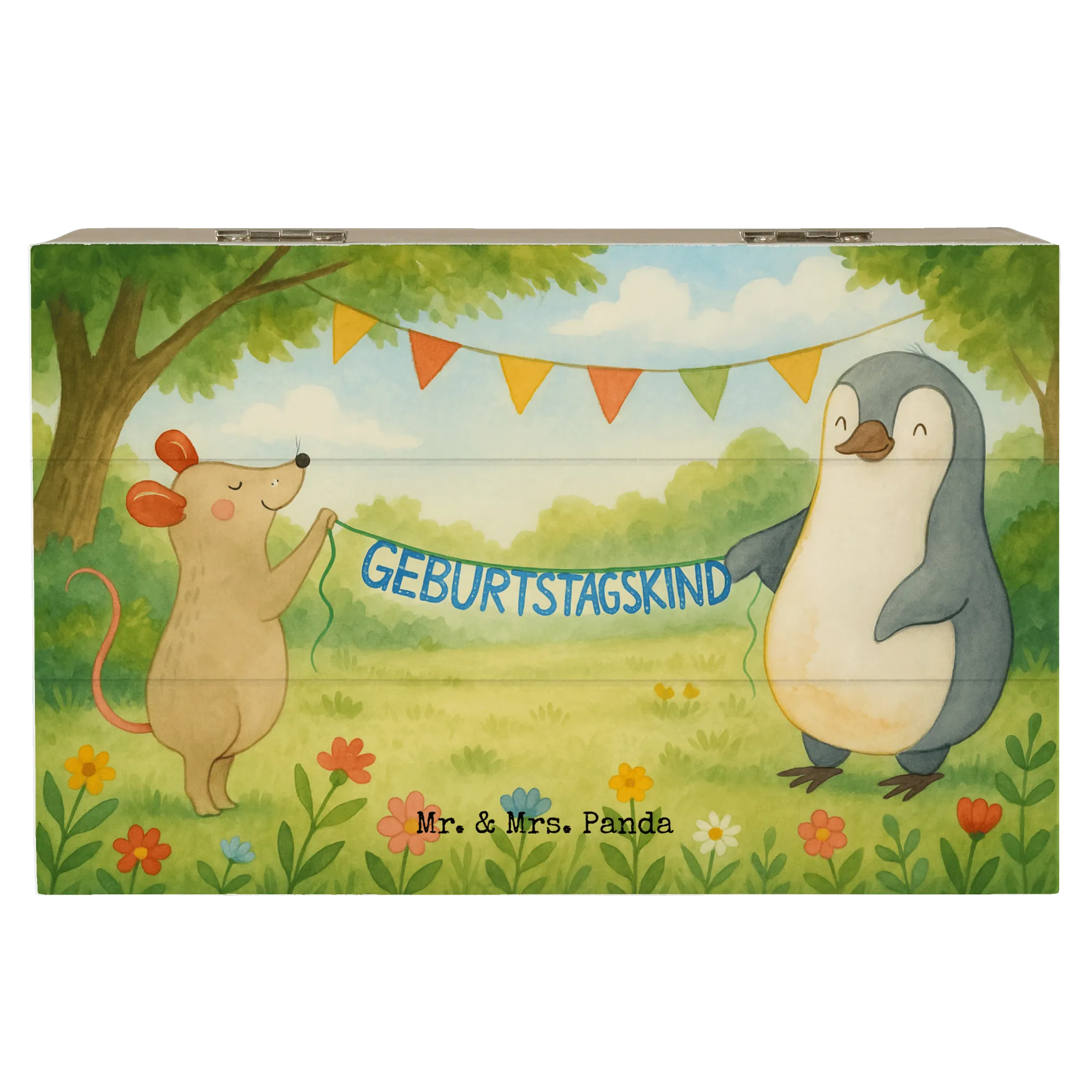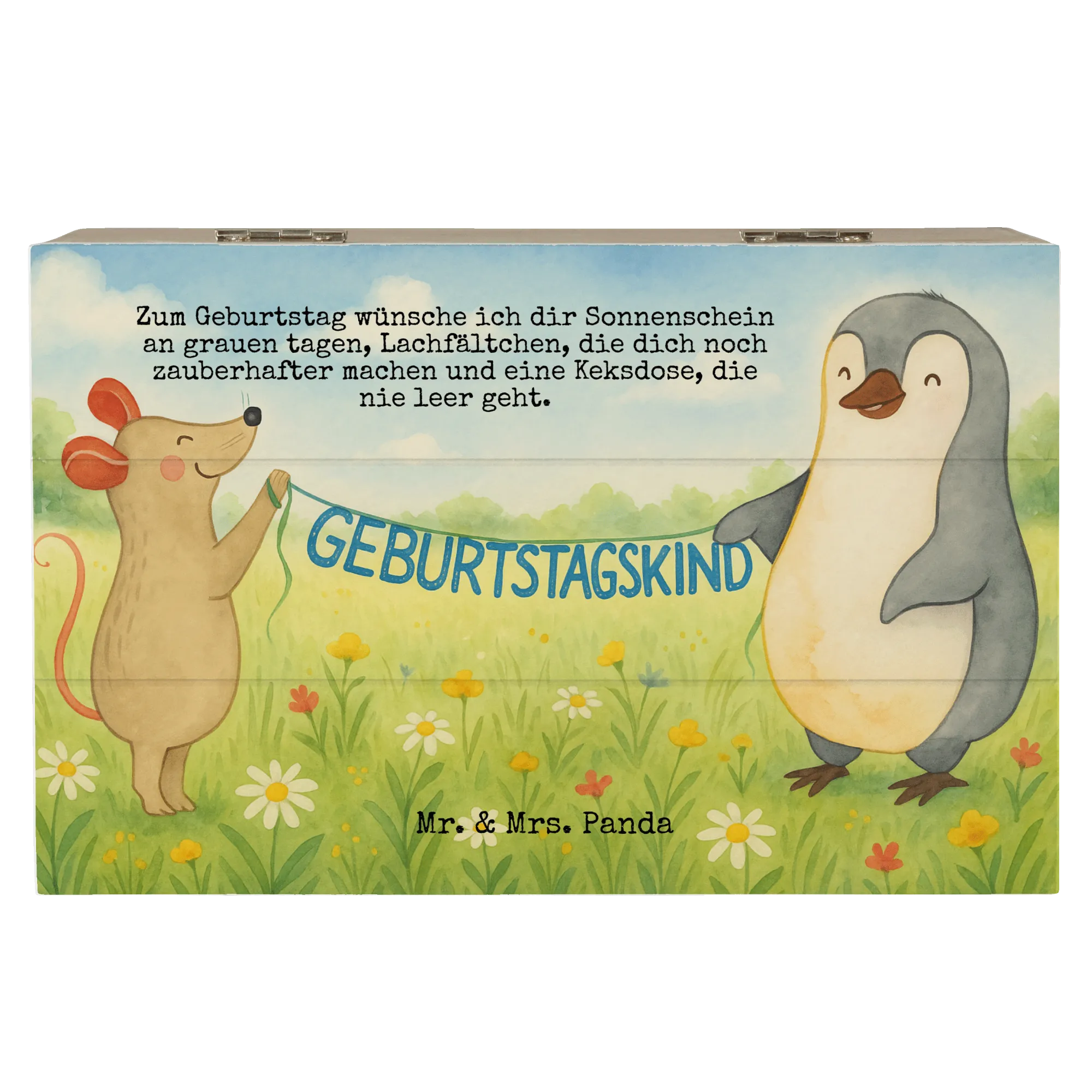 Skrzynia drewniana Mysz Pingwin urodziny Design - 22 x 15 cm - z napisem