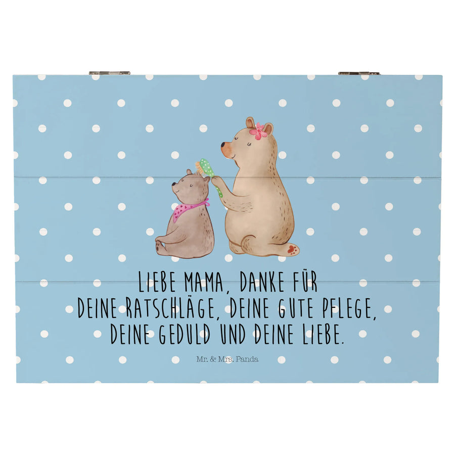 Skrzynia drewniana niedźwiedź dziecko - 25 x 18 cm - z napisem - Niebieski Pastel