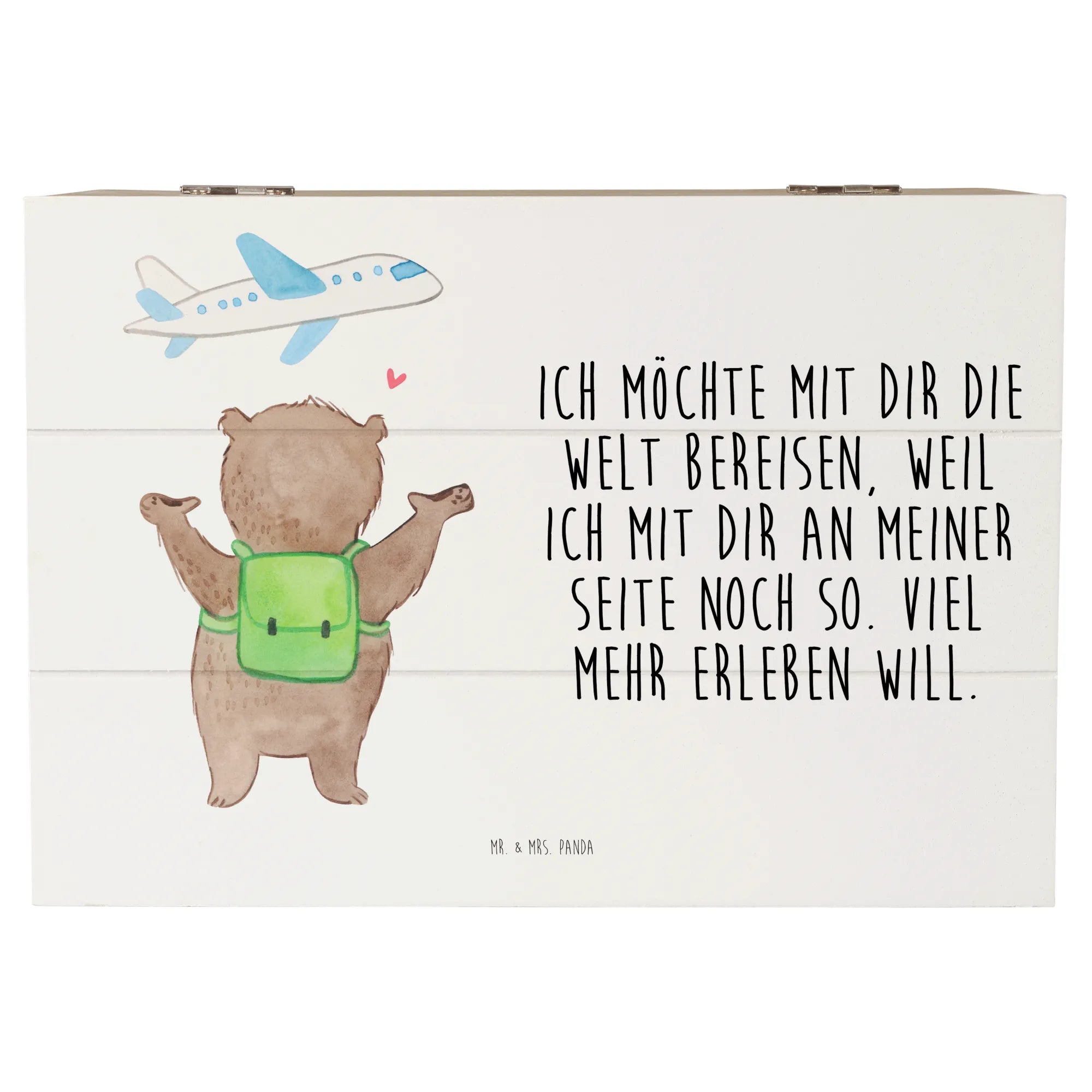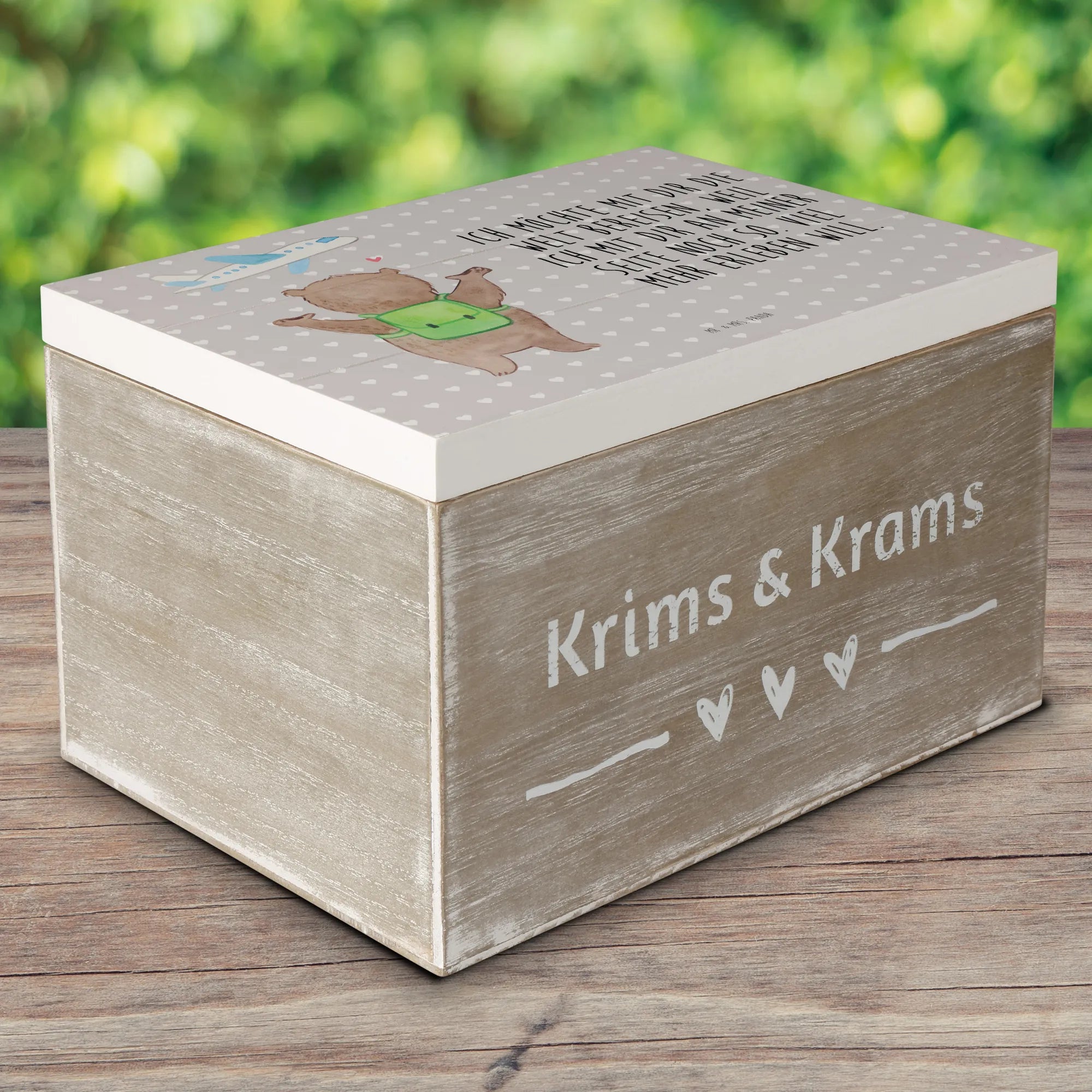 Skrzynia drewniana niedźwiedź samolot - 22 x 15 cm - biały