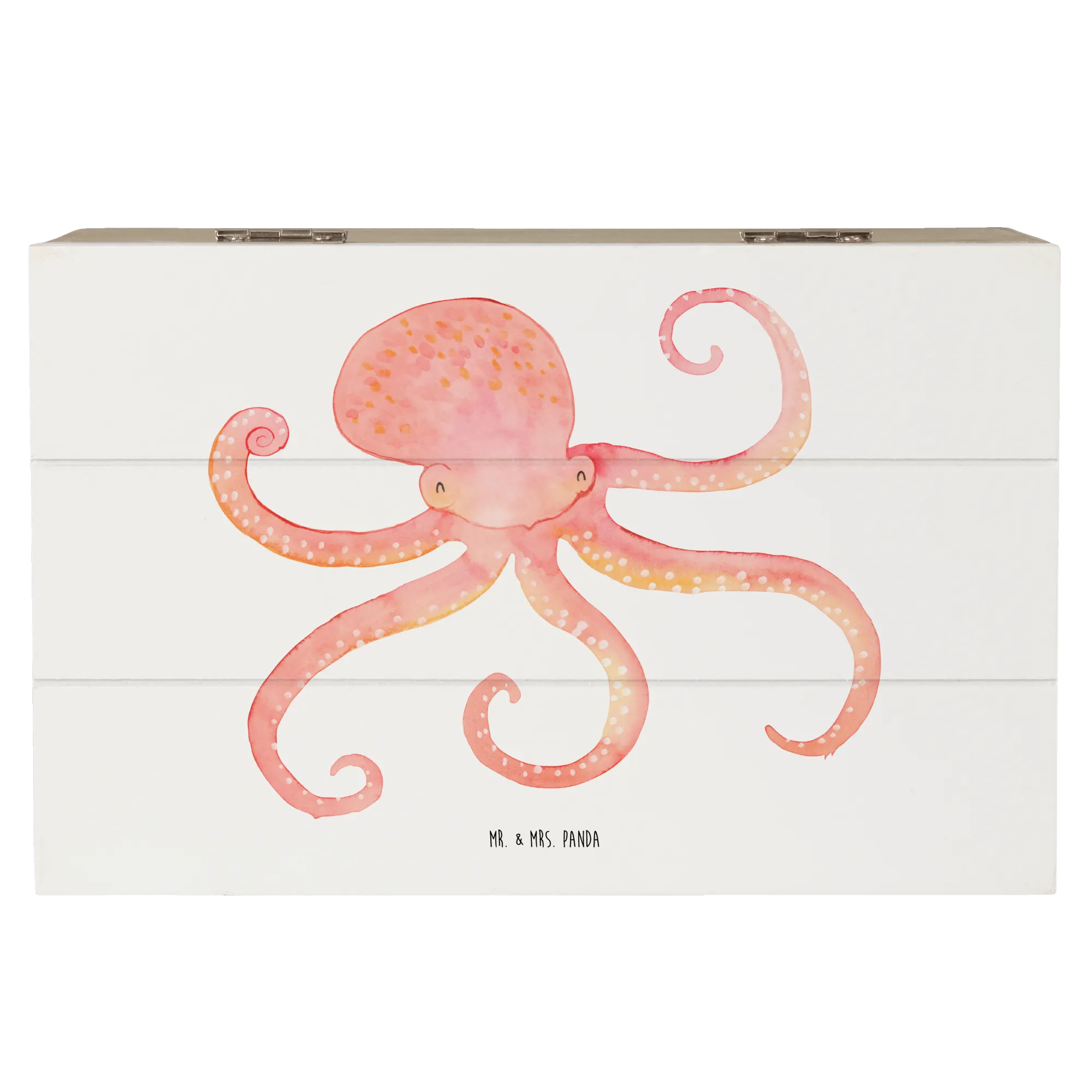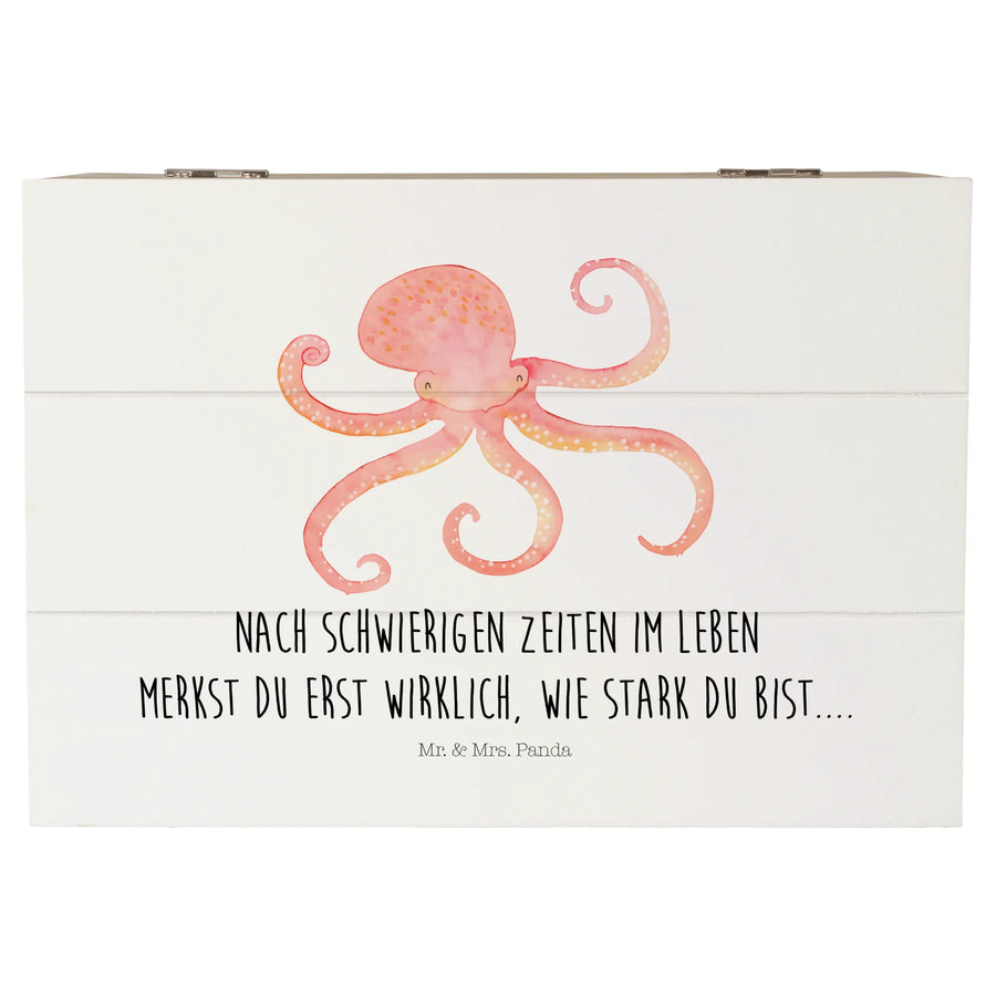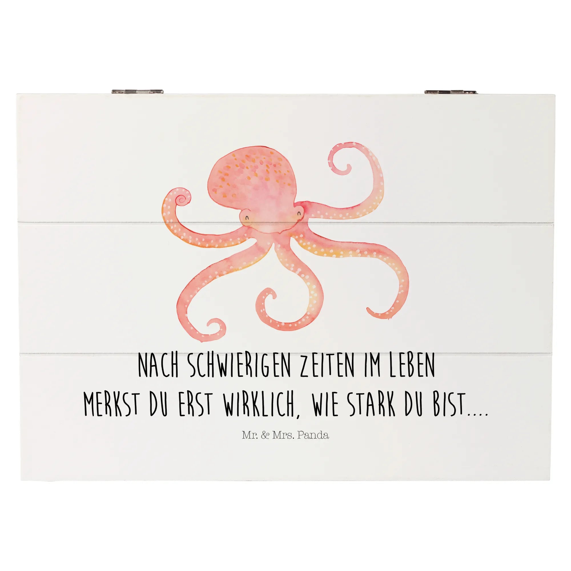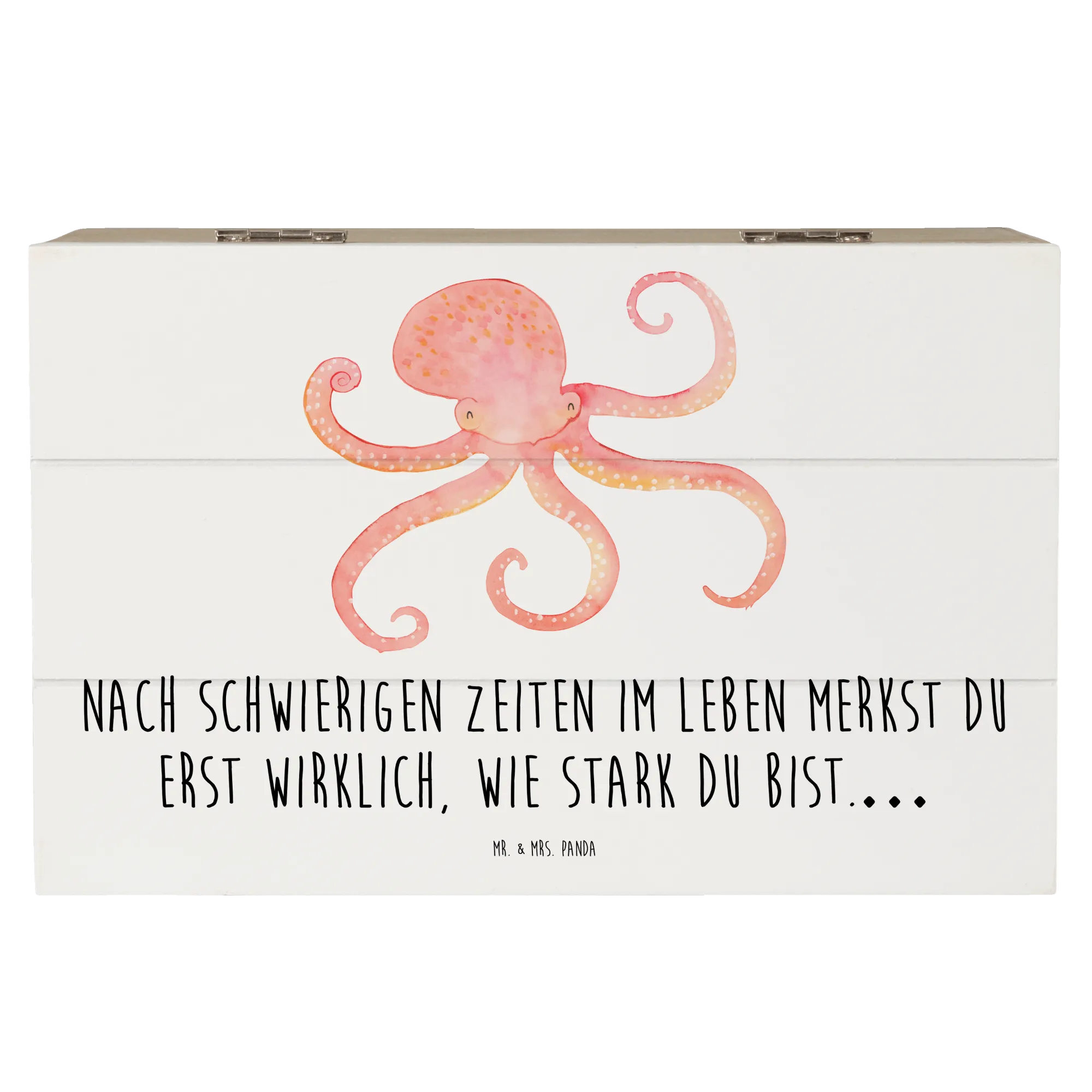 Skrzynia drewniana Ośmiornica - 22 x 15 cm - z napisem - Biały