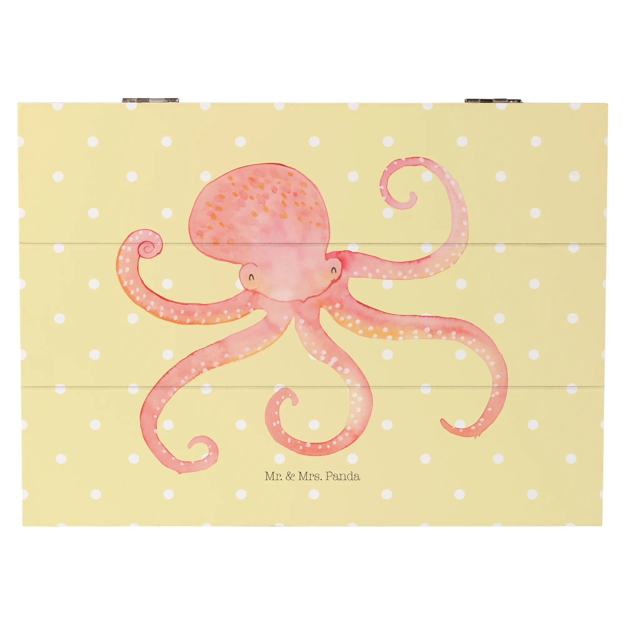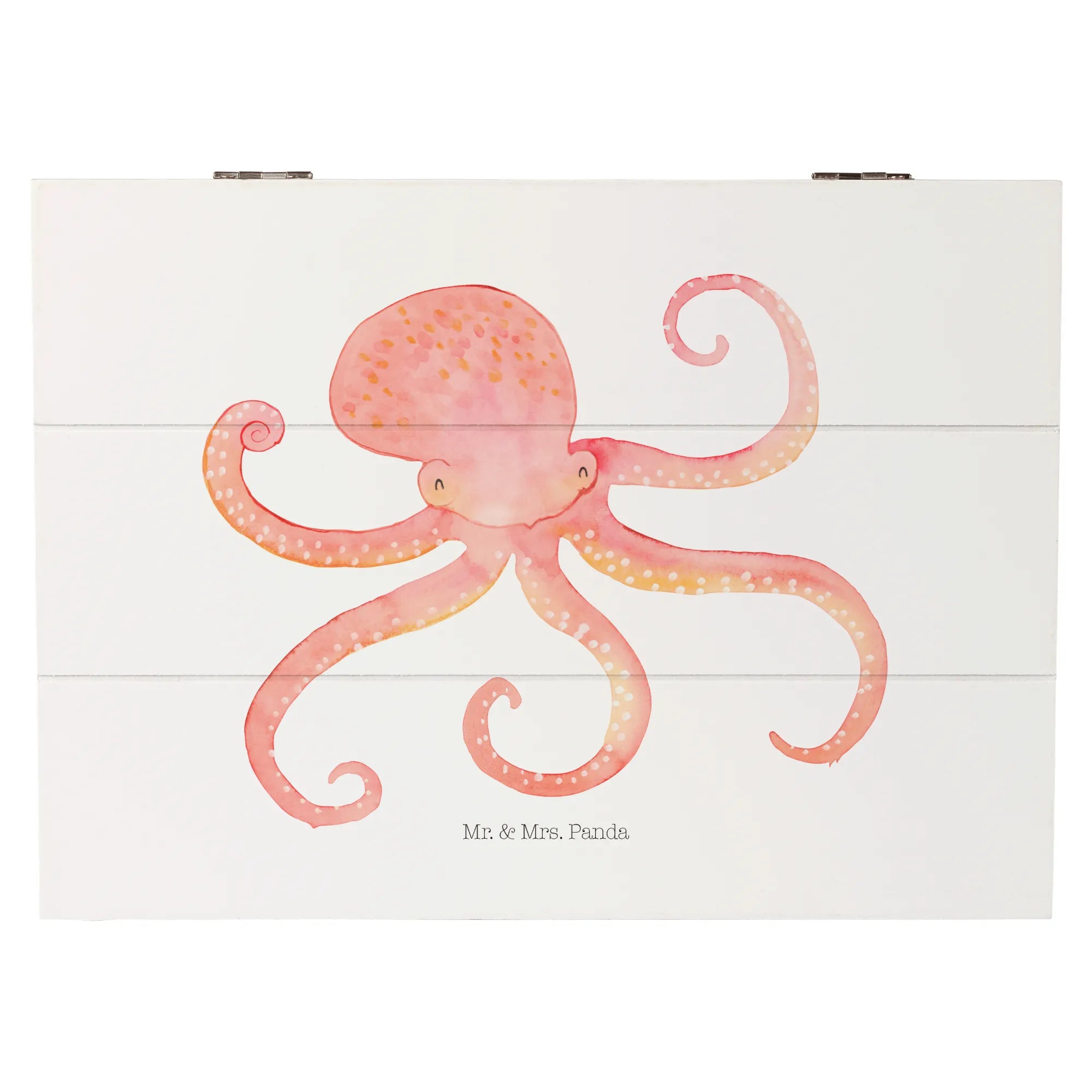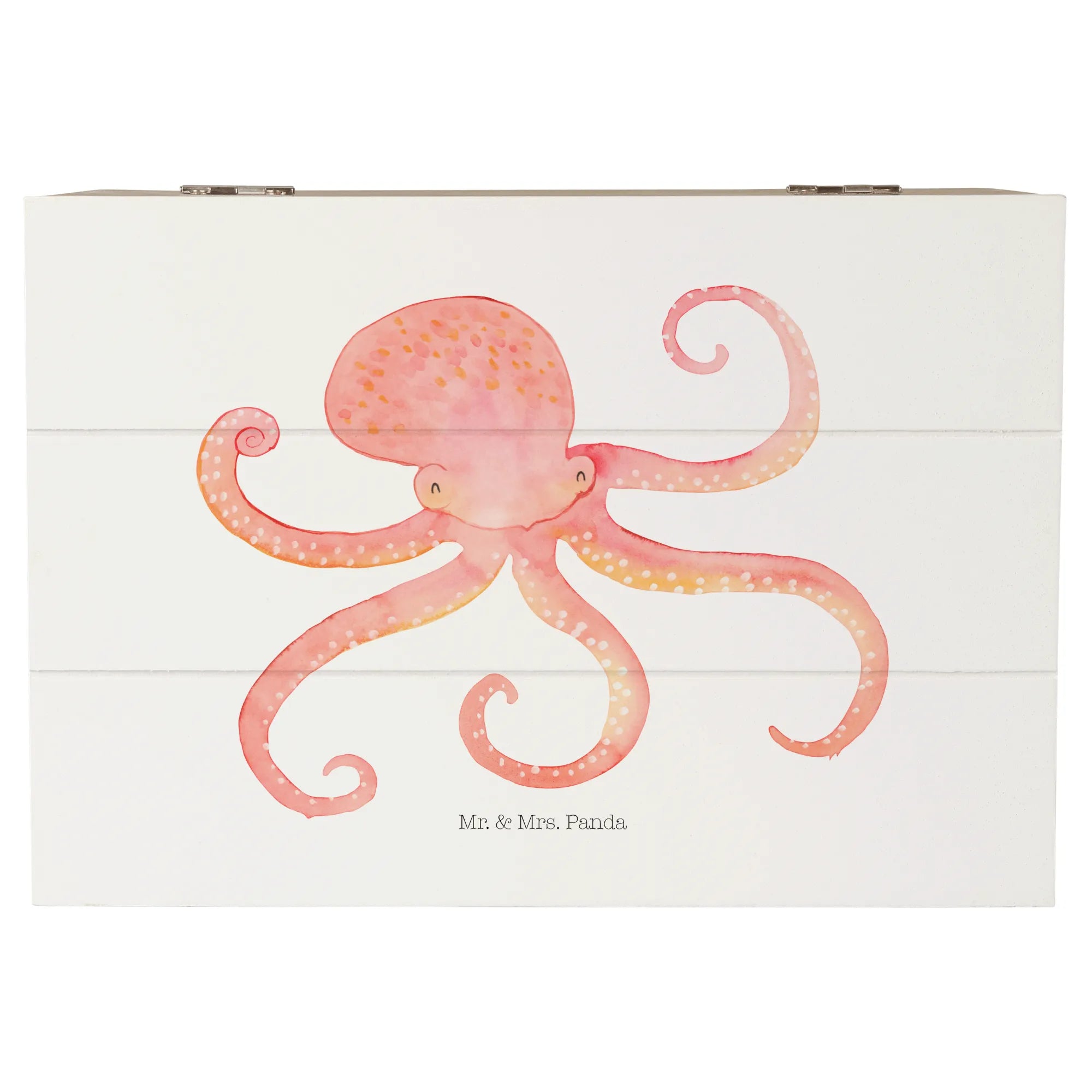 Skrzynia drewniana Ośmiornica - 22 x 15 cm - z napisem - Biały