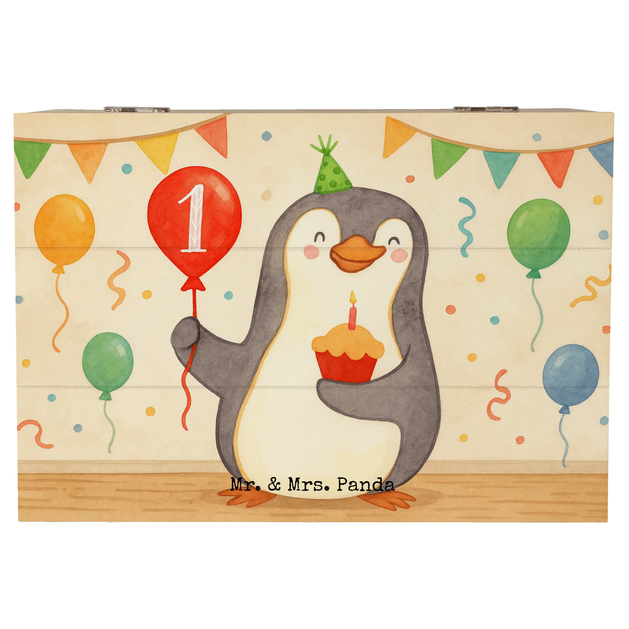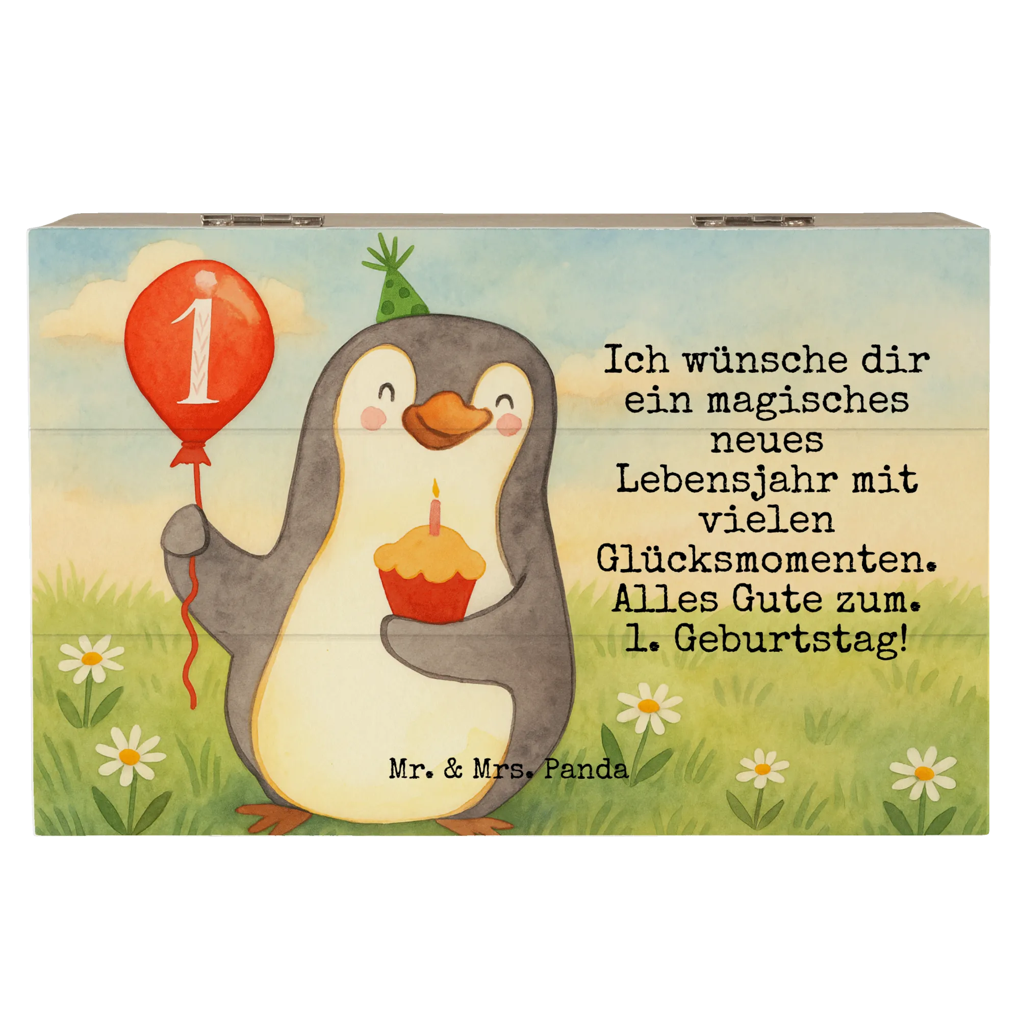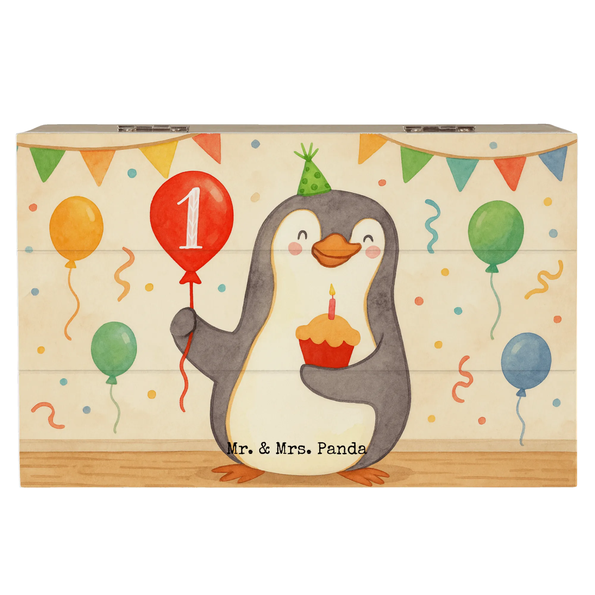 Skrzynia drewniana Pierwsze urodziny Pingwin balon Design - 22 x 15 cm - z napisem