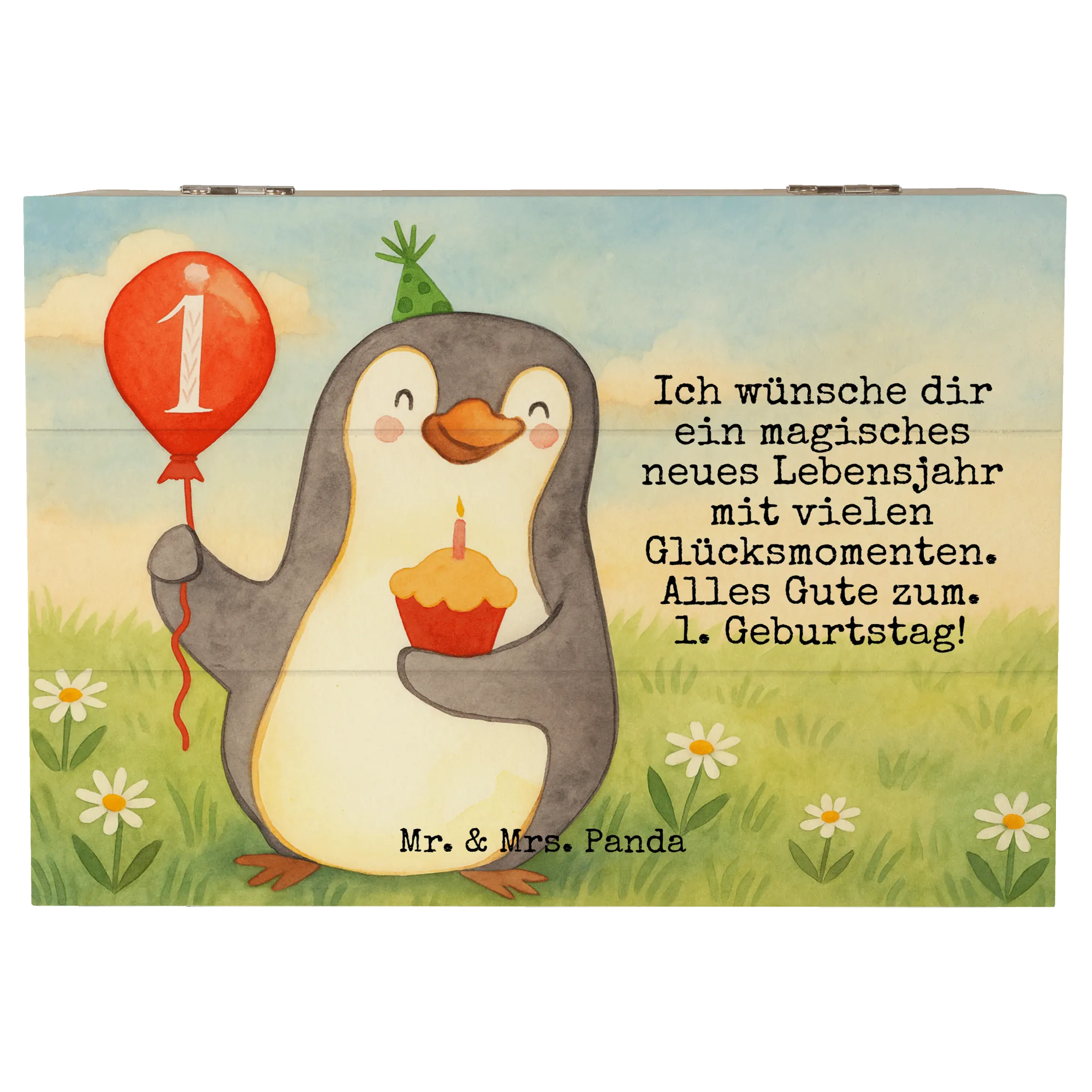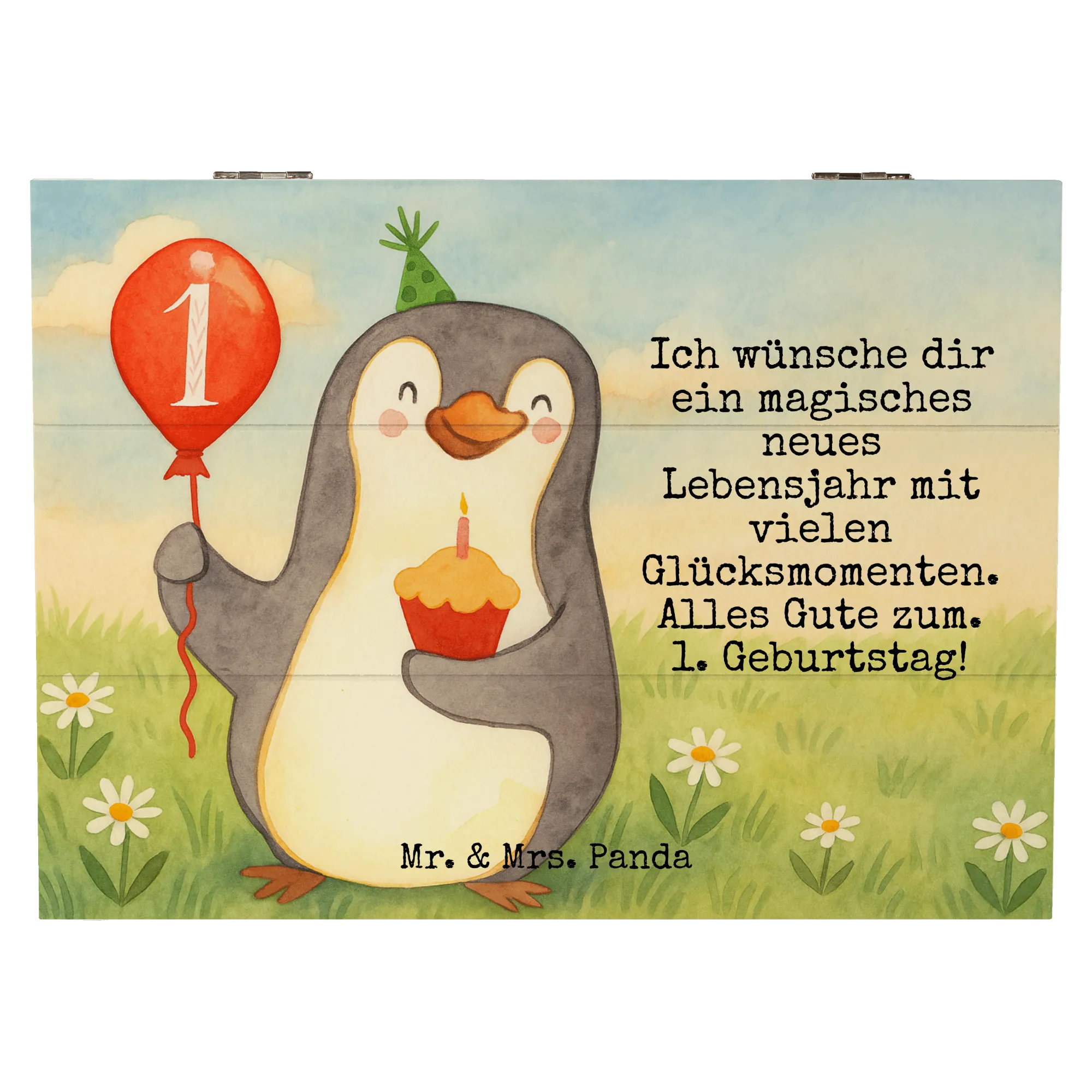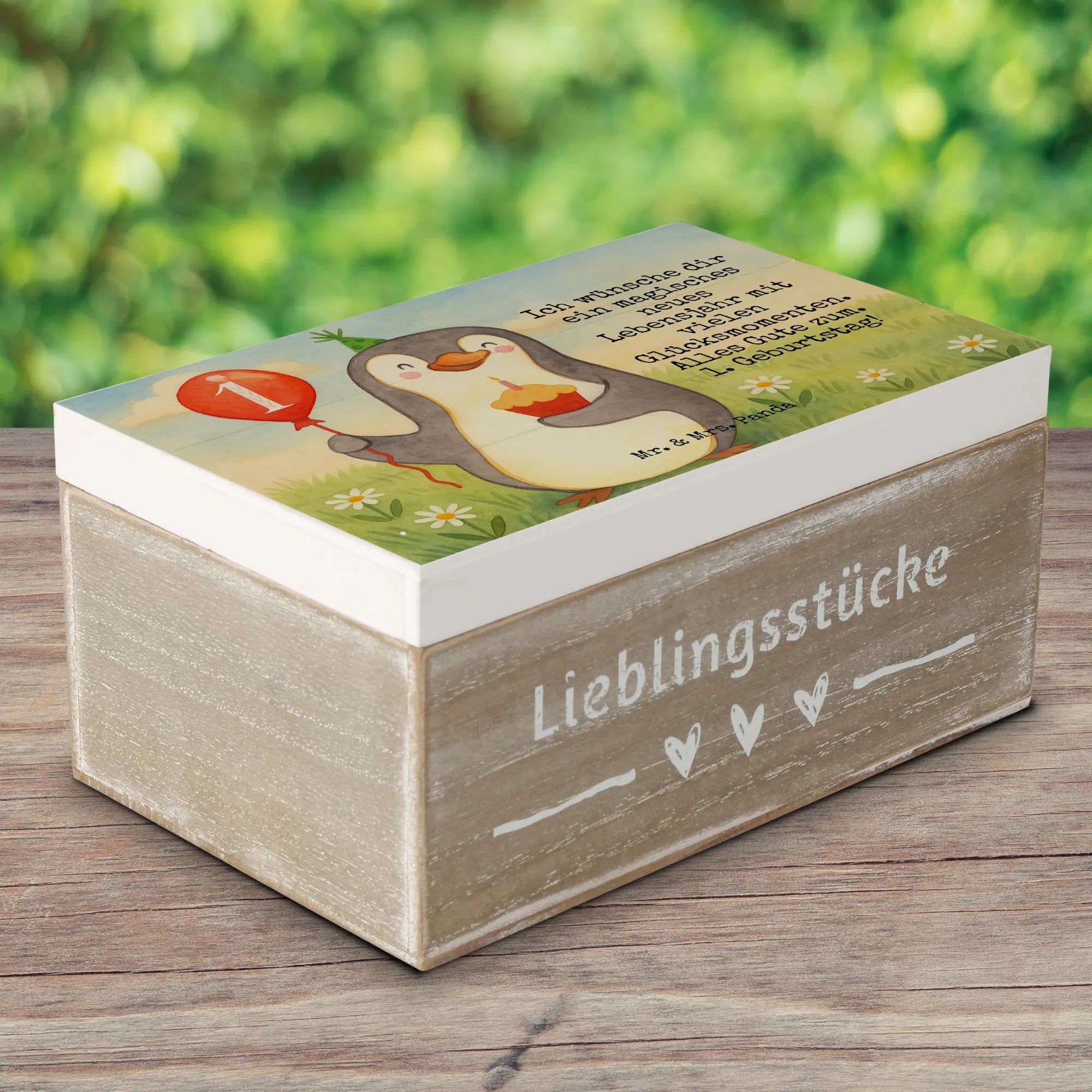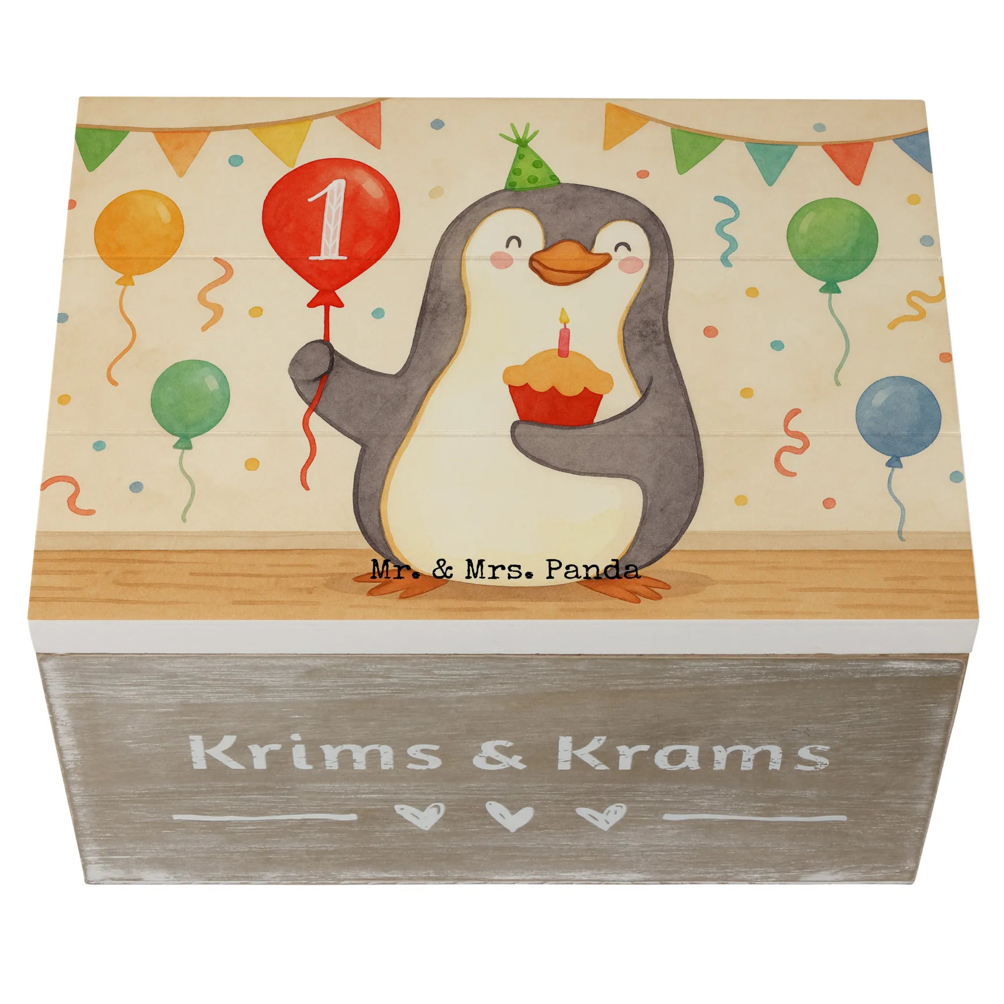Skrzynia drewniana Pierwsze urodziny Pingwin balon Design - 22 x 15 cm - z napisem