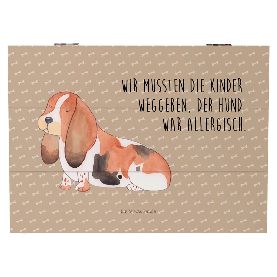 Skrzynia drewniana pies Basset Hound - 25 x 18 cm - z napisem - Hundeglück