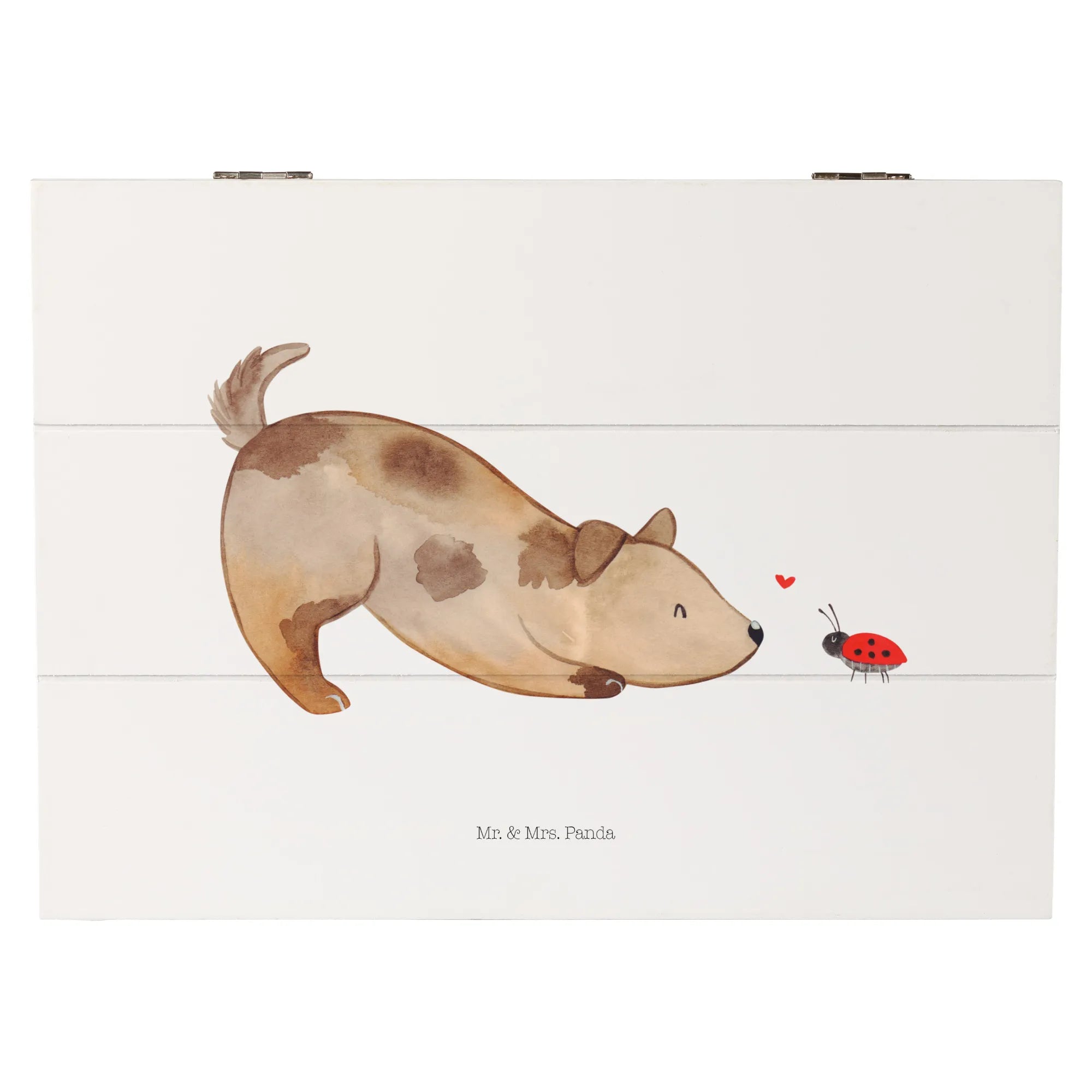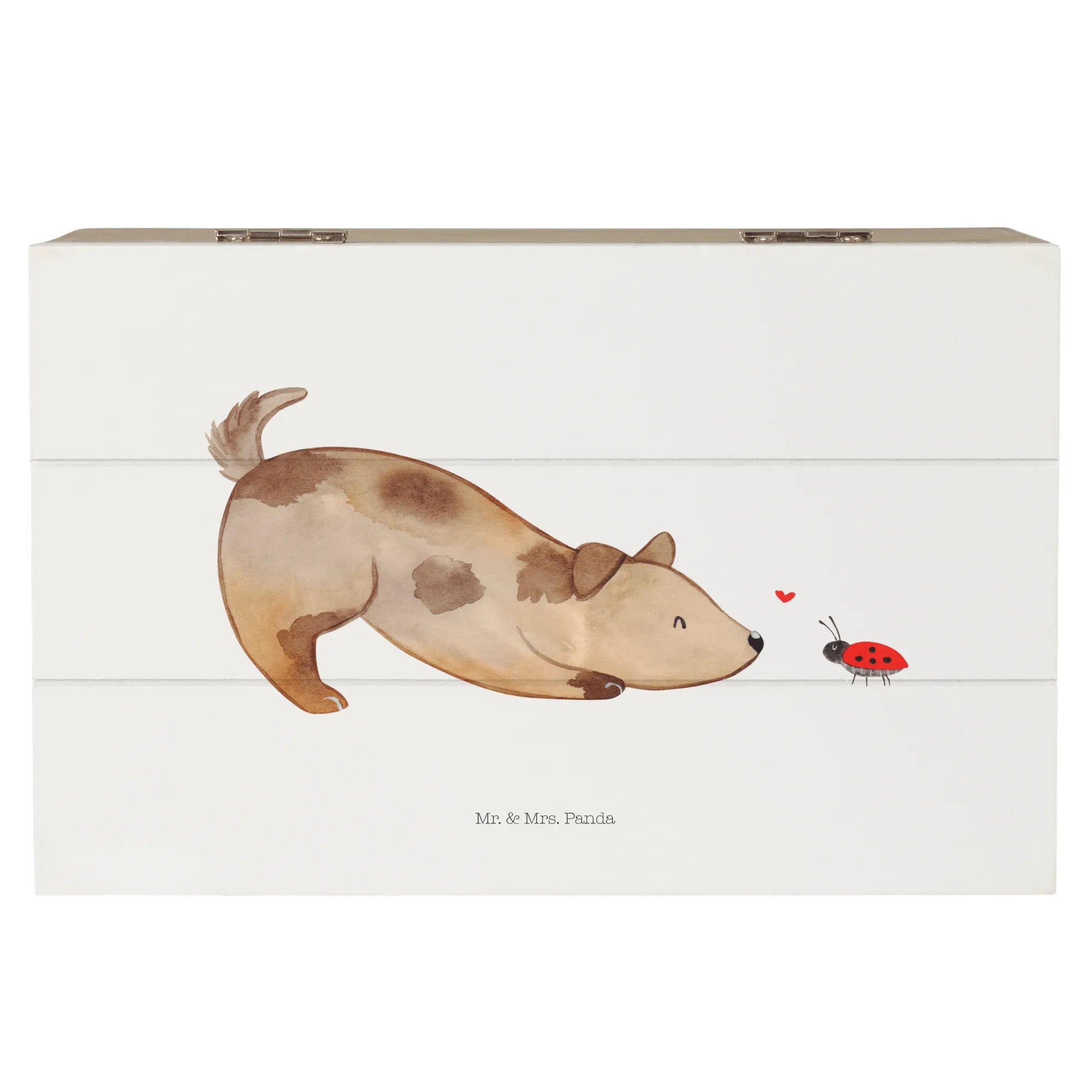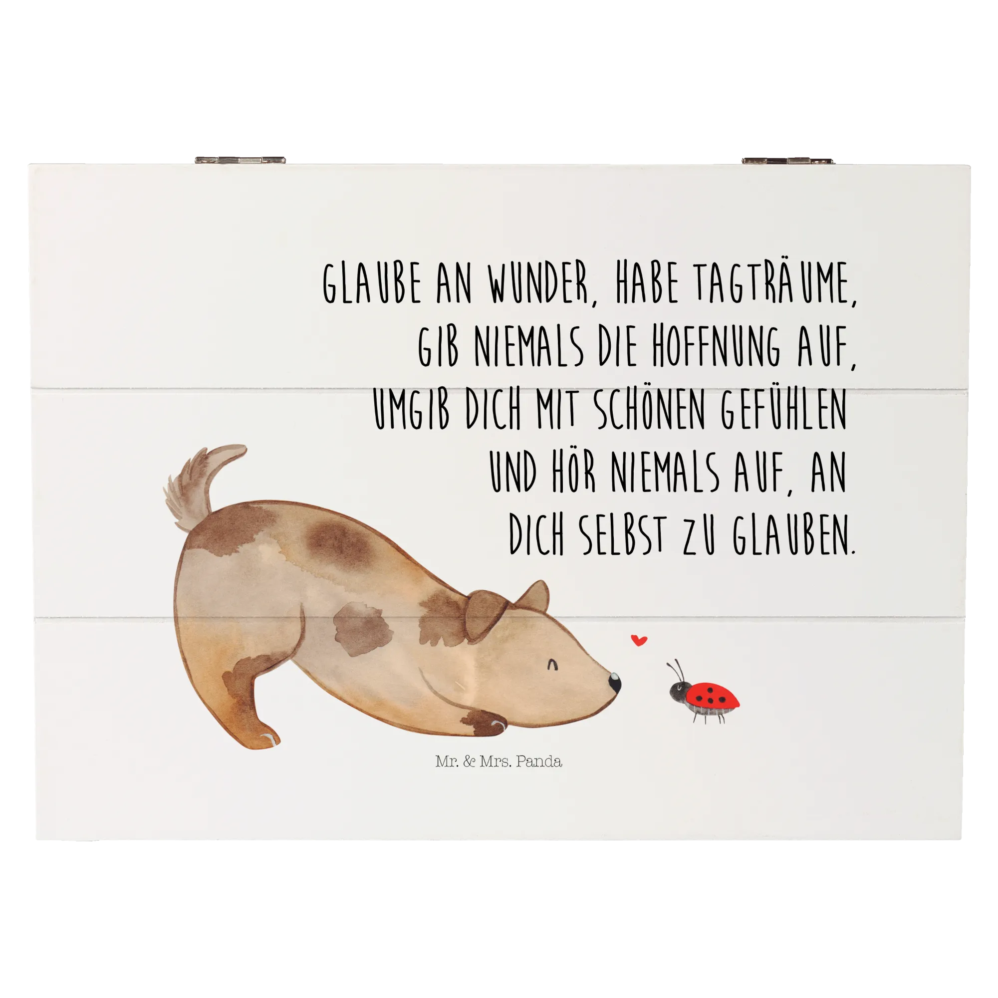 Skrzynia drewniana pies biedronka - 22 x 15 cm - z napisem - Biały