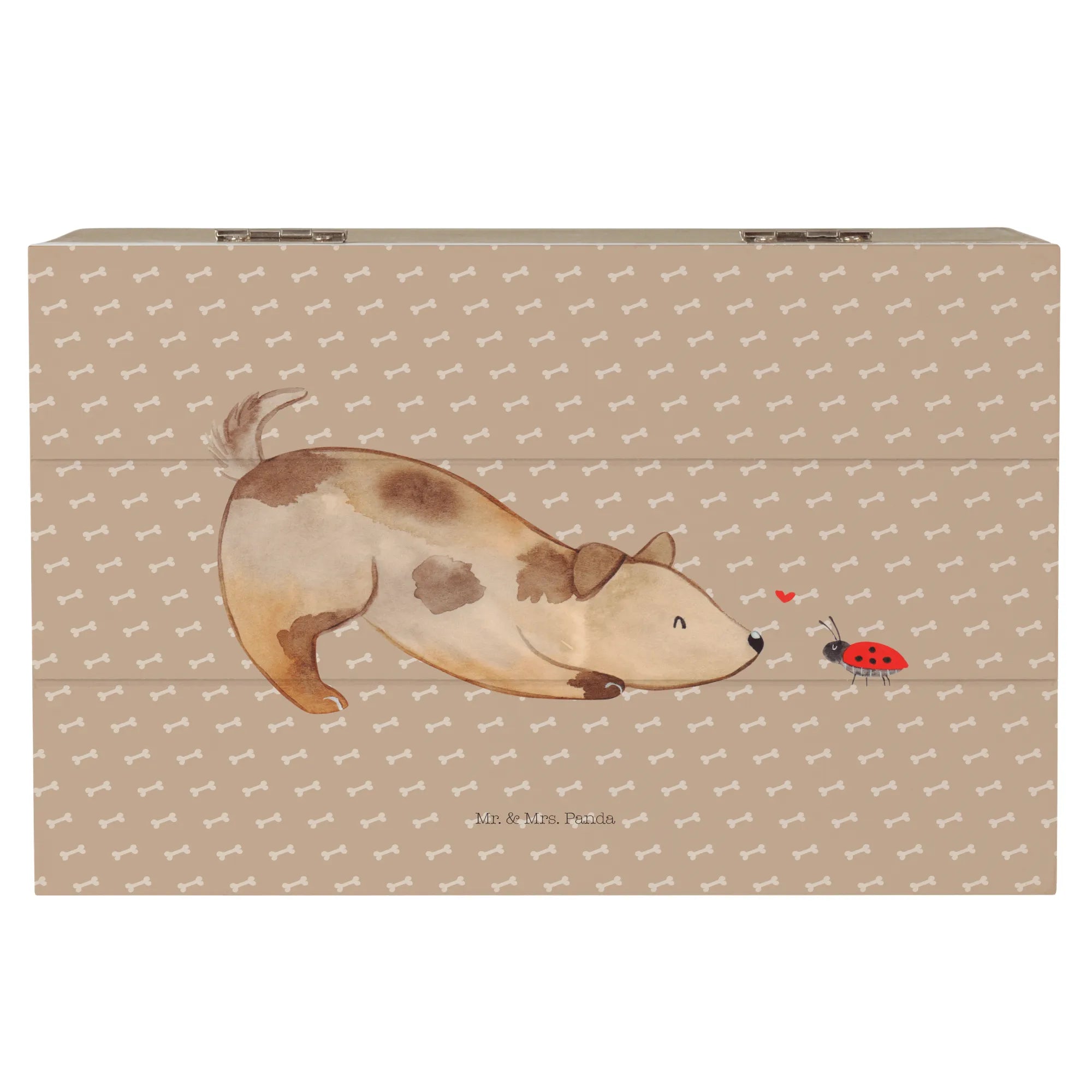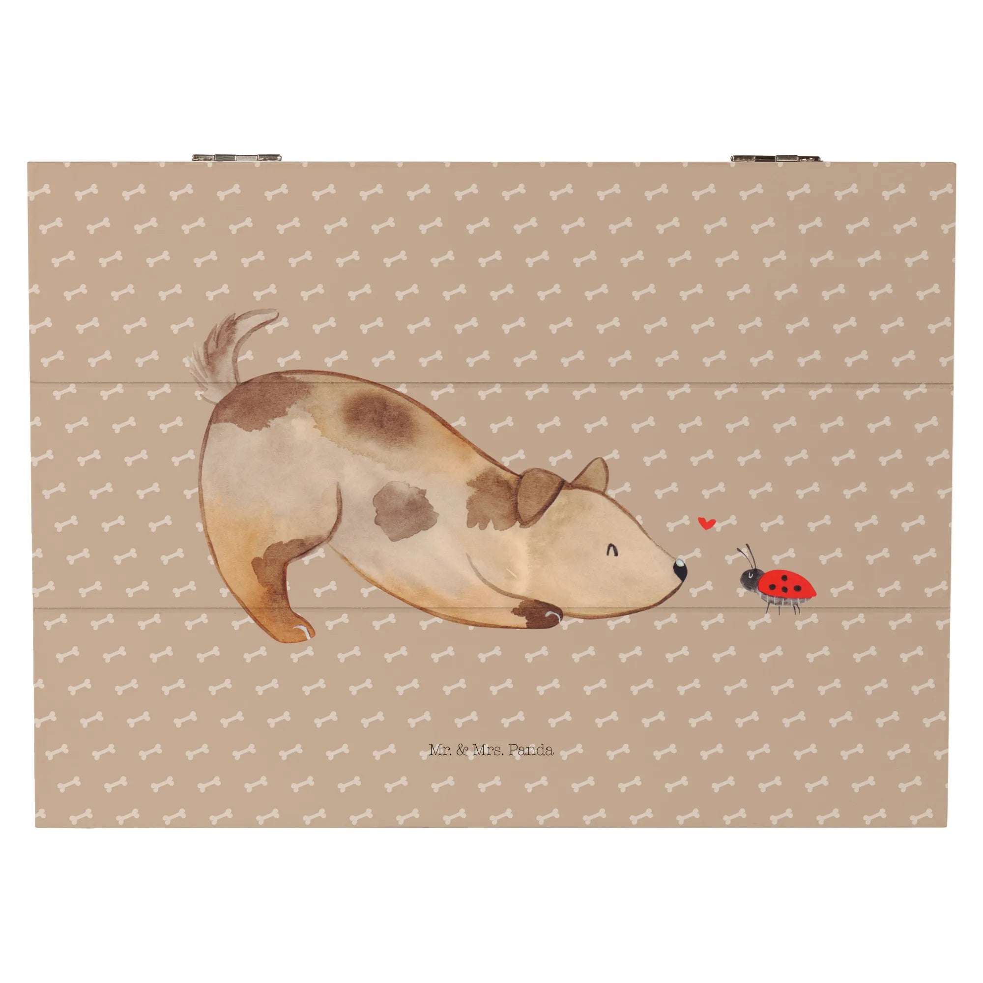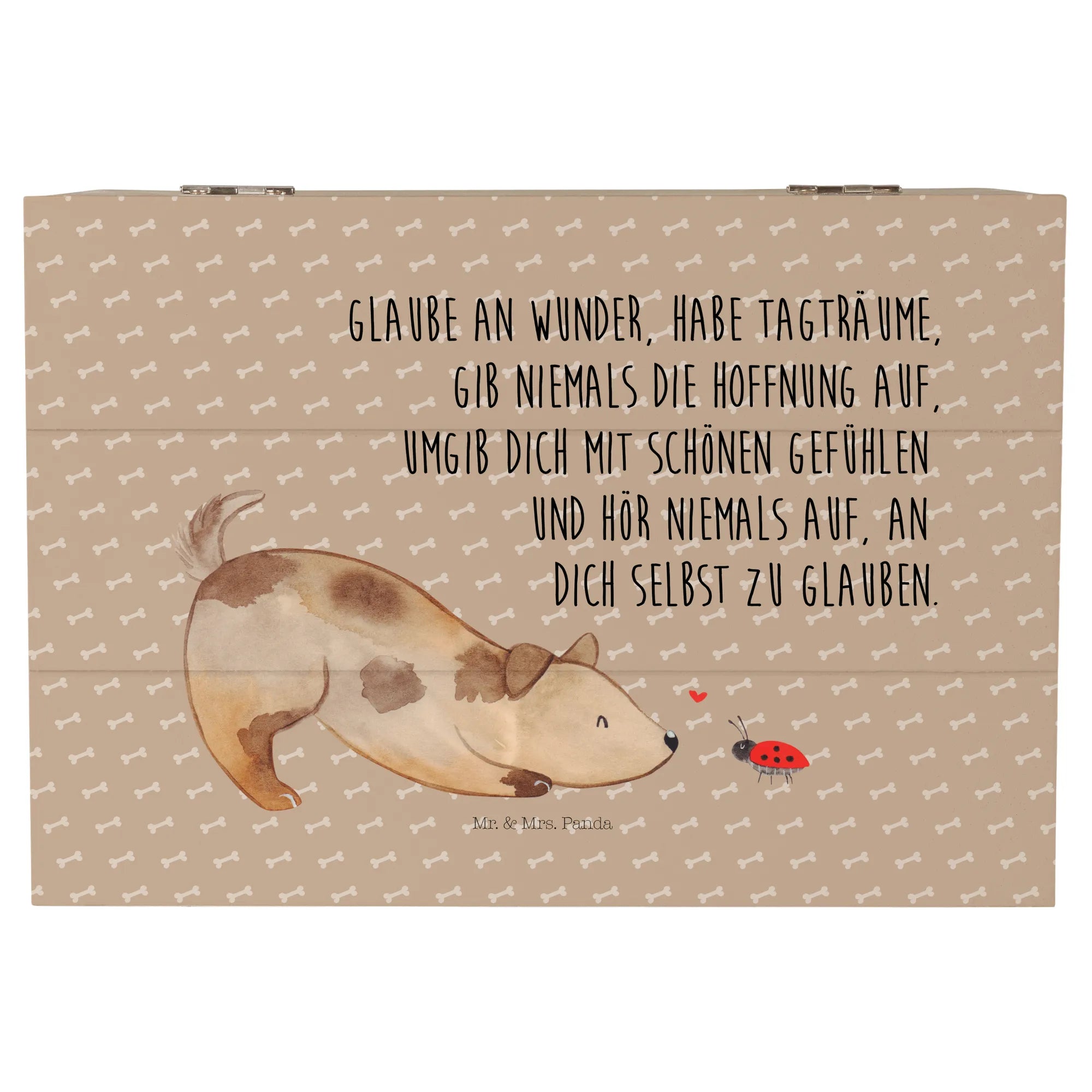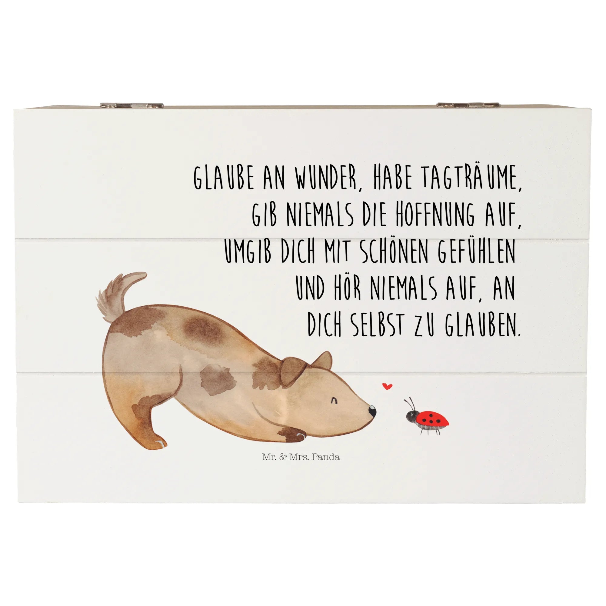 Skrzynia drewniana pies biedronka - 22 x 15 cm - z napisem - Biały