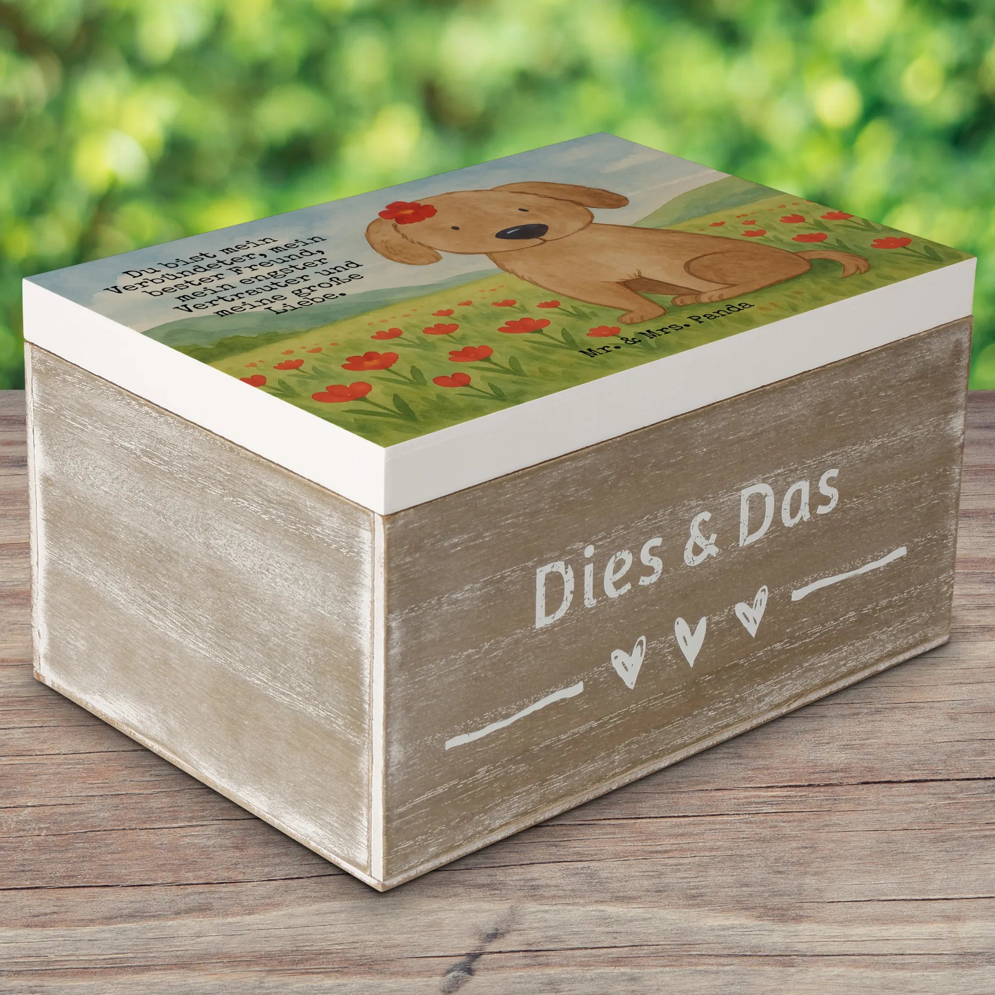 Skrzynia drewniana pies Dama Design - 22 x 15 cm - z napisem