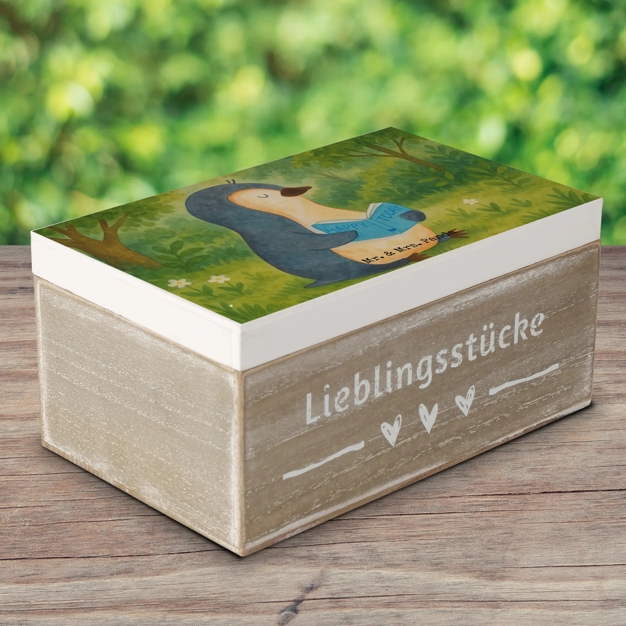 Skrzynia drewniana pingwin książka Design - 22 x 15 cm - z napisem