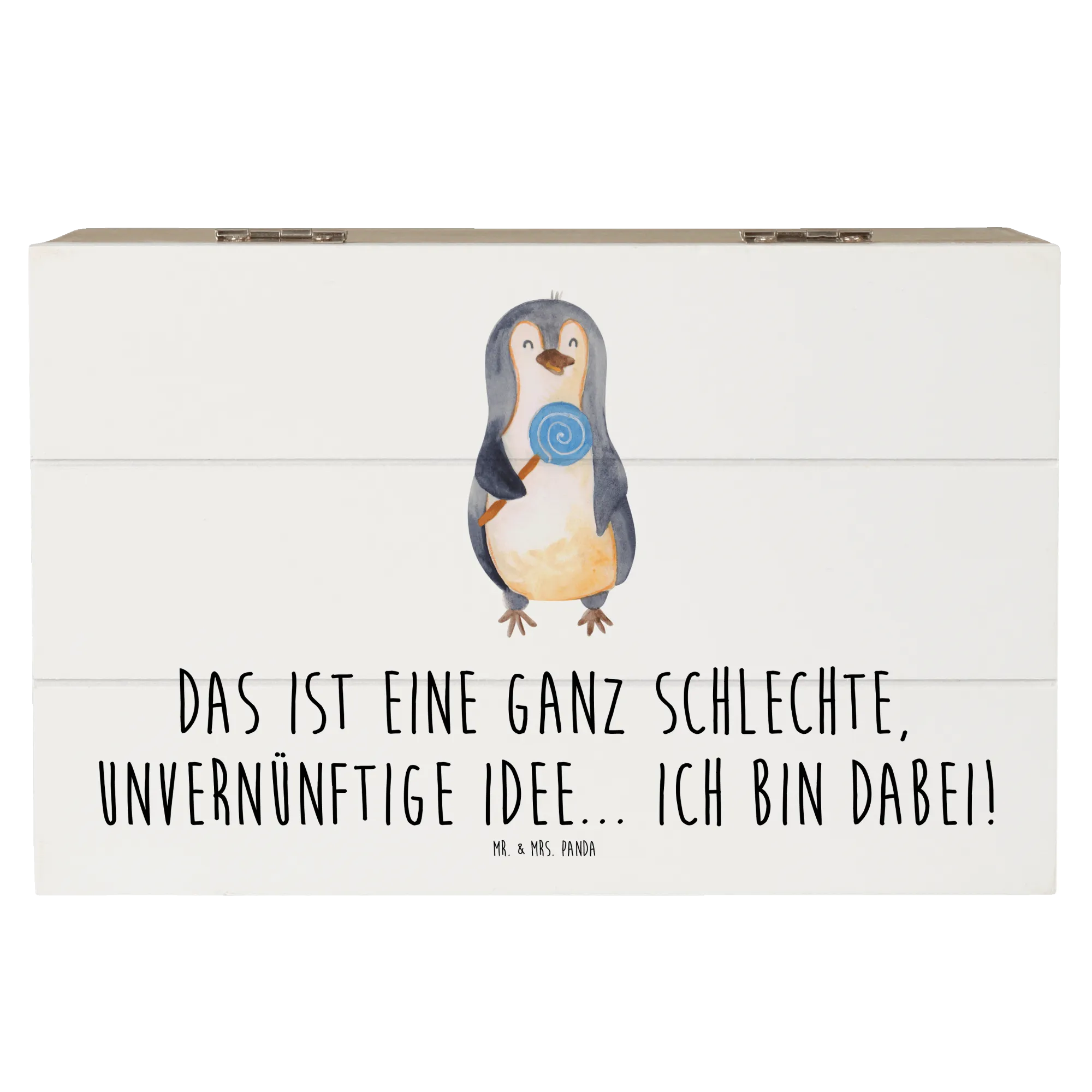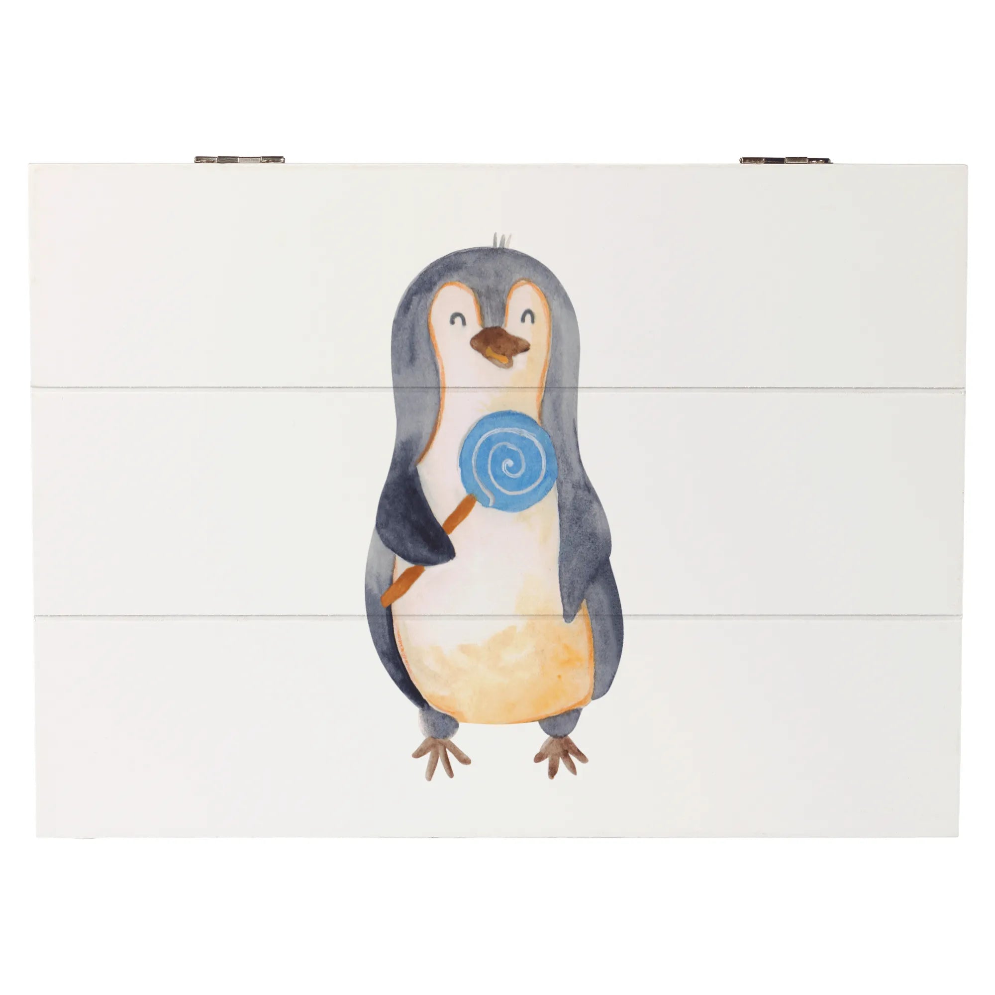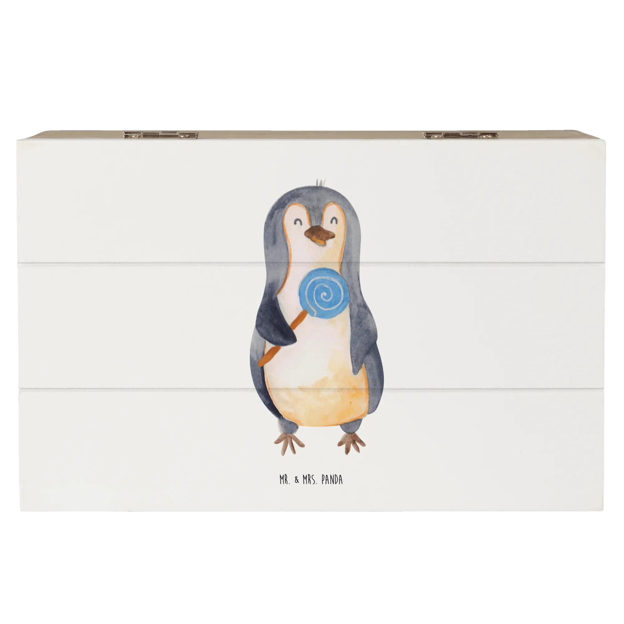 Skrzynia drewniana pingwin lizak - 22 x 15 cm - z napisem - Biały