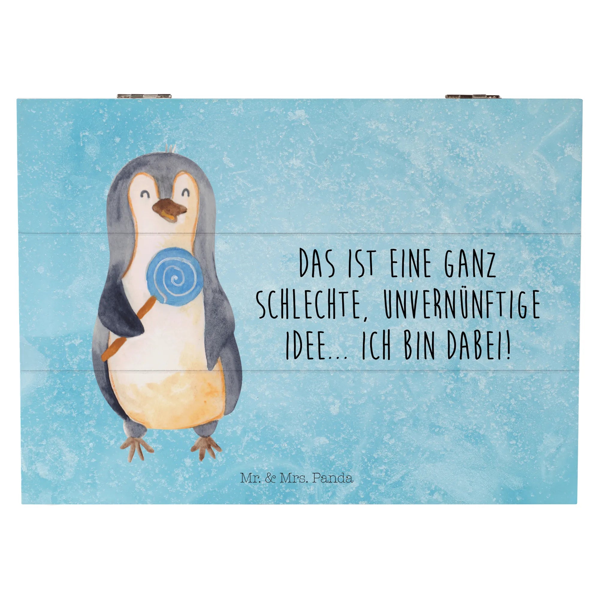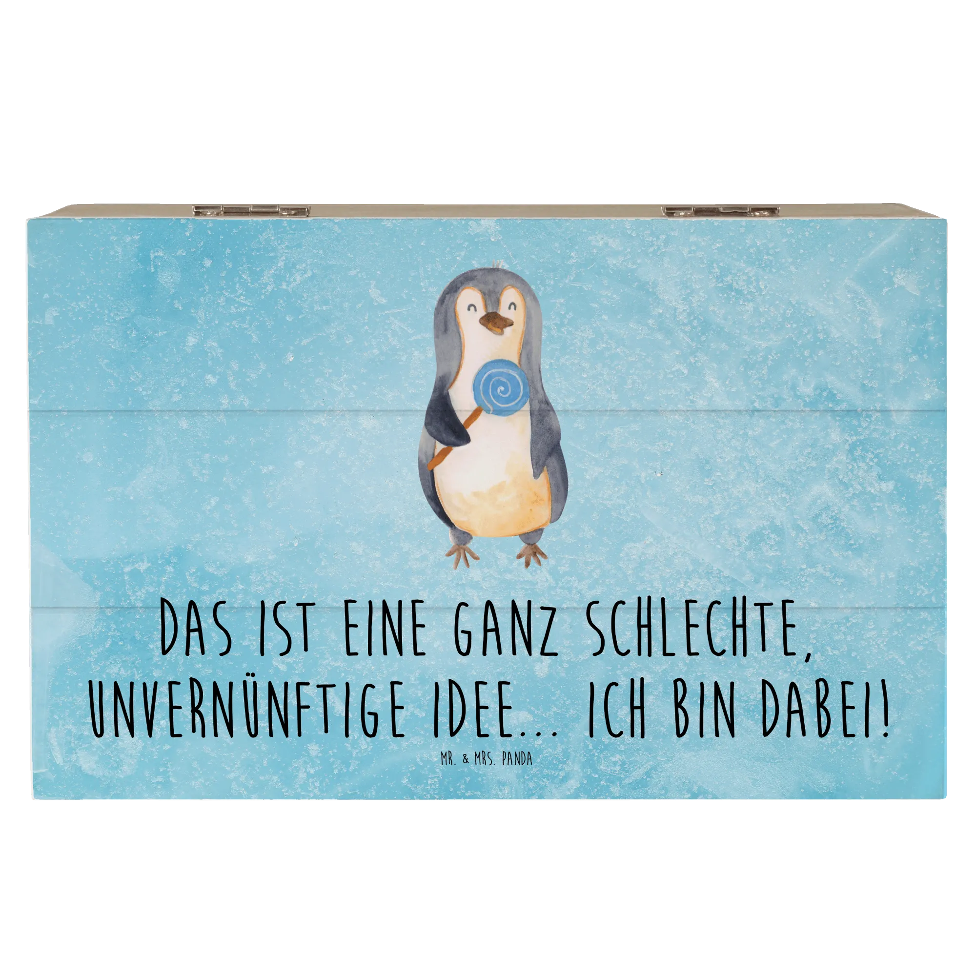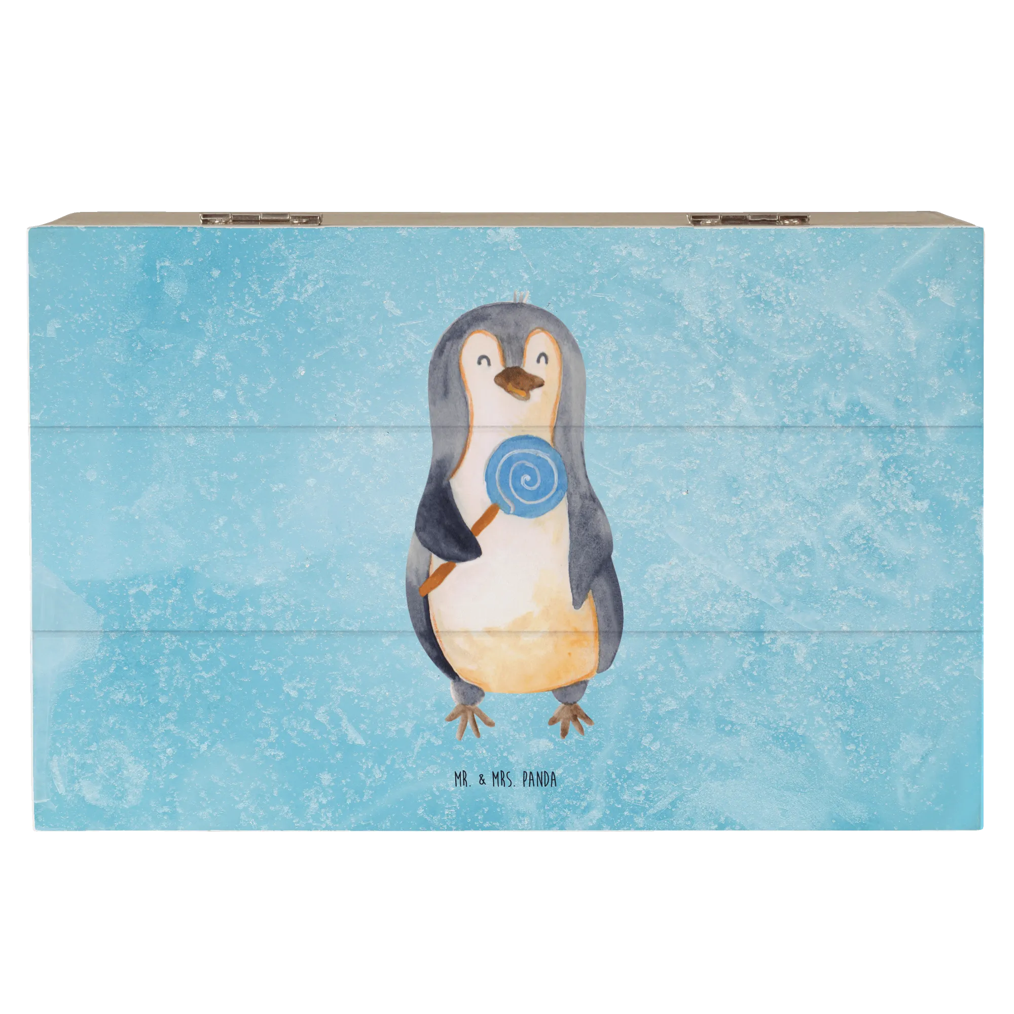 Skrzynia drewniana pingwin lizak - 22 x 15 cm - z napisem - Biały
