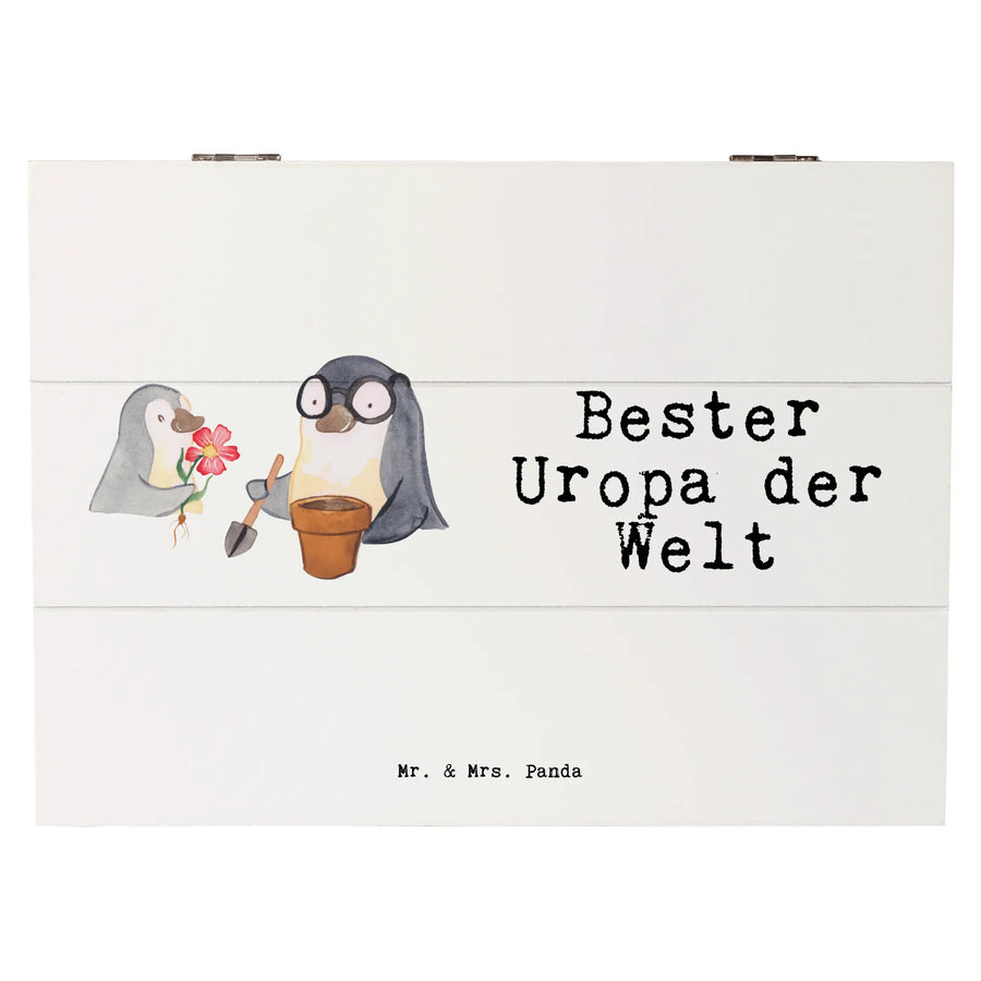 Skrzynia drewniana pingwin Najlepszy pradziadek na świecie - 25 x 18 cm - biały