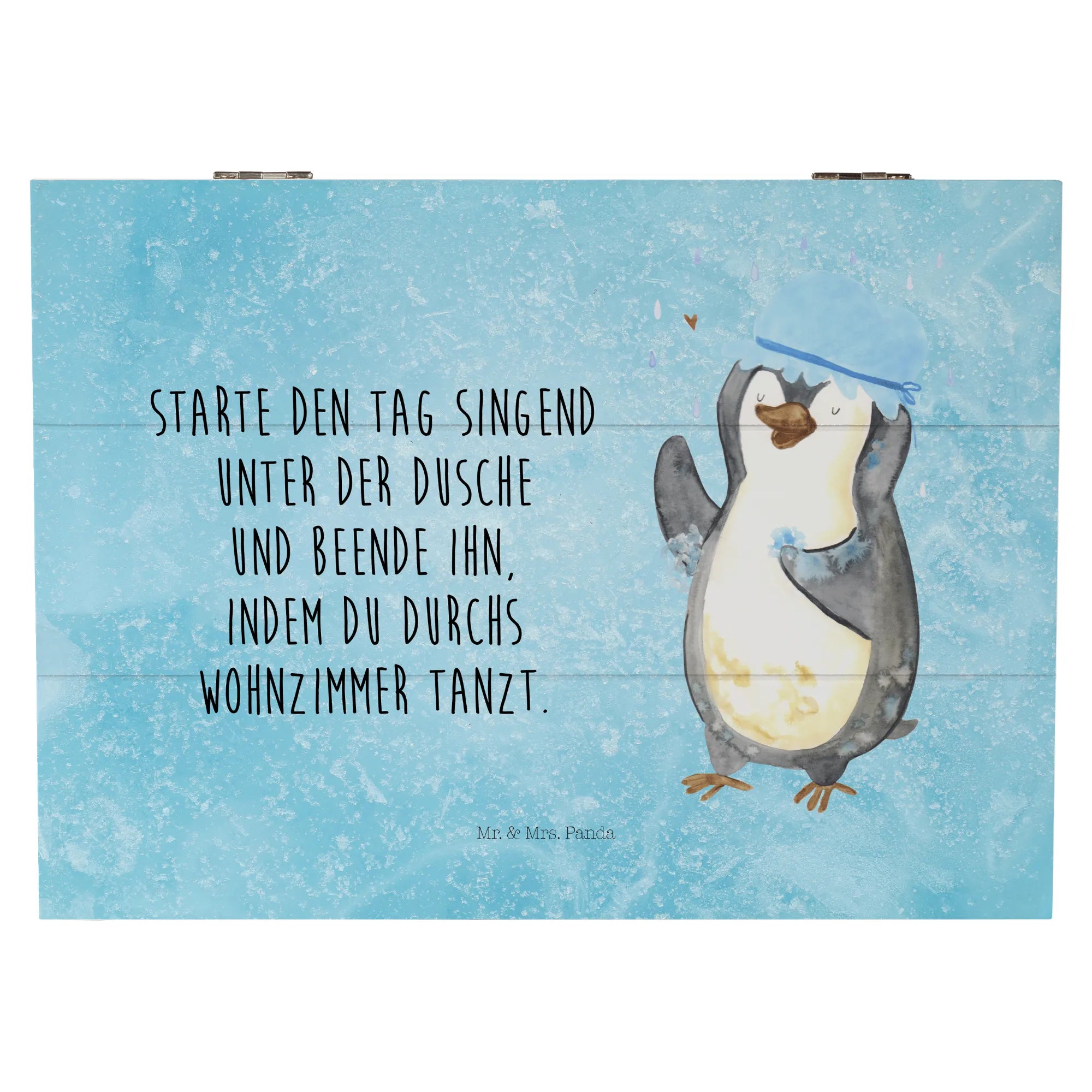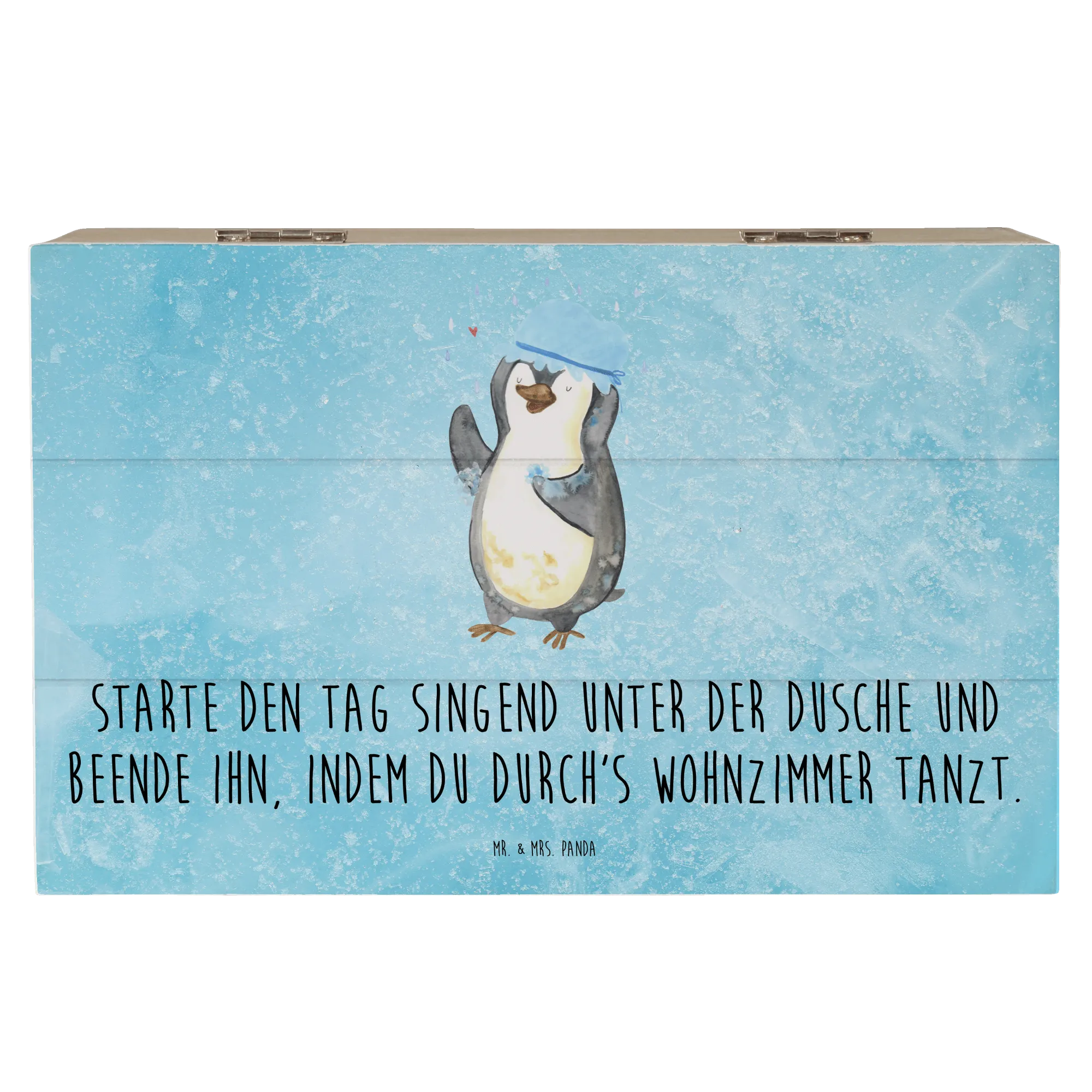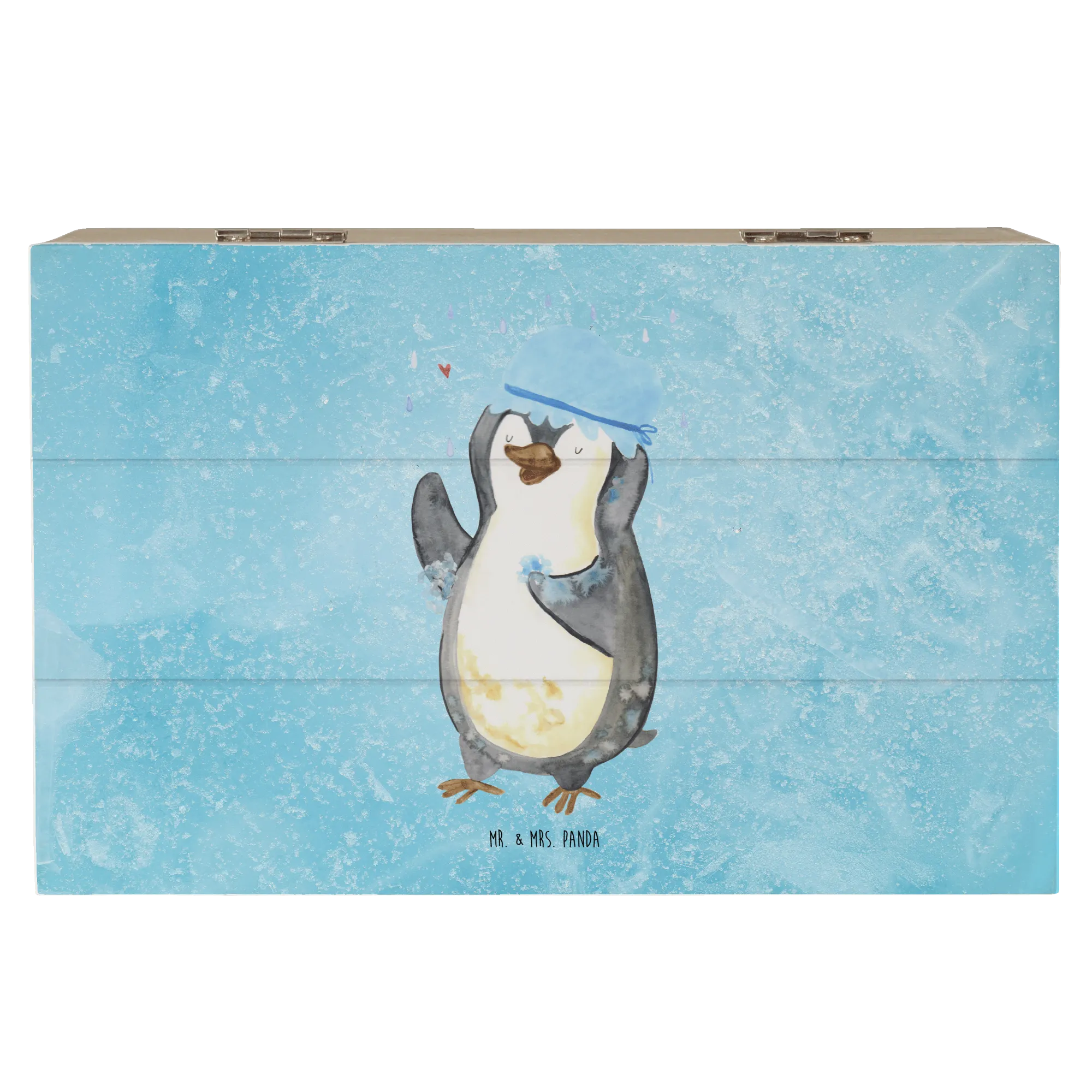 Skrzynia drewniana Pingwin Prysznic - 25 x 18 cm - z napisem - Eisblau