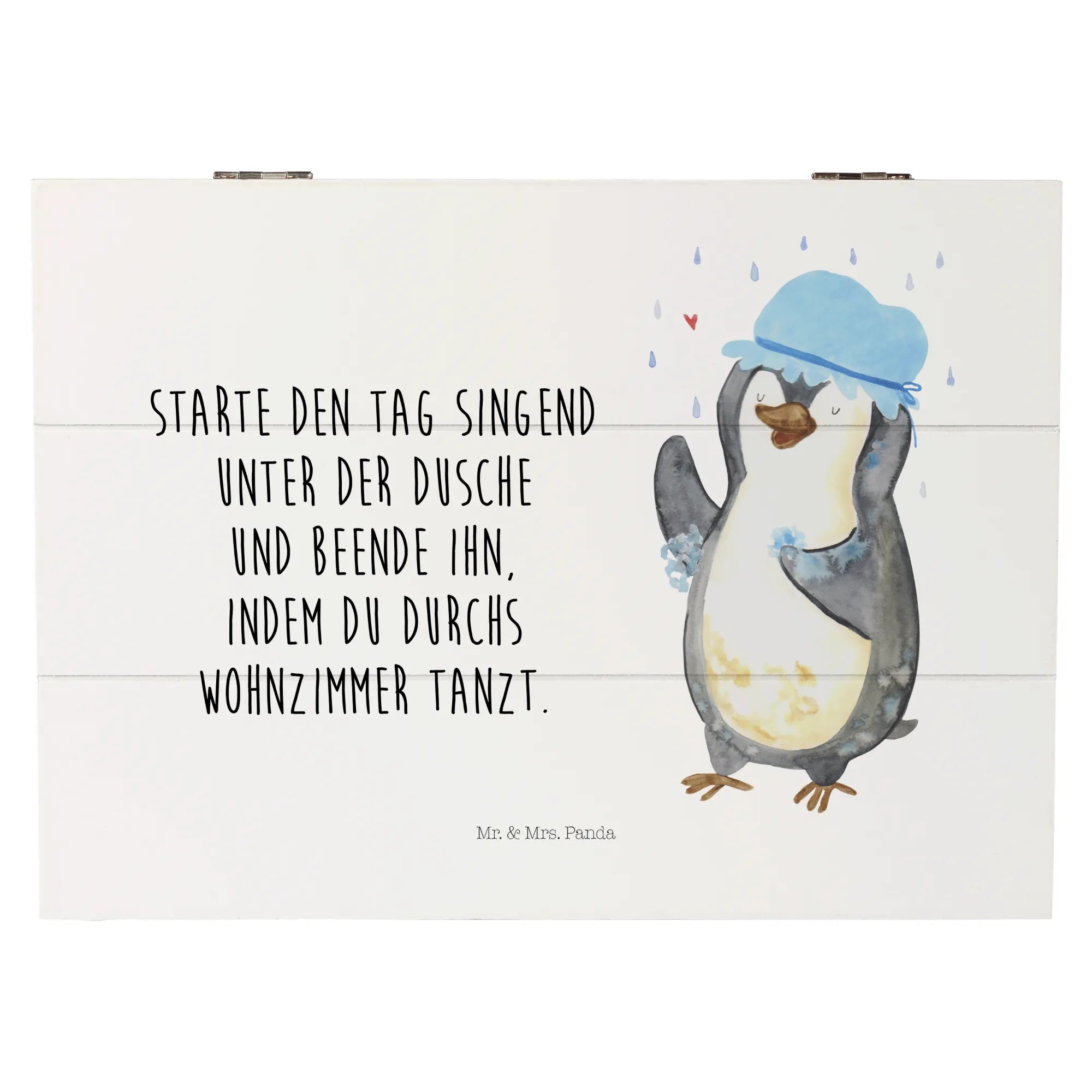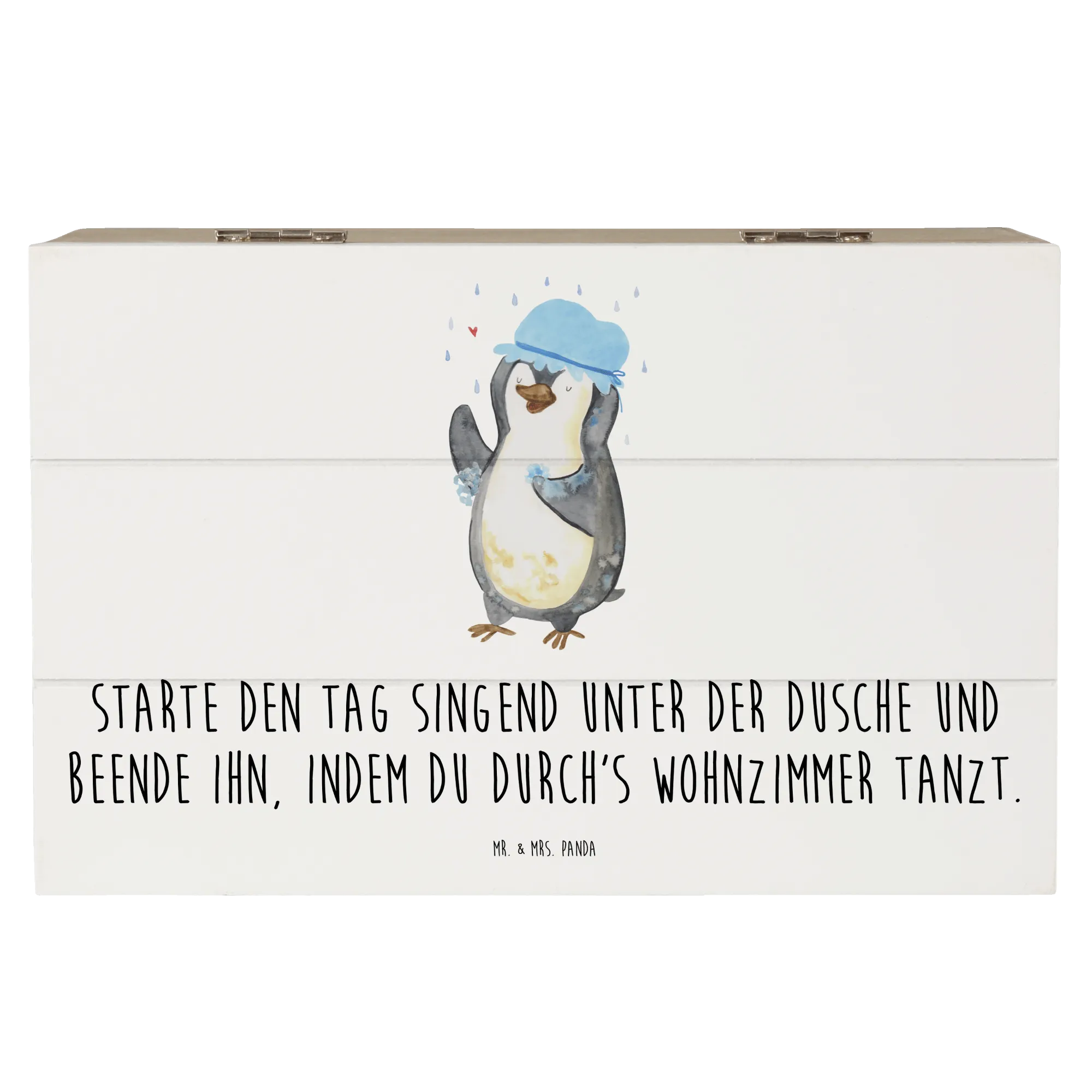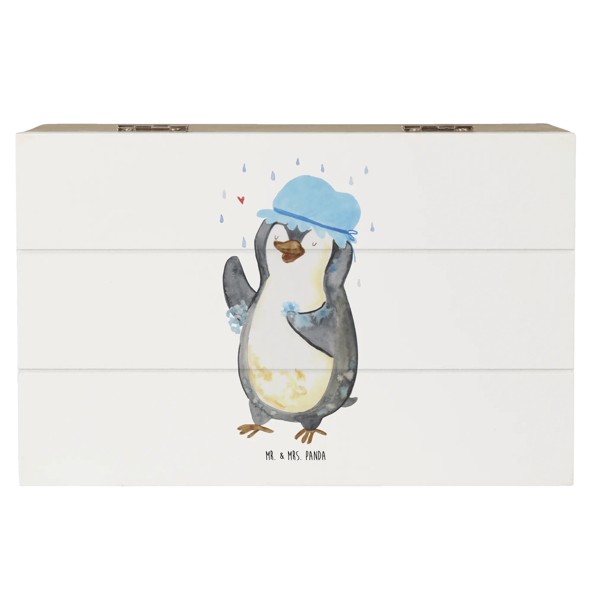Skrzynia drewniana Pingwin Prysznic - 25 x 18 cm - z napisem - Eisblau
