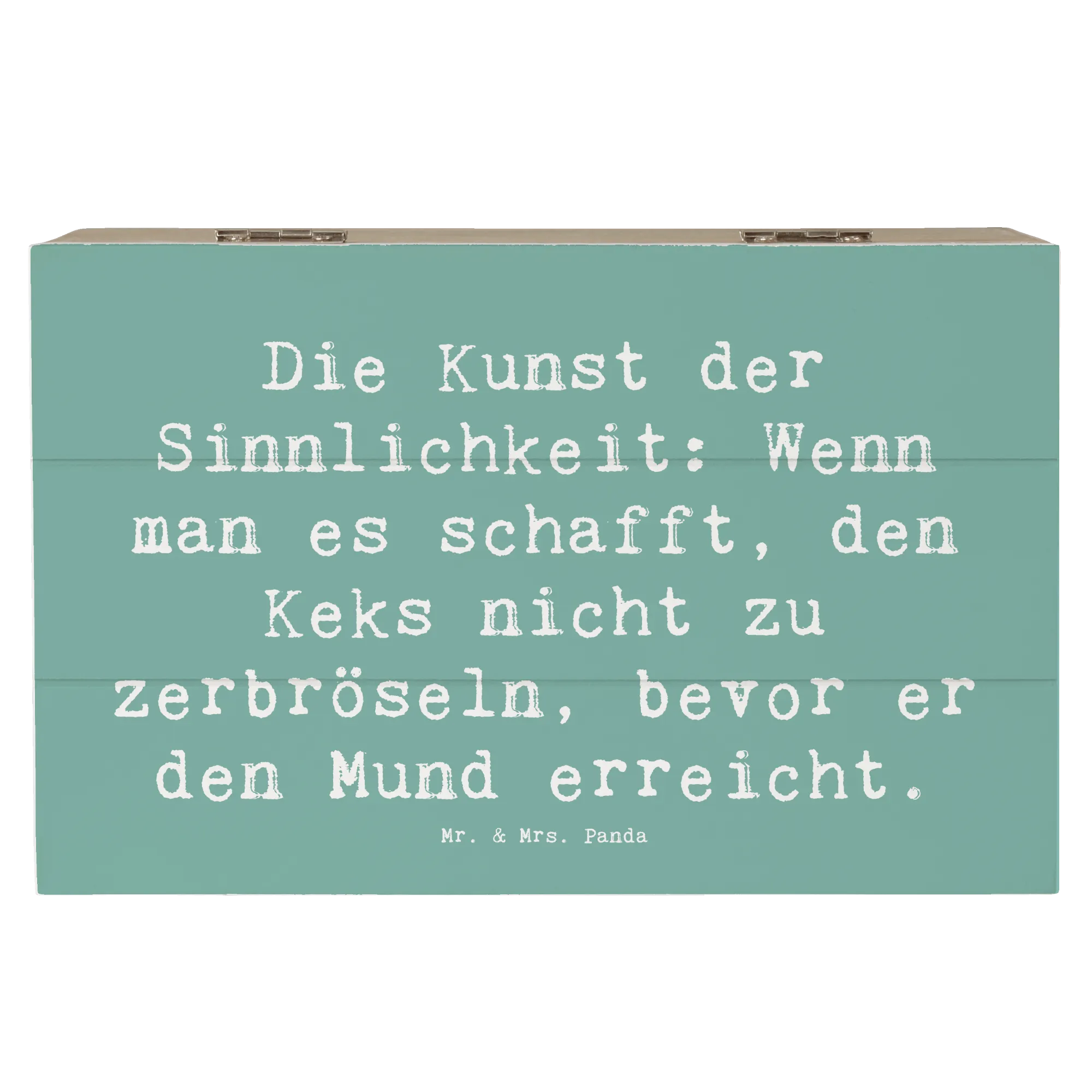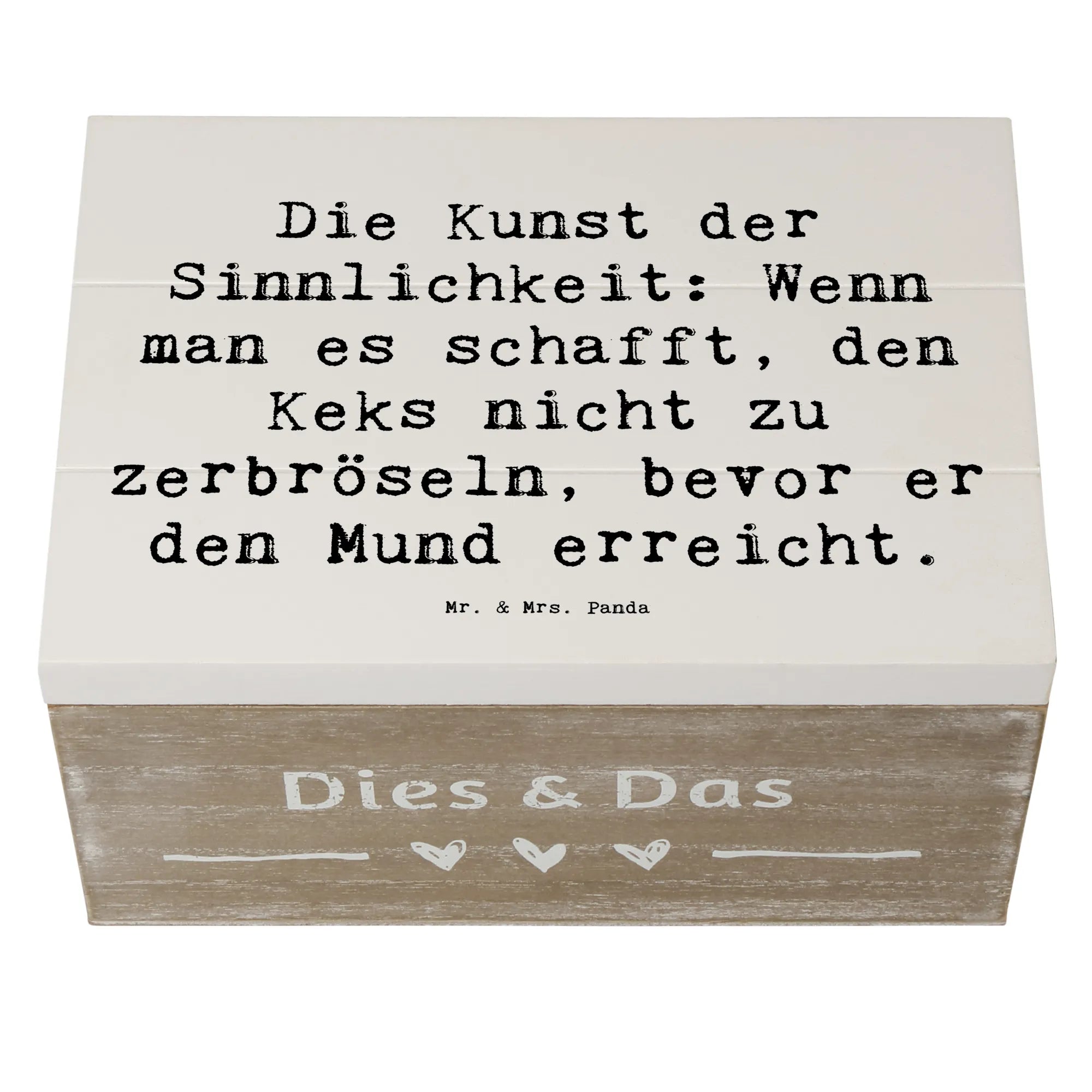 Skrzynia drewniana Przysłowie Die Kunst der Sinnlichkeit: Wenn man es schafft, den Keks nicht zu zerbröseln, bevor er den Mund erreicht. - 22 x 15 cm - biały