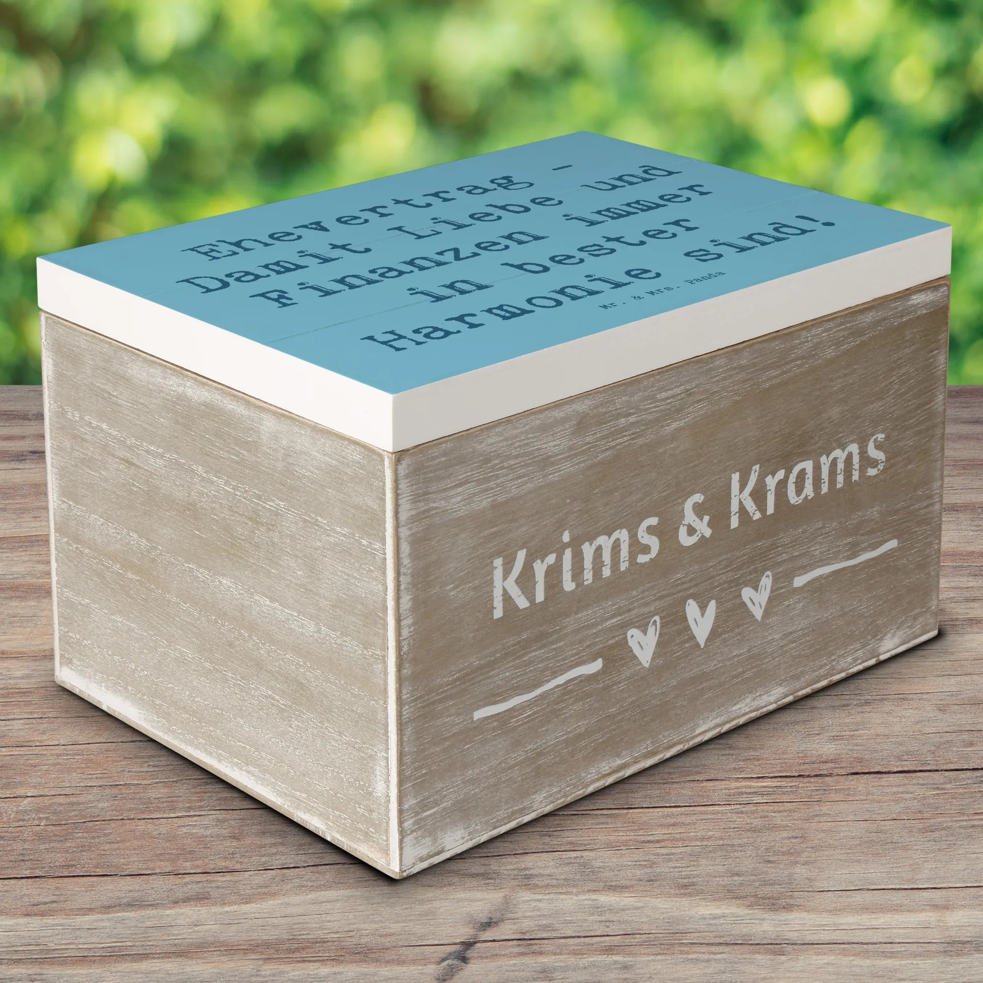 Skrzynia drewniana Przysłowie Ehevertrag - Damit Liebe und Finanzen immer in bester Harmonie sind! - 19 x 12 cm - biały