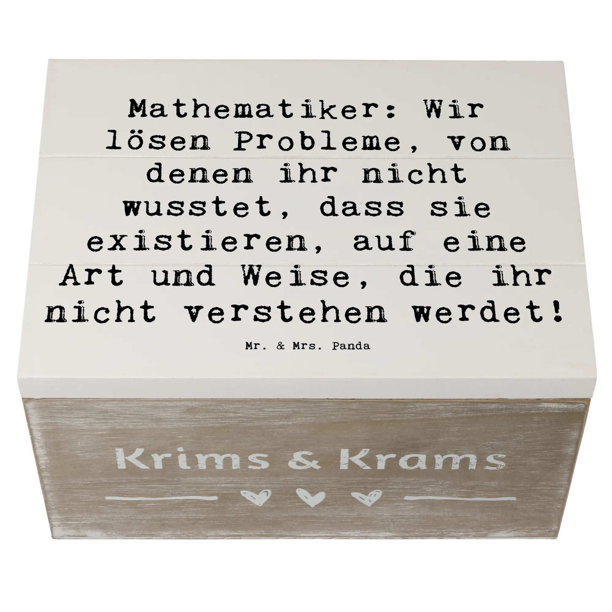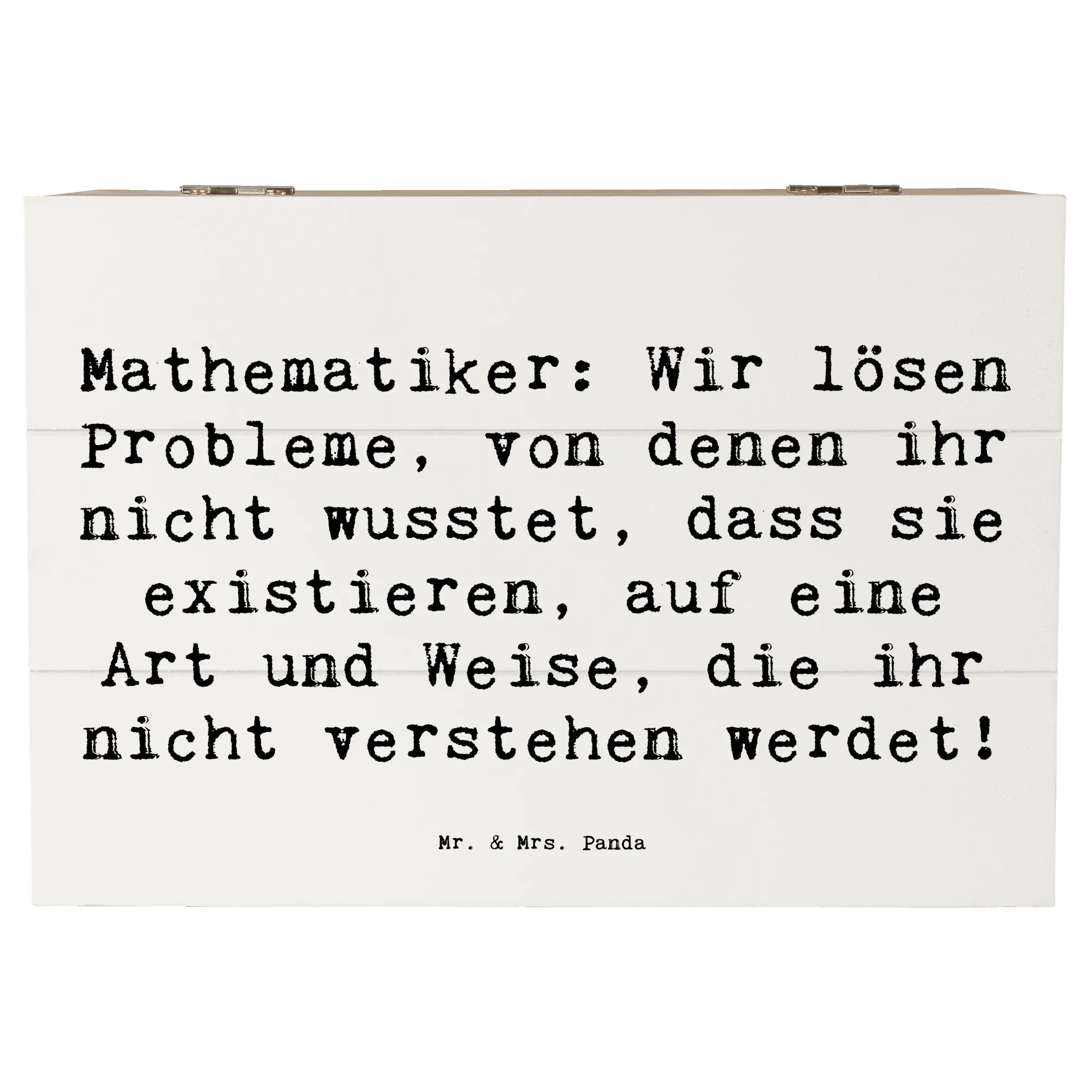 Skrzynia drewniana Przysłowie Mathematiker: Wir lösen Probleme, von denen ihr nicht wusstet, dass sie existieren, auf eine Art und Weise, die ihr nicht verstehen werdet! - 25 x 18 cm - biały
