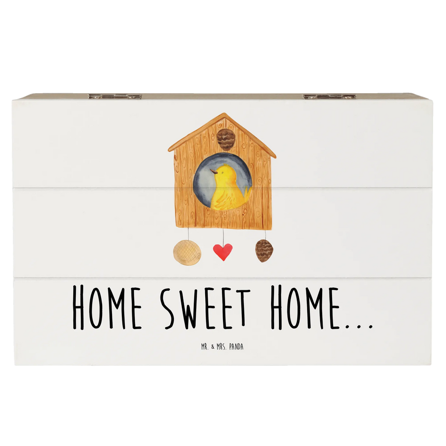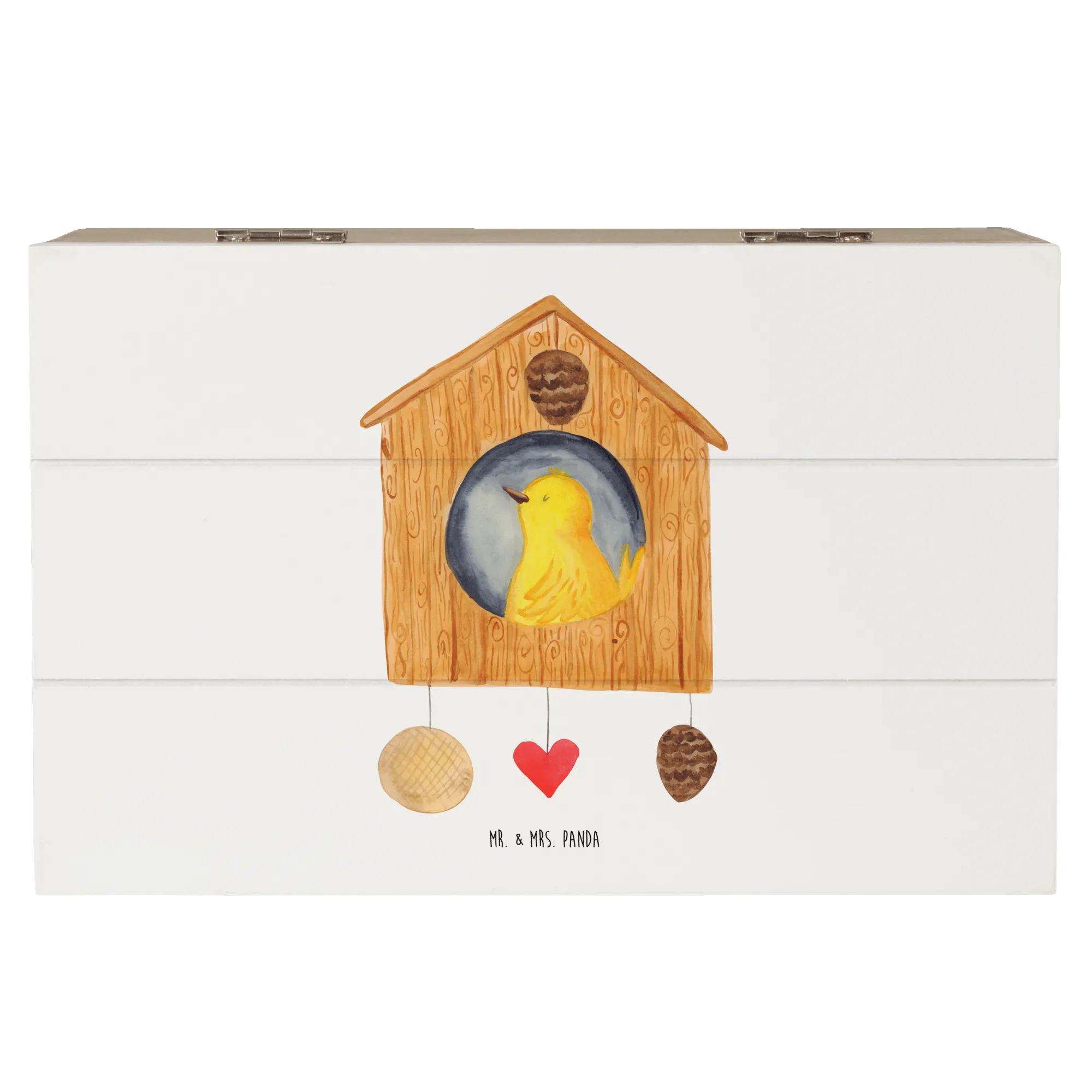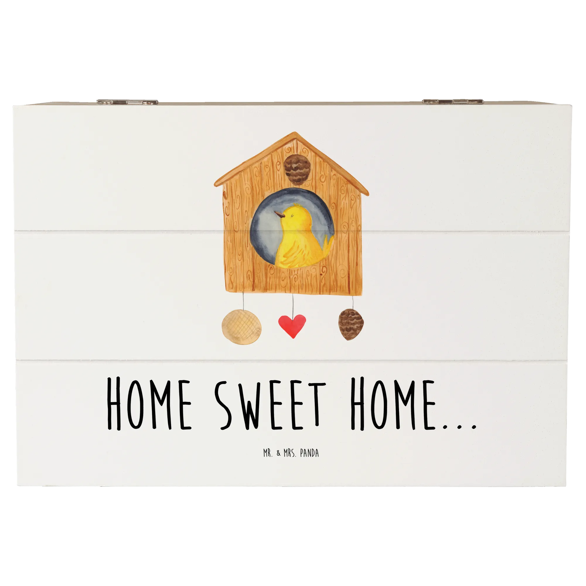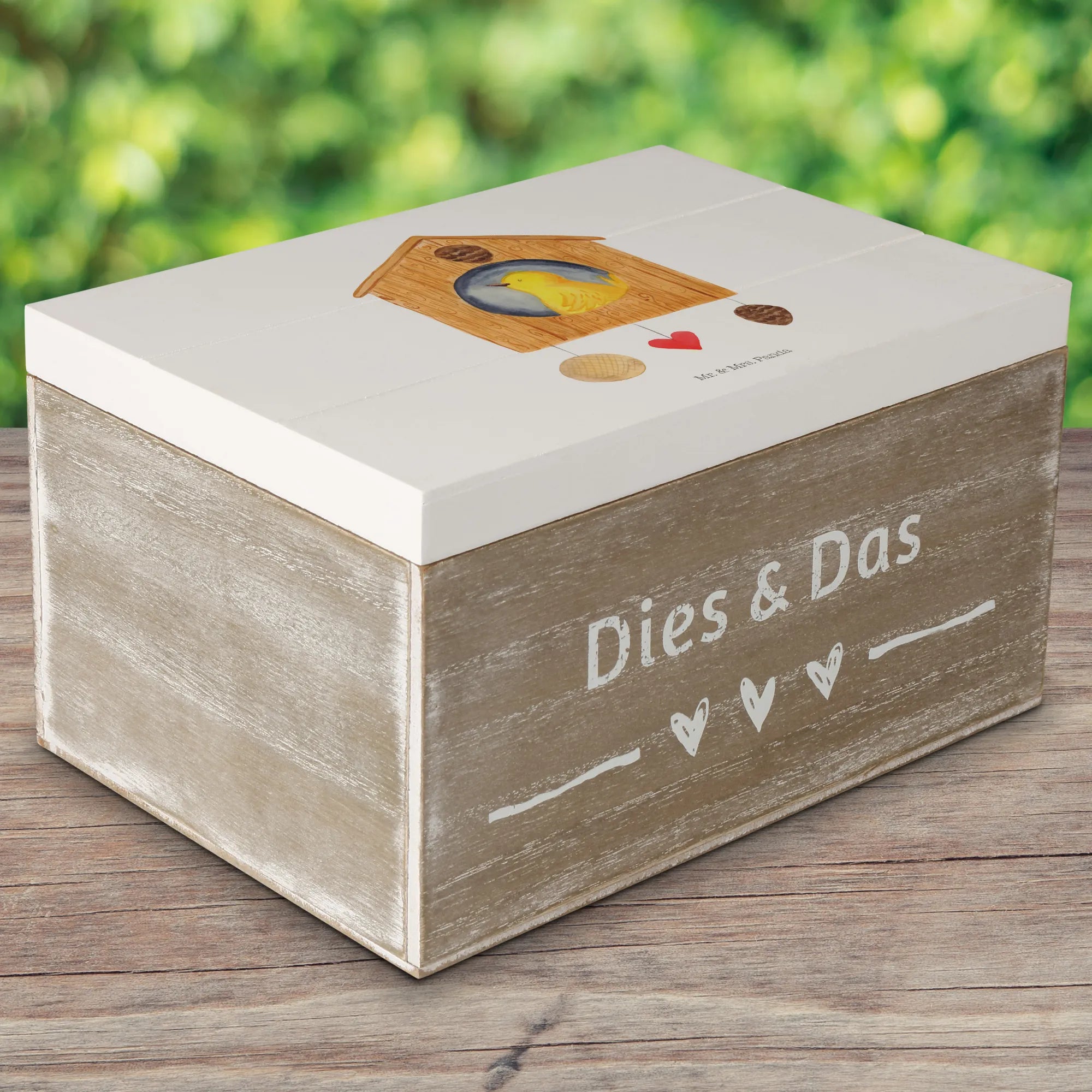 Skrzynia drewniana ptasi domek Strona główna - 19 x 12 cm - z napisem - biały