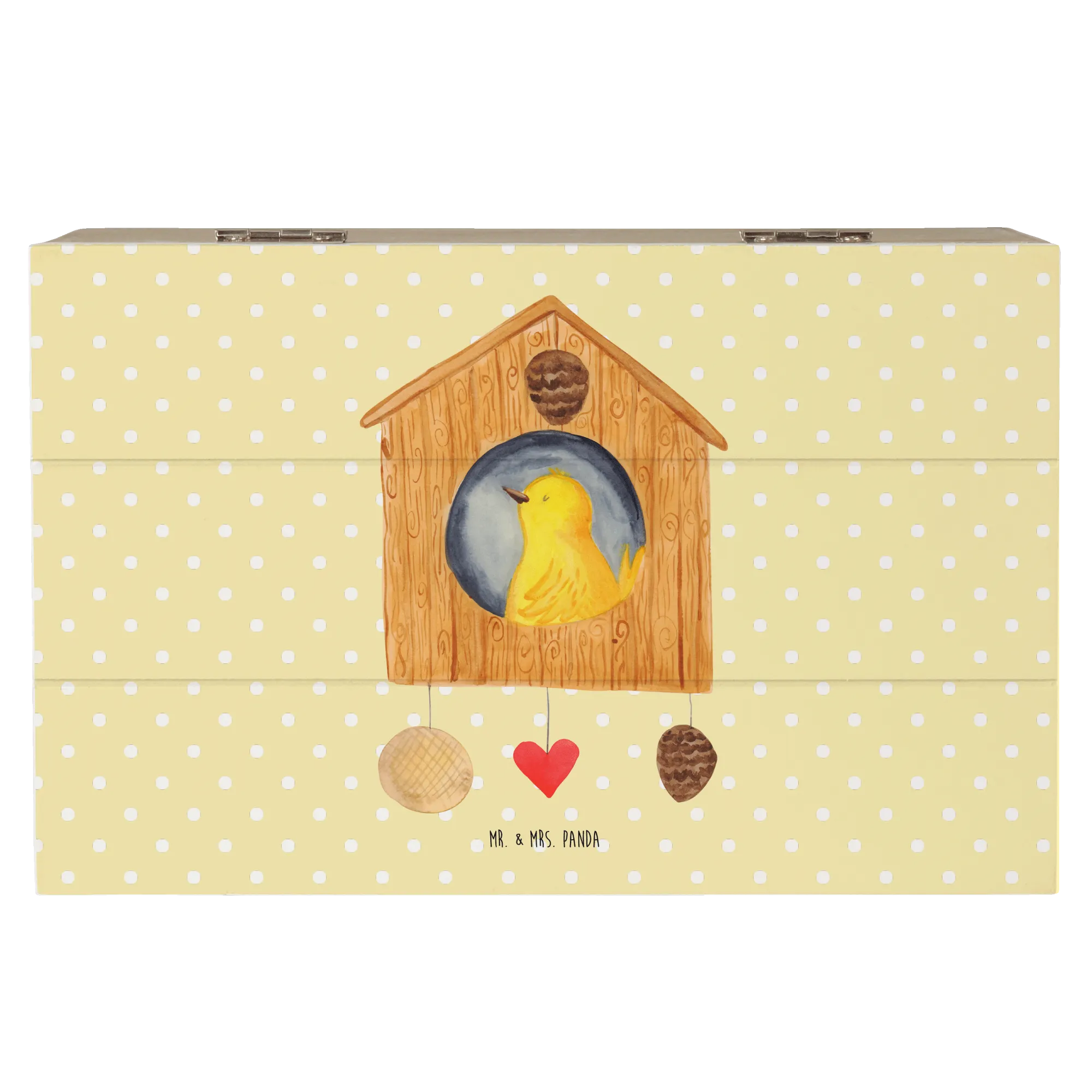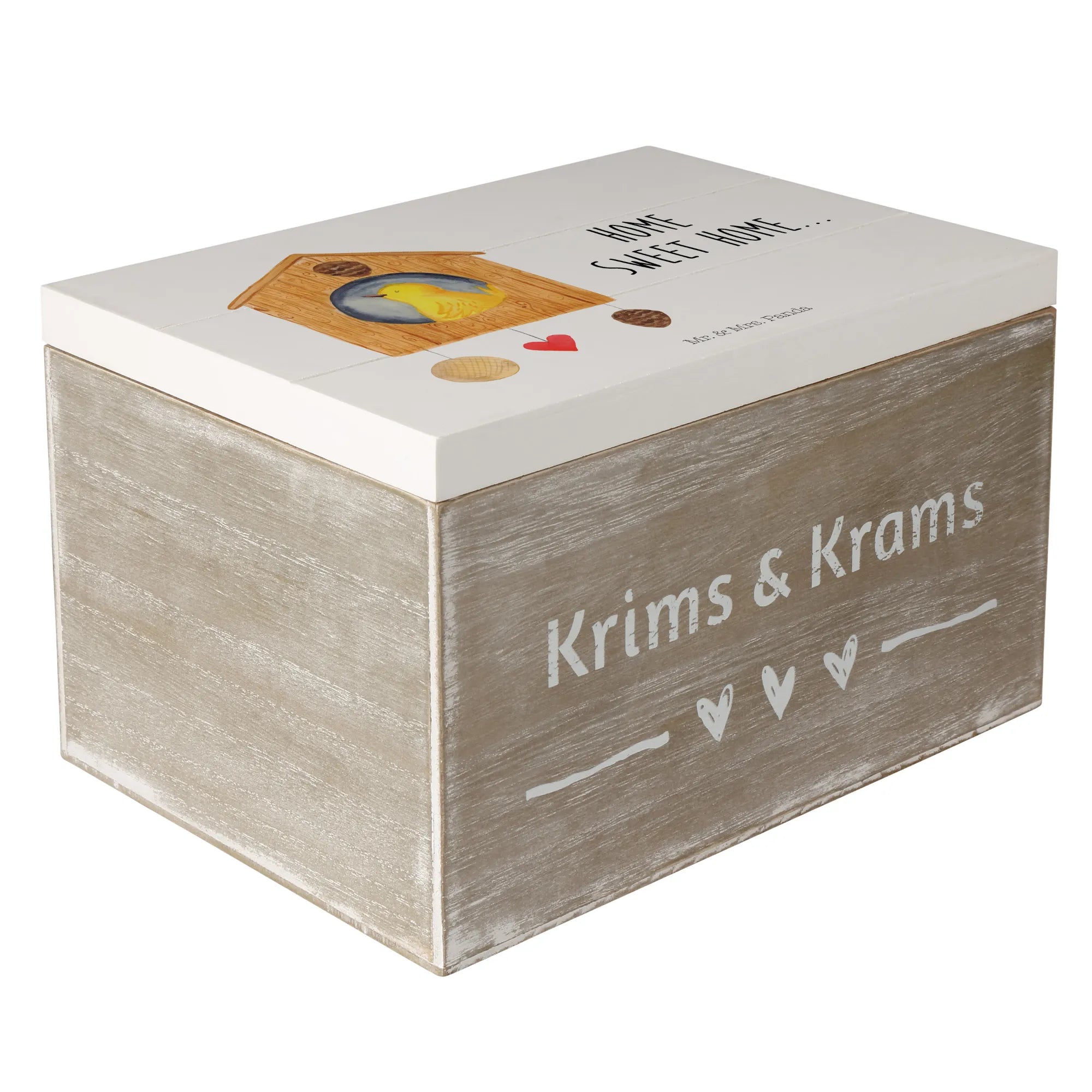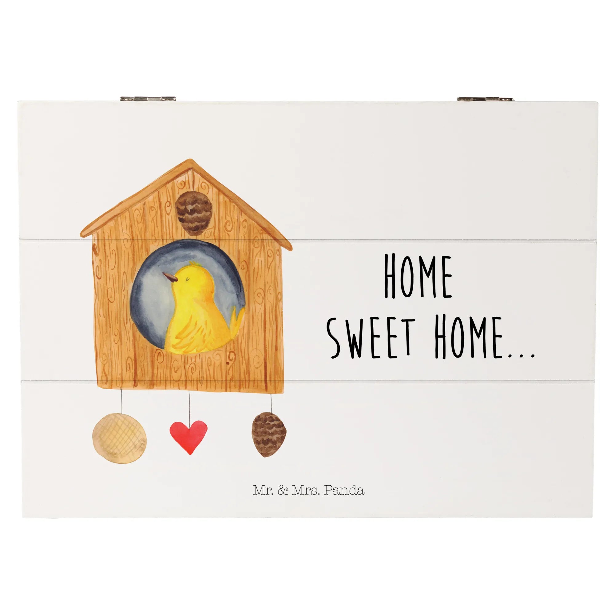 Skrzynia drewniana ptasi domek Strona główna - 19 x 12 cm - z napisem - biały