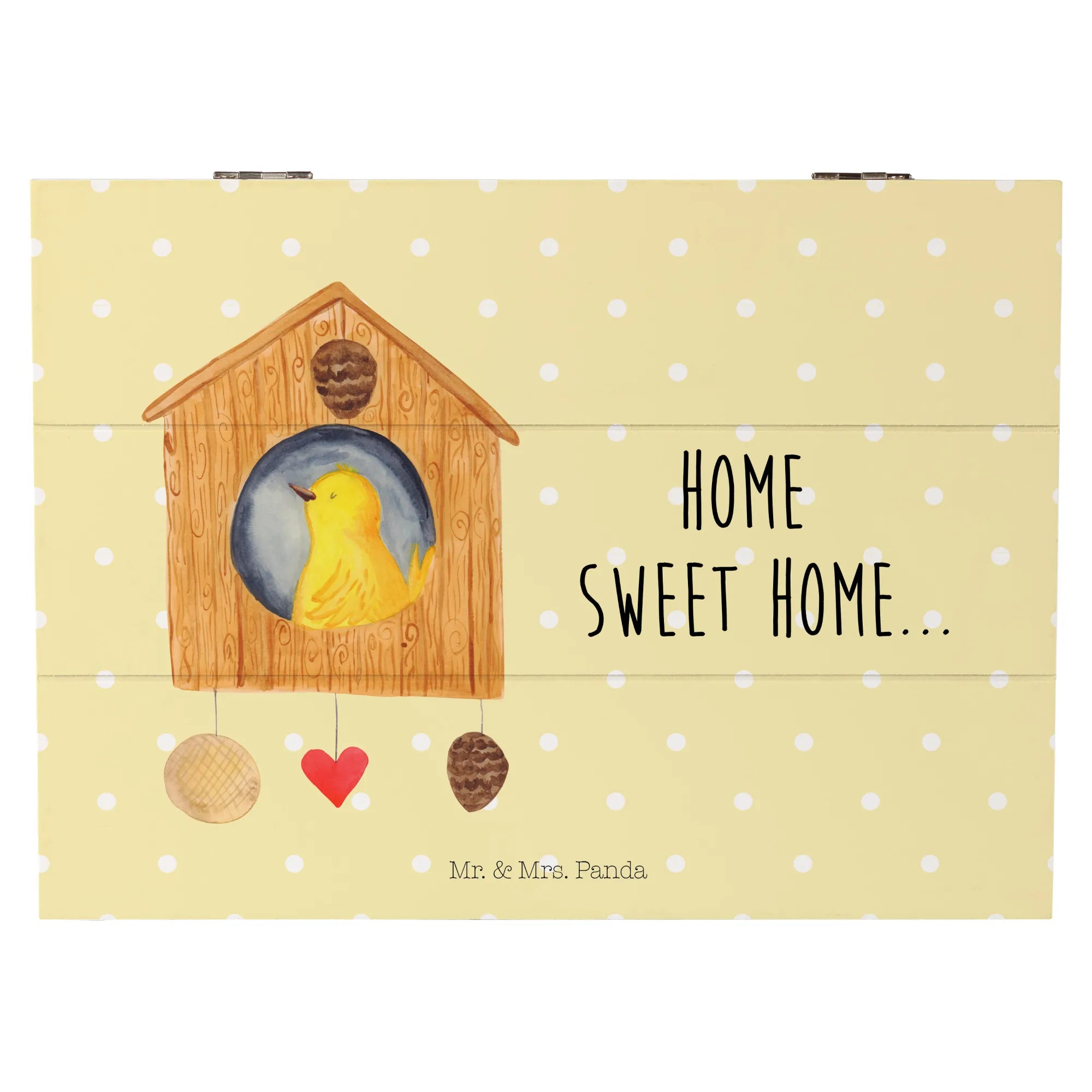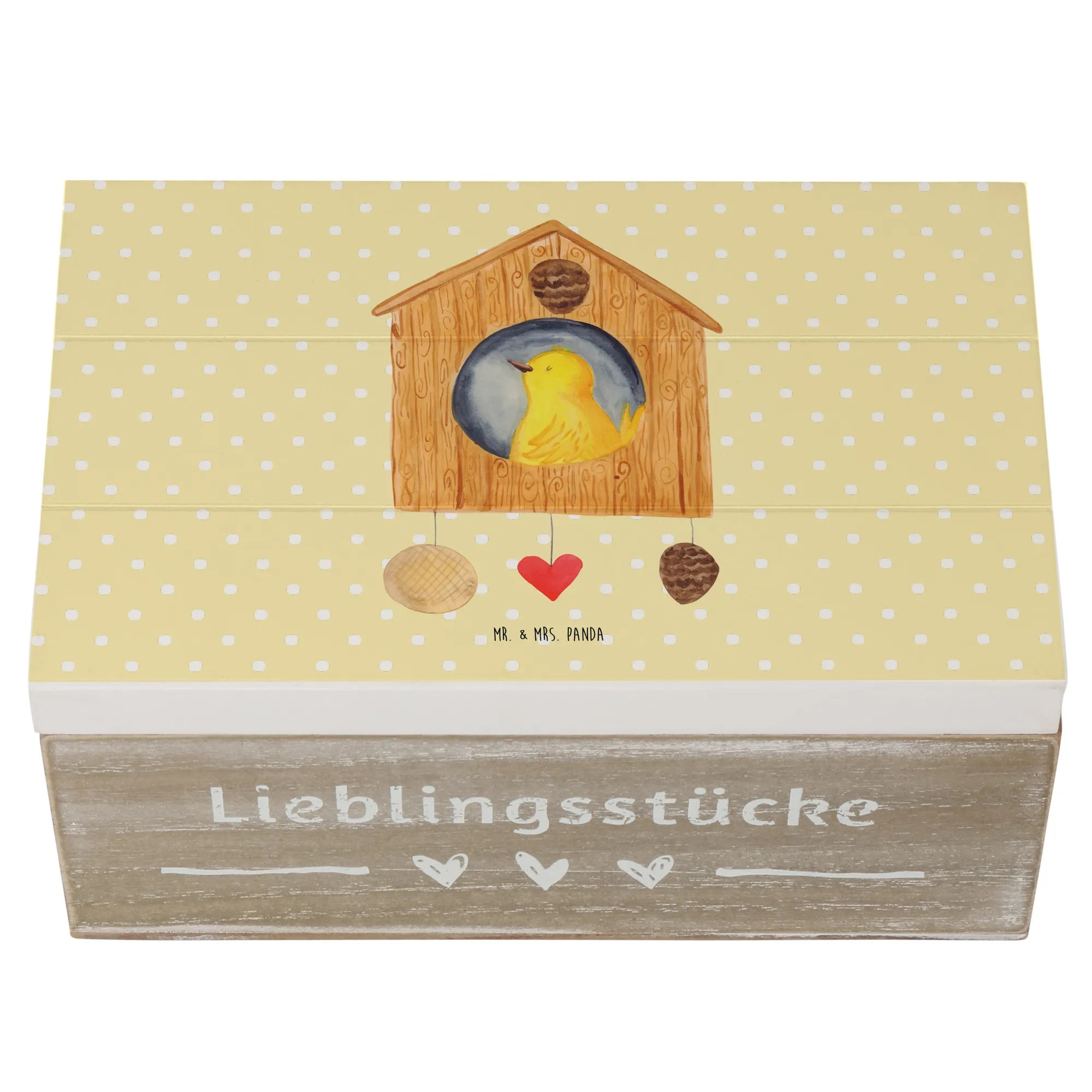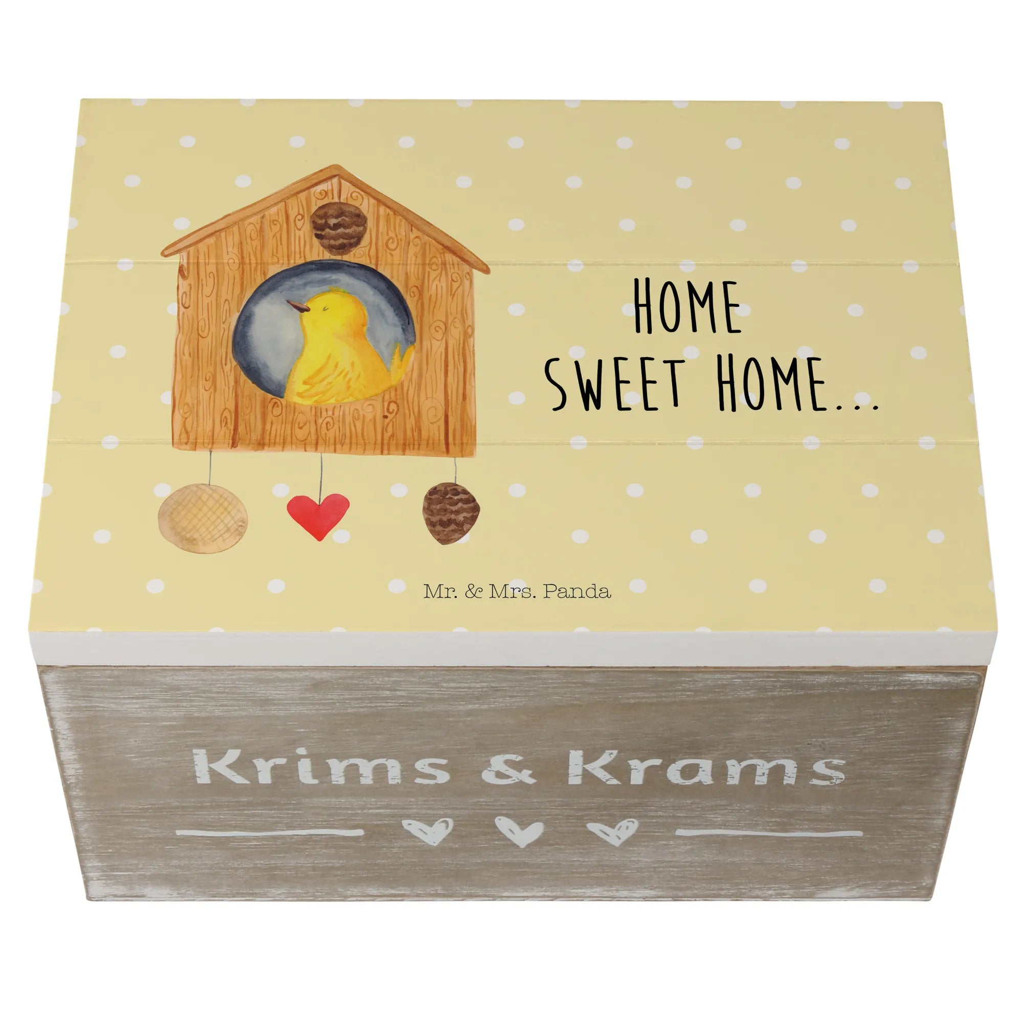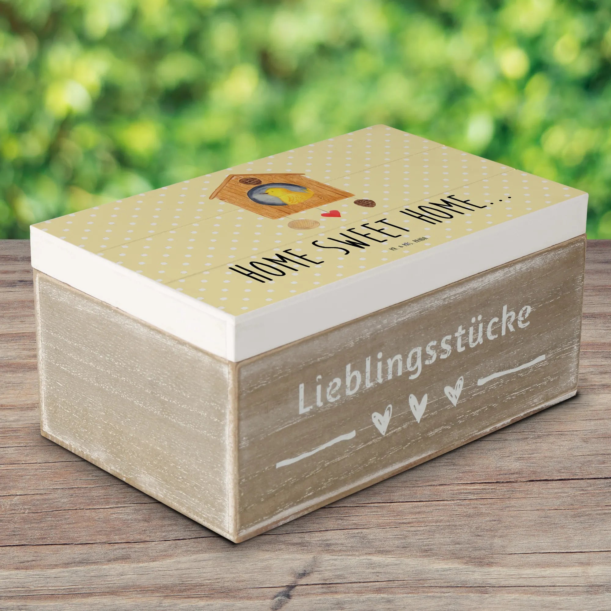 Skrzynia drewniana ptasi domek Strona główna - 19 x 12 cm - z napisem - biały