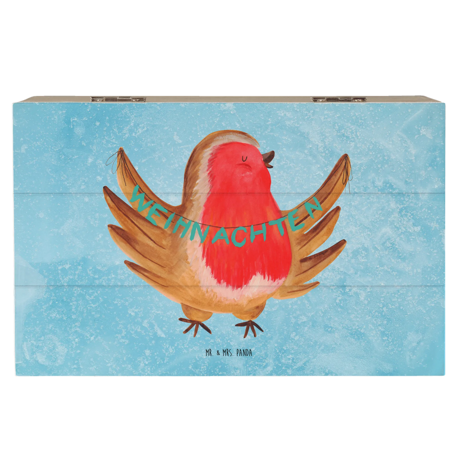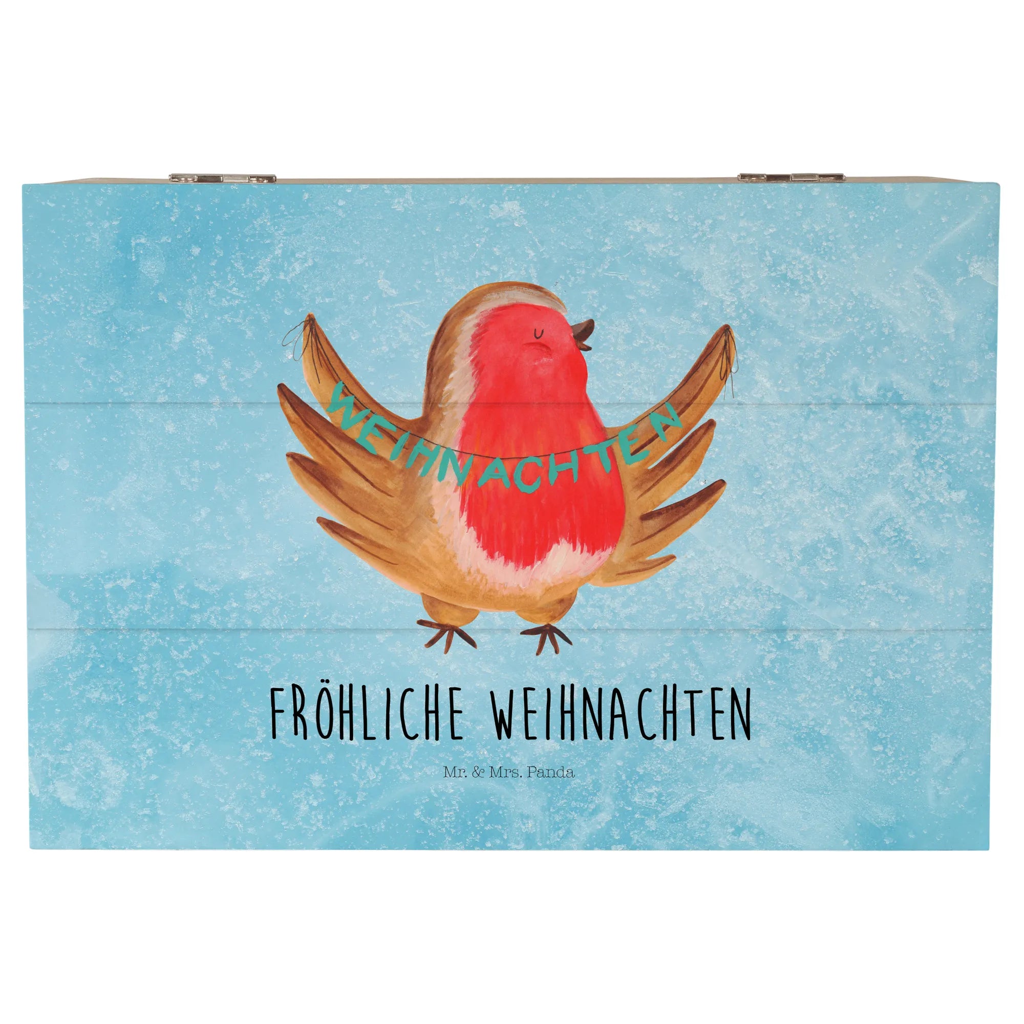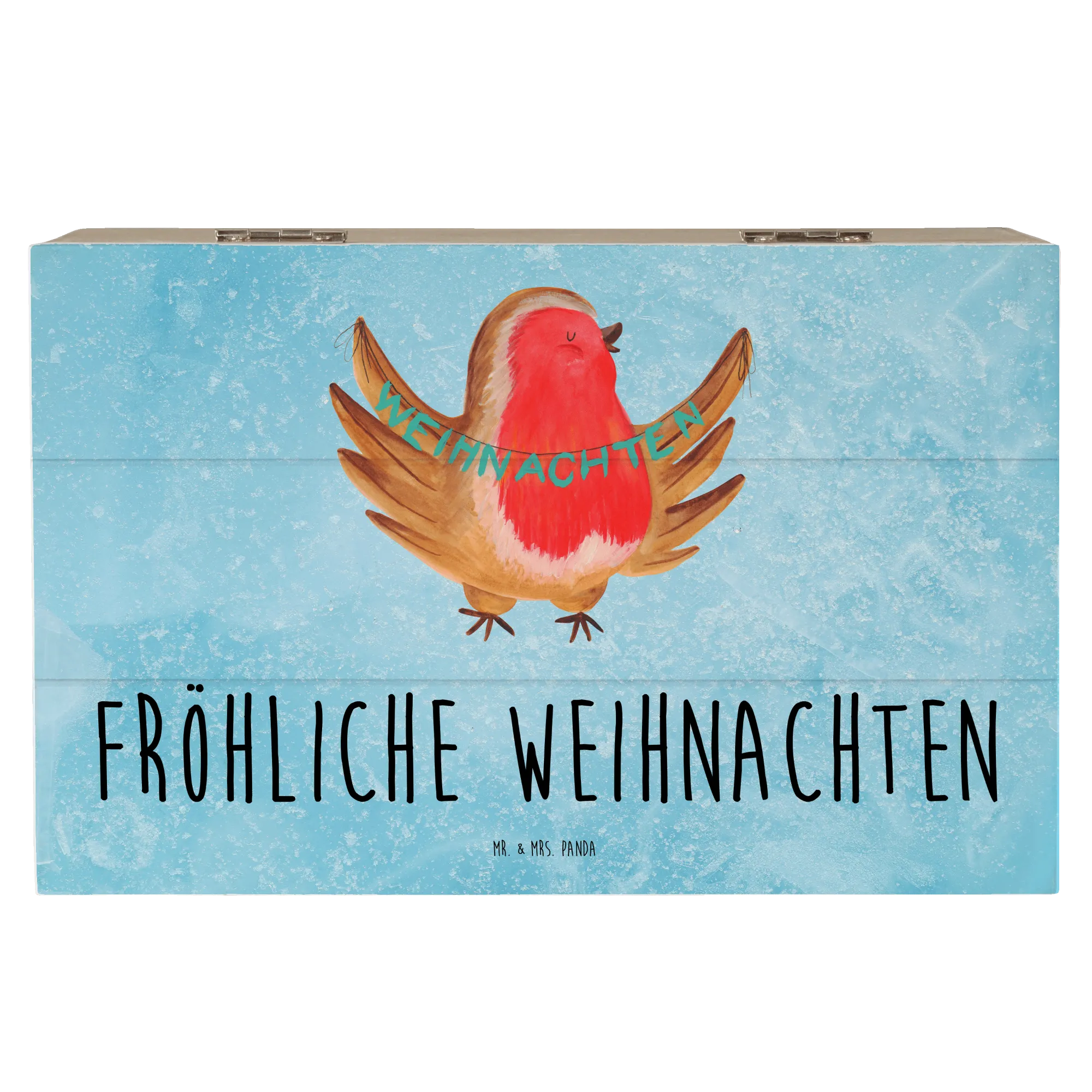 Skrzynia drewniana rudzik Boże Narodzenie - 19 x 12 cm - bez napisu - lodowoniebieski