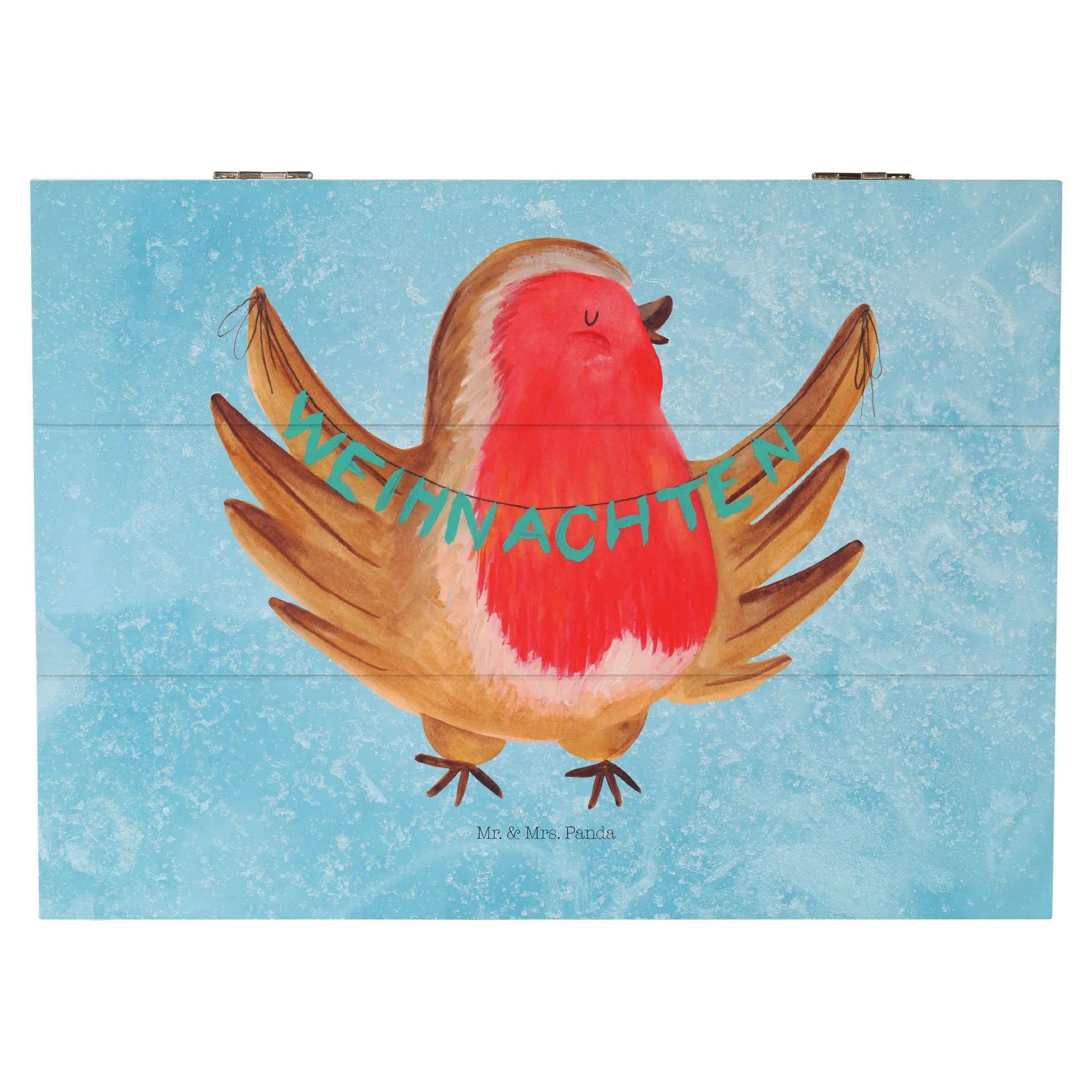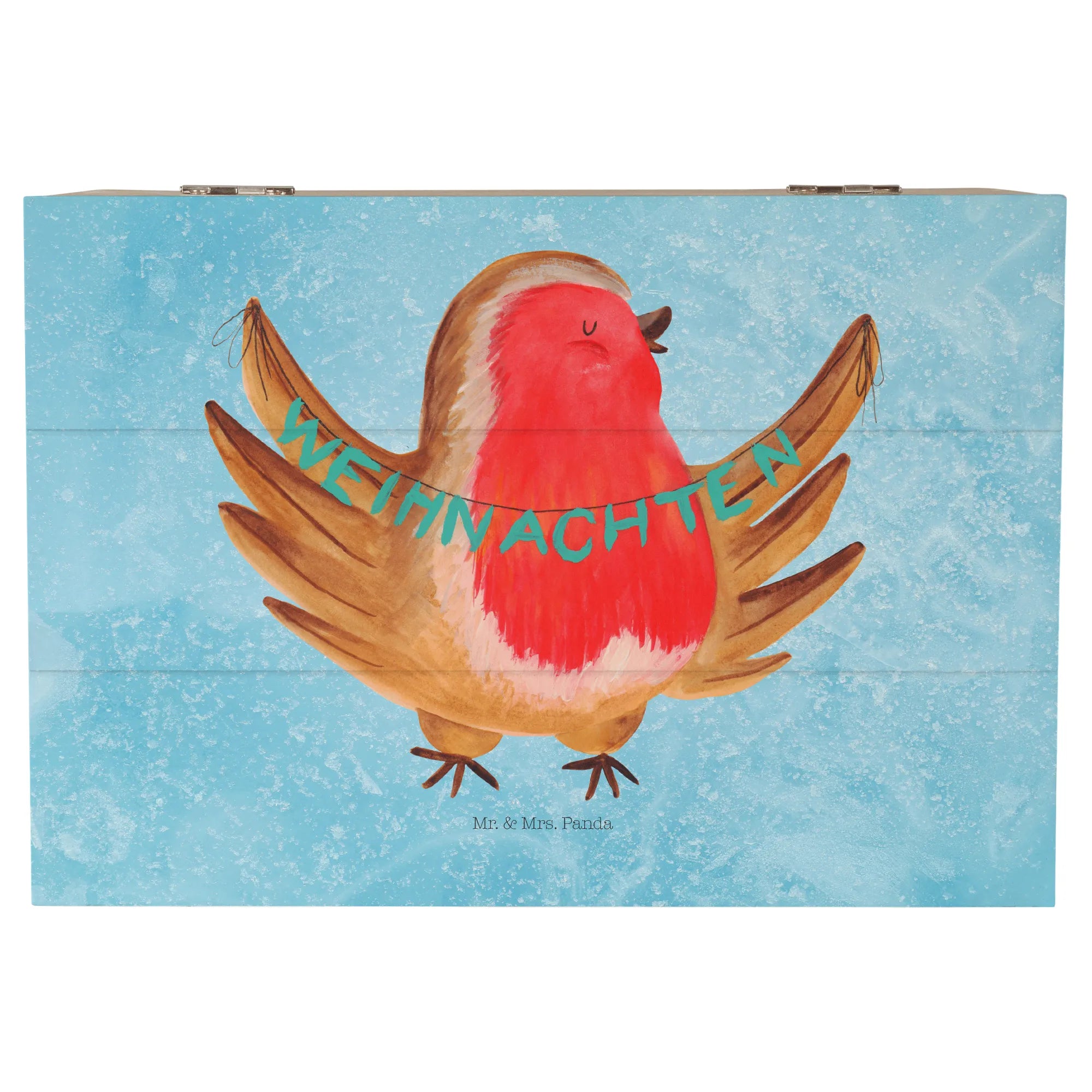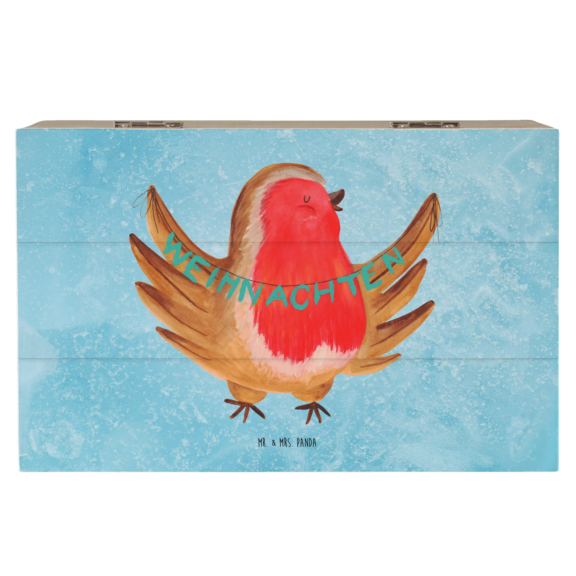 Skrzynia drewniana rudzik Boże Narodzenie - 19 x 12 cm - bez napisu - lodowoniebieski