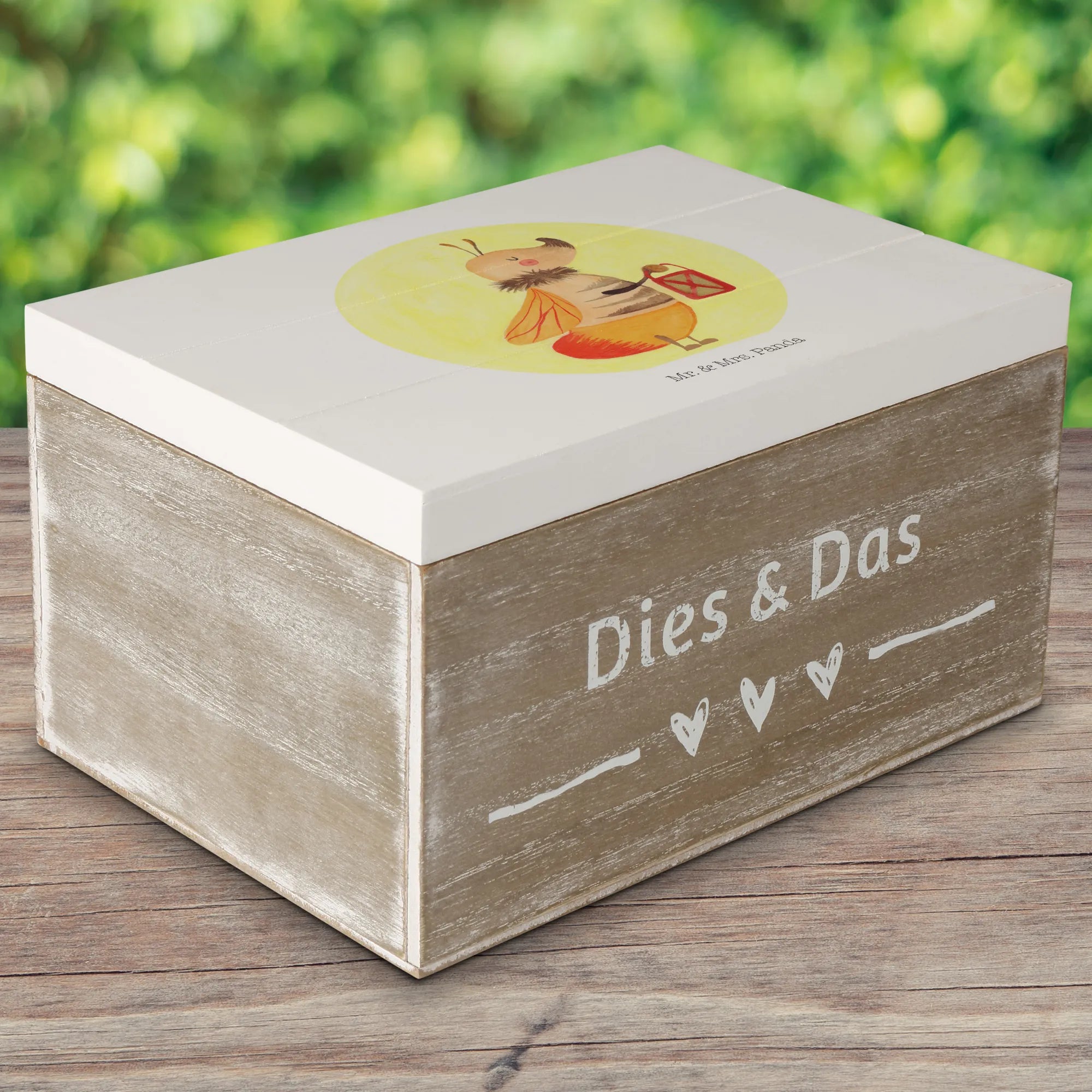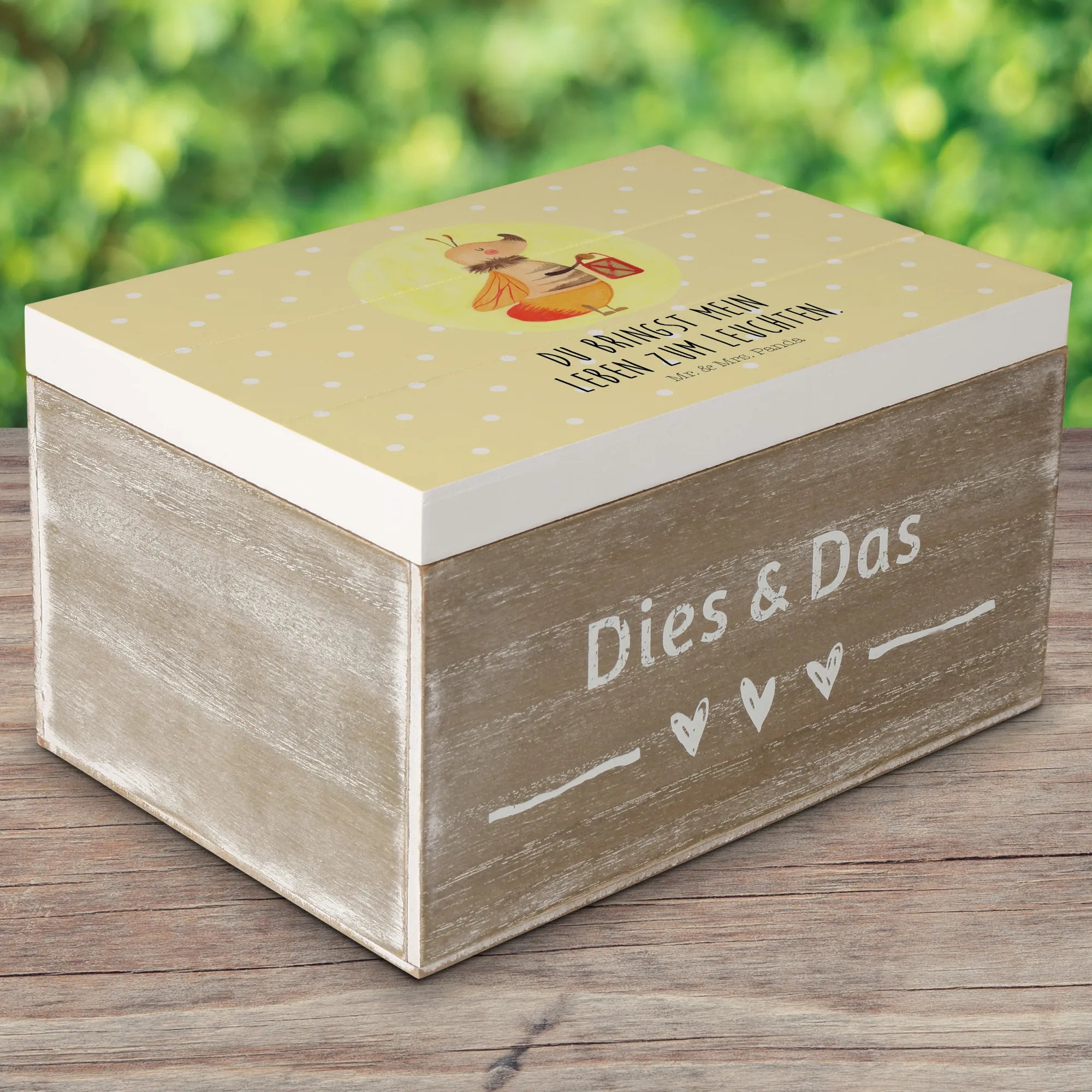 Skrzynia drewniana Świetlik - 19 x 12 cm - z napisem - biały