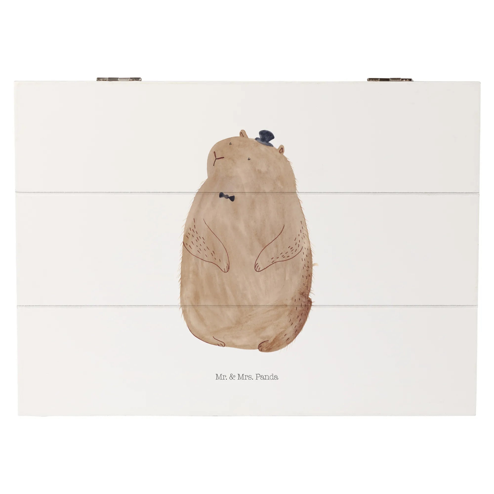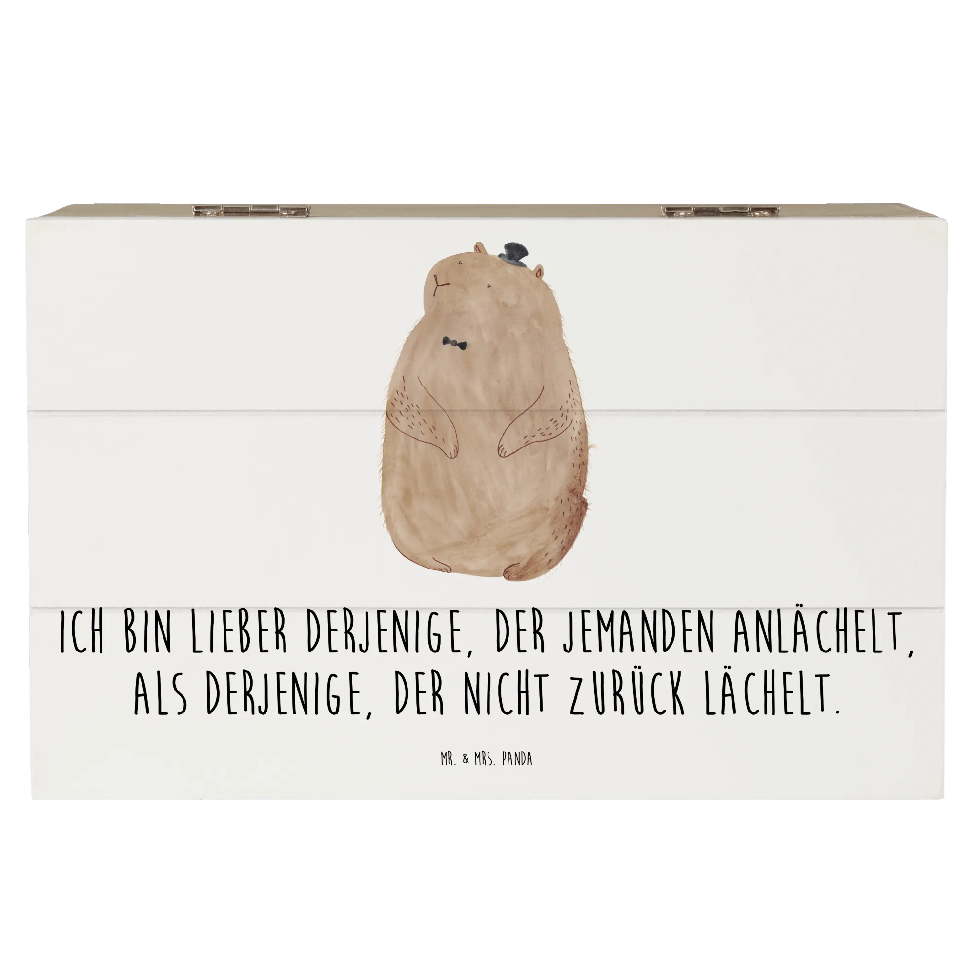 Skrzynia drewniana Świstak - 22 x 15 cm - z napisem - biały