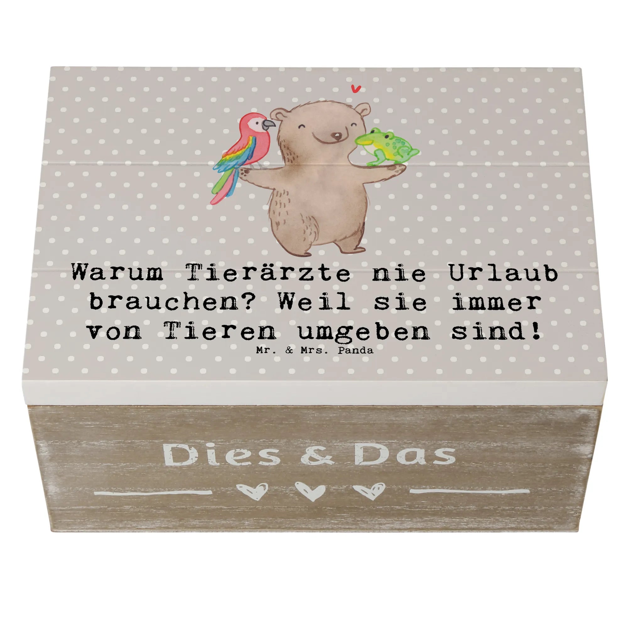 Skrzynia drewniana Warum Tierärzte nie Urlaub brauchen? Weil sie immer von Tieren umgeben sind! - 22 x 15 cm - Pastelowy szary